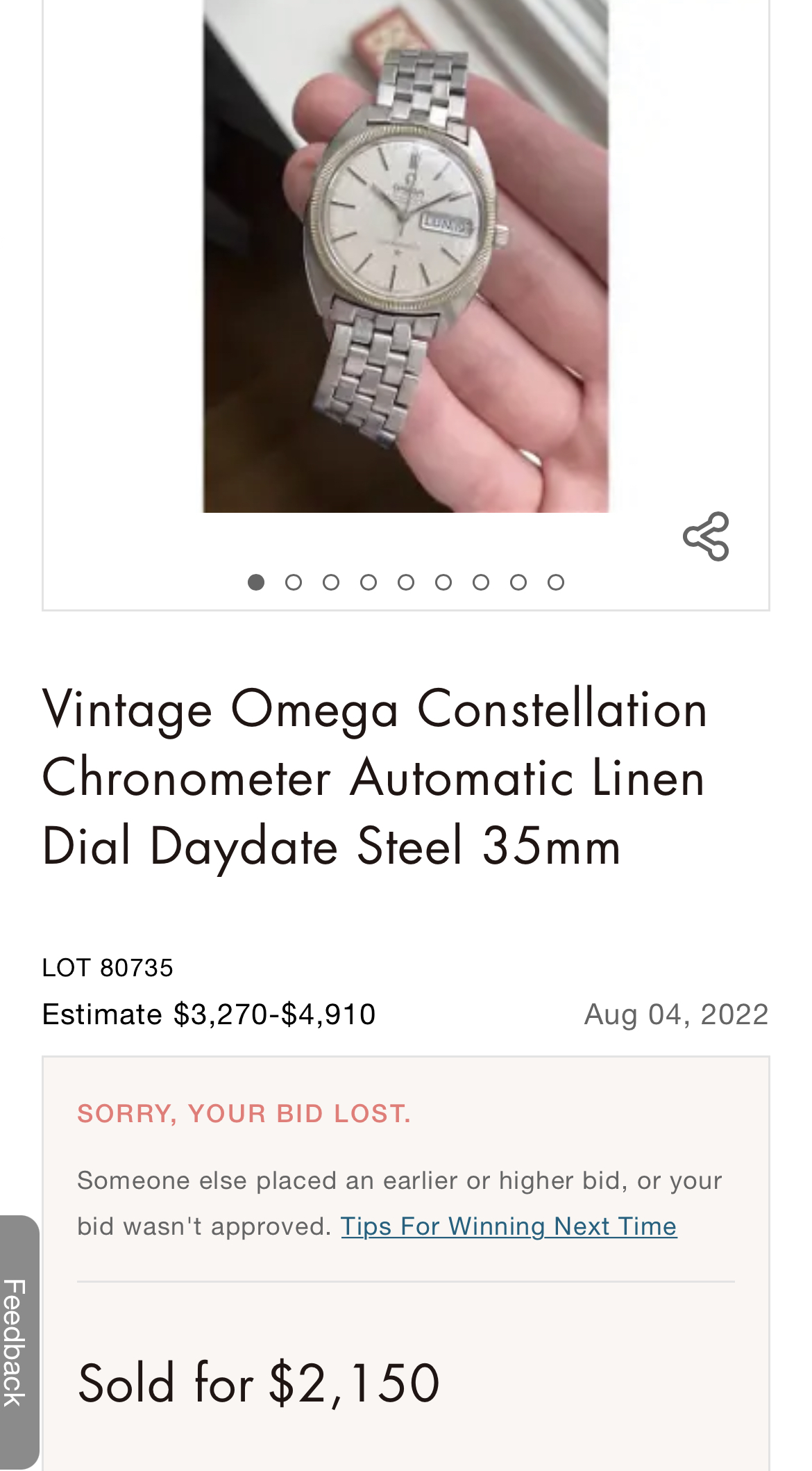 So the buyers of these watches were buying used watches, sight unseen, with no recourse (except possibly their credit card issuer) since "All items are sold as is, where is, with all faults, all sales are final. No refunds and no exchanges are accepted." is clear in the terms and conditions. They have no access to Omega customer service; warranty status is unknown, and they're paying an average price of $6560 plus shipping and insurance, or more than $1000 over the price for a new model!