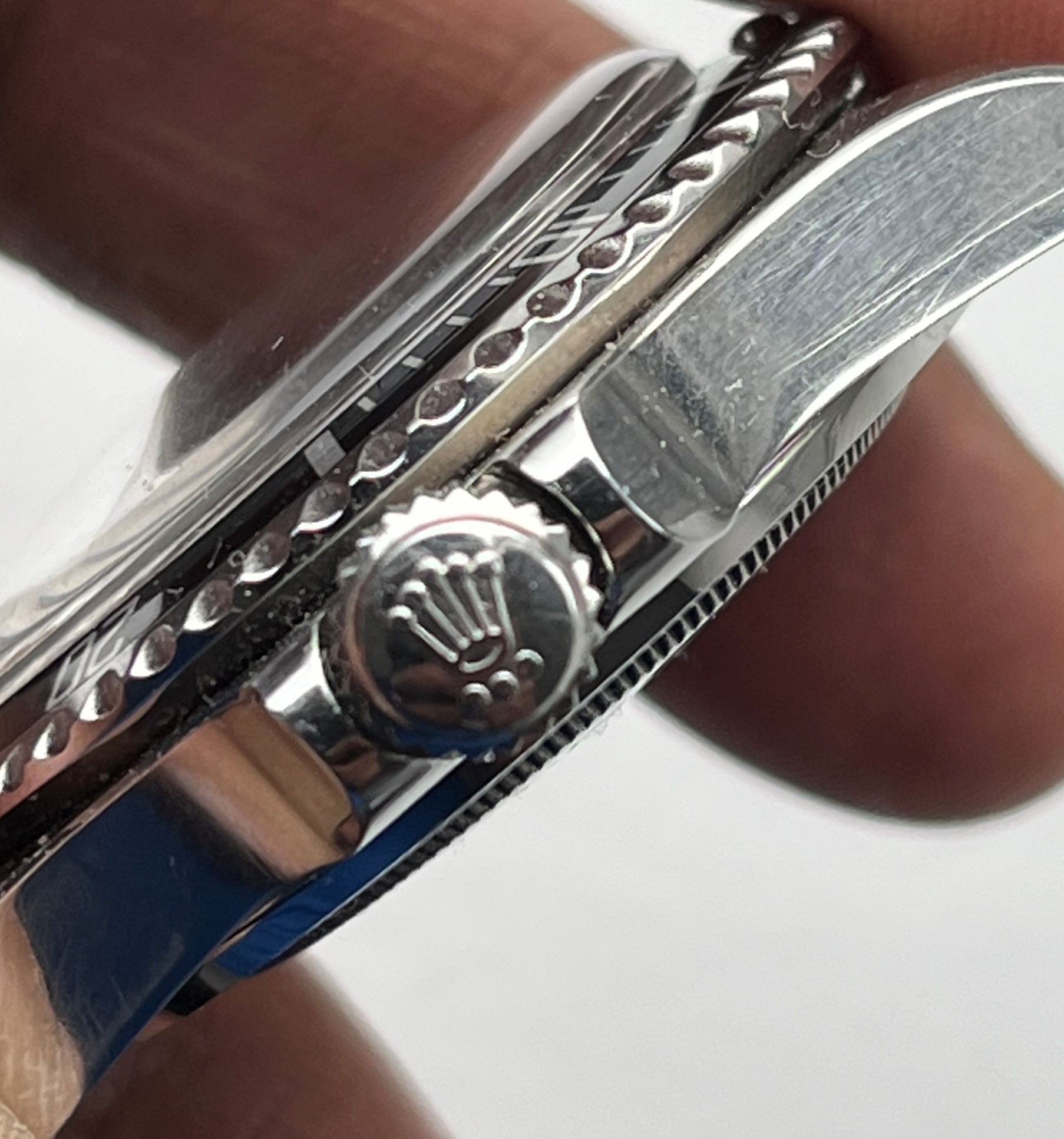 · In the real one there’s more gap between the Rose symbol and the 12 hr mark lume, where as in the fake one the gap is less