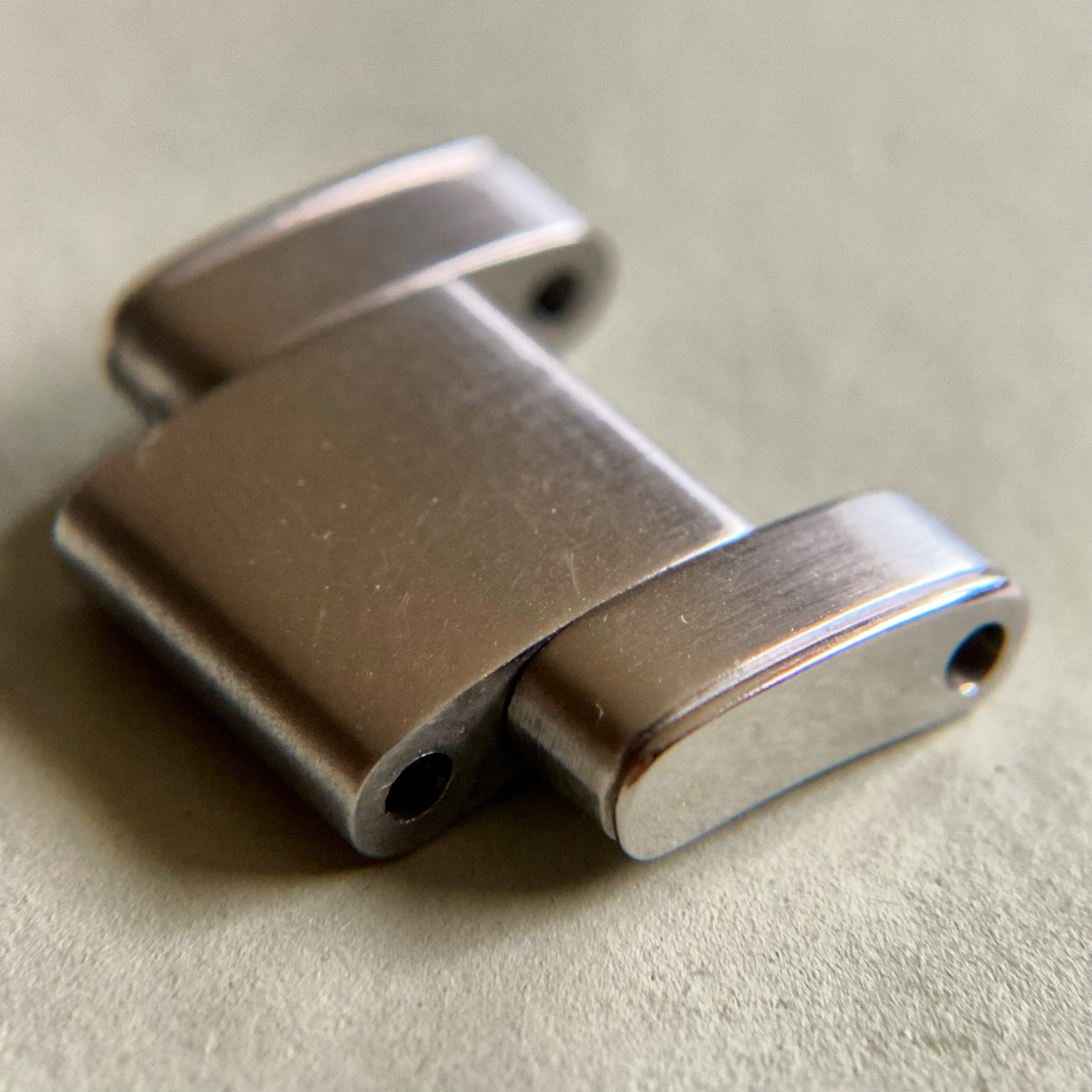 First step, polish off the faux-rivets on one removable link. Not a hard task but had to be done while be attentive to not grinding an edge or polishing unevenly.