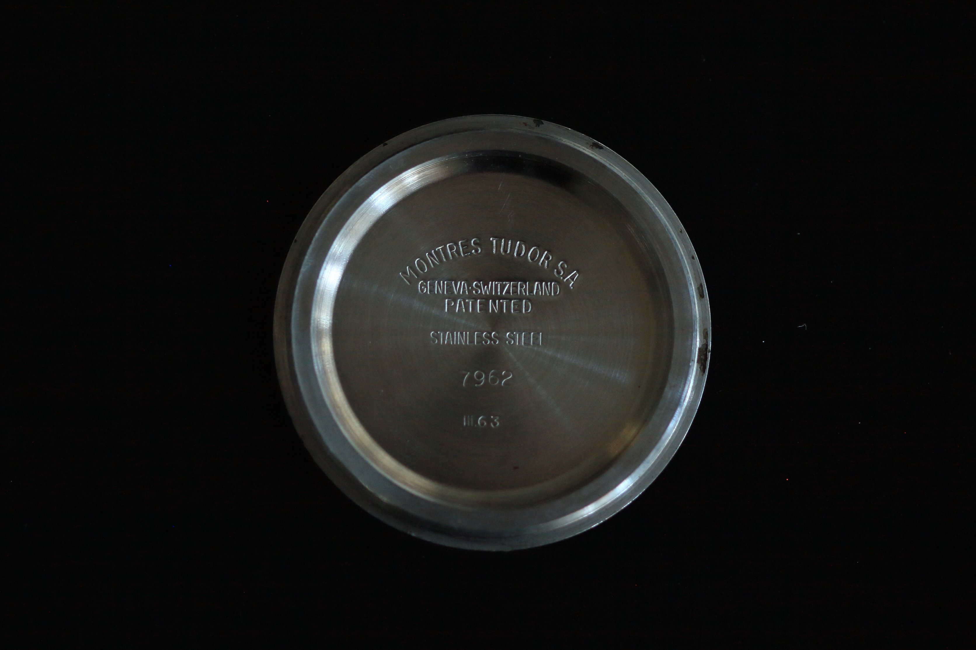 The steel oyster case is in fantastic shape with a combination of brushed and polished finish. Reference and serial numbers are clearly visible between the lugs. The screwback has clear engravings both inside and out.