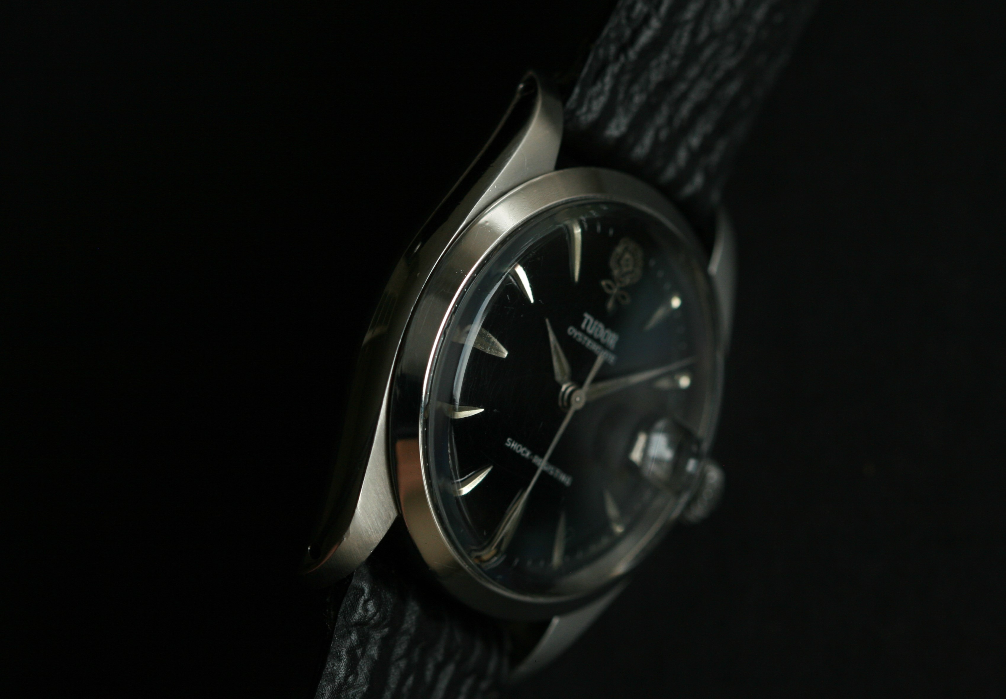 The black gloss dial is extremely glossy indeed and with the applied steel markers and big rose really catches the light well.