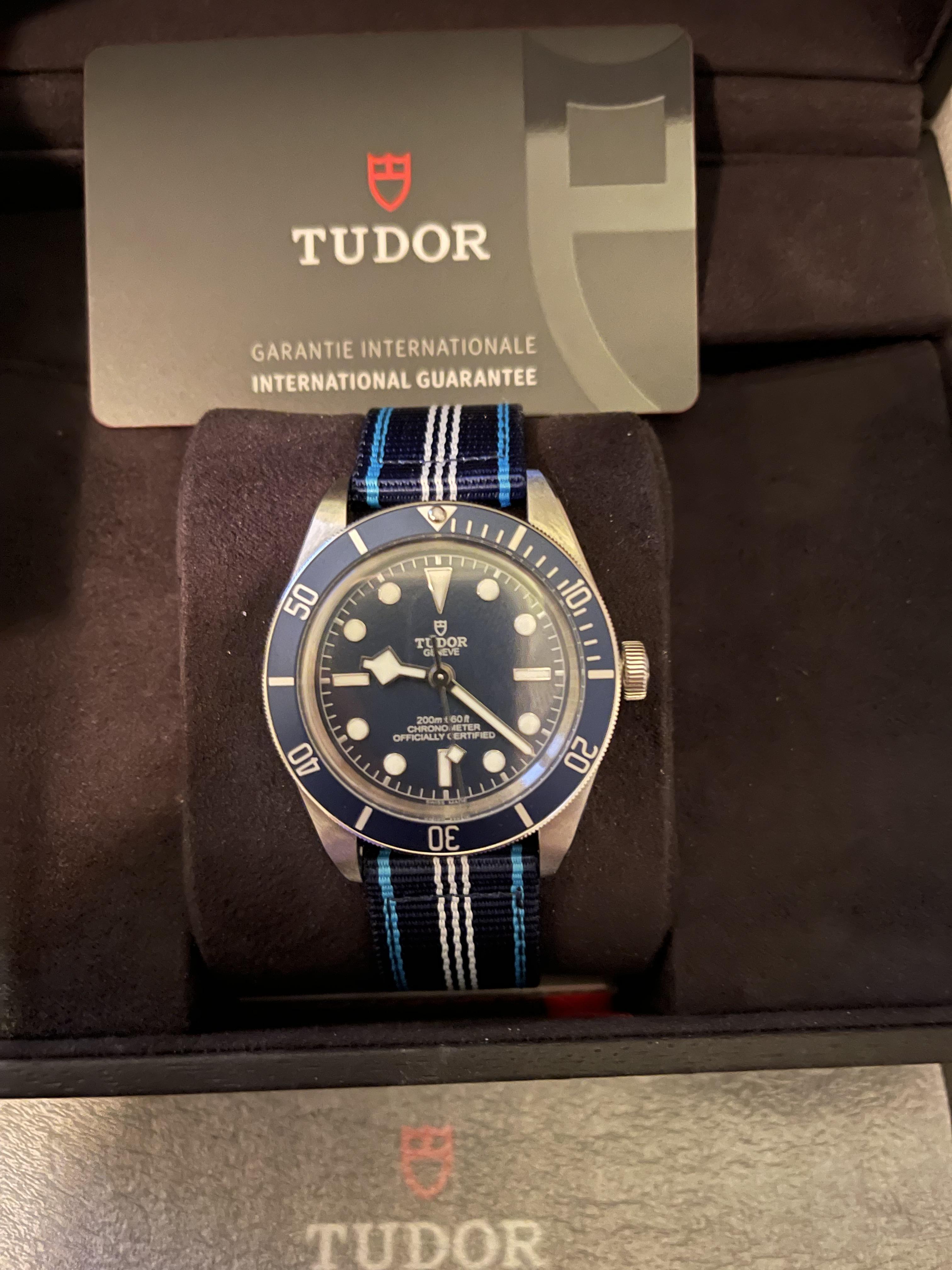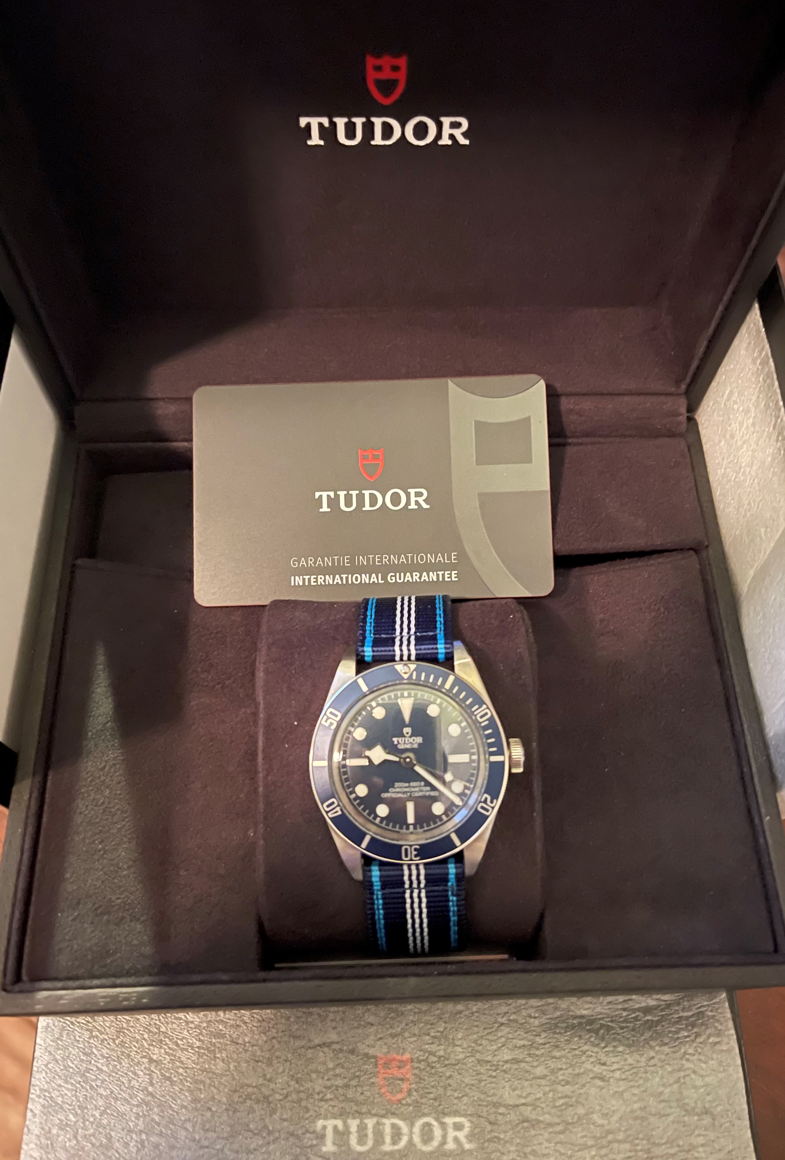 An almost full warranty, watch will ship with all cards and books, inner and outer boxes. It has been worn for approximately 6 hours total since purchase. An uncommon chance to purchase a BB58 blue at less than the lowest MSRP in almost NIB condition.