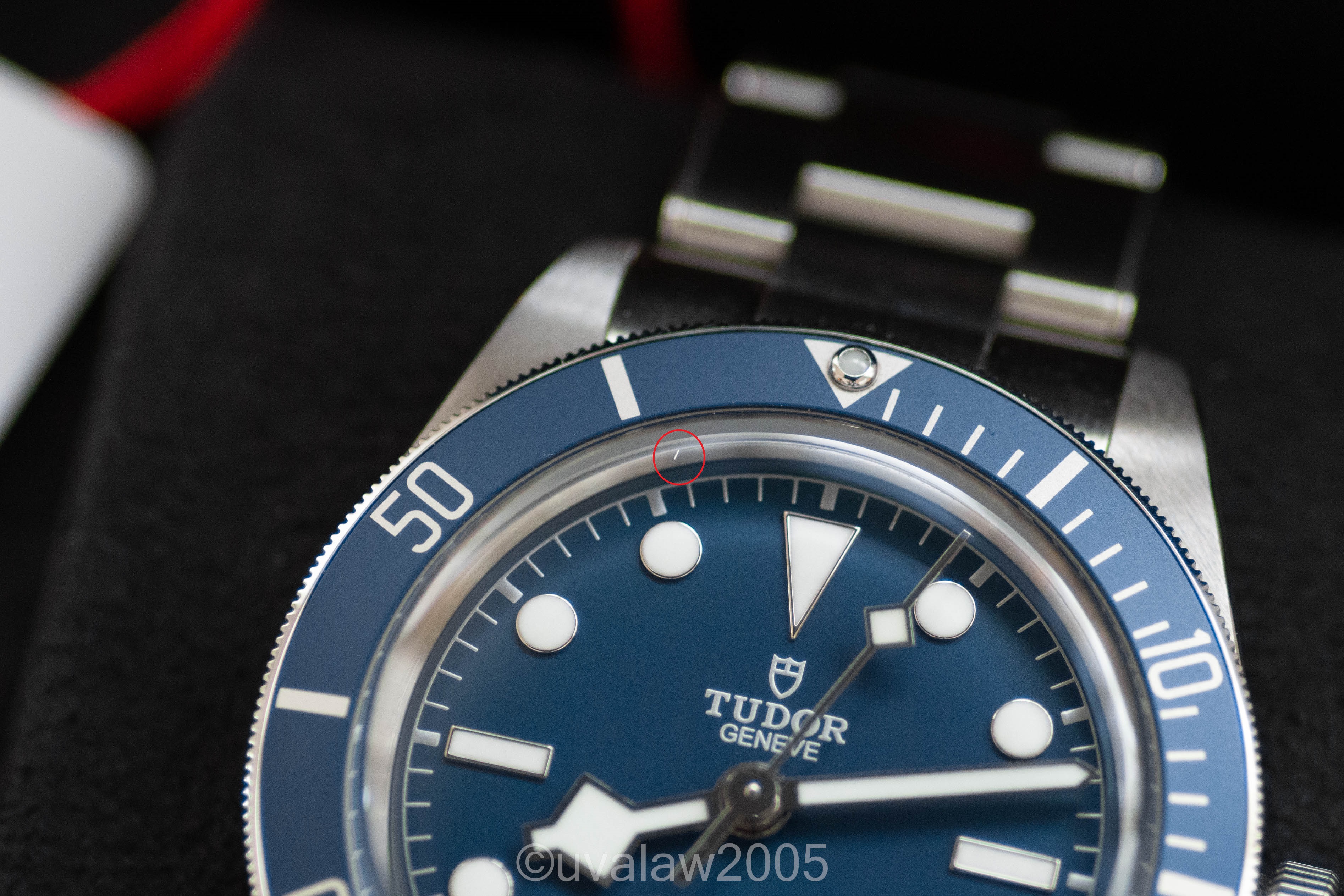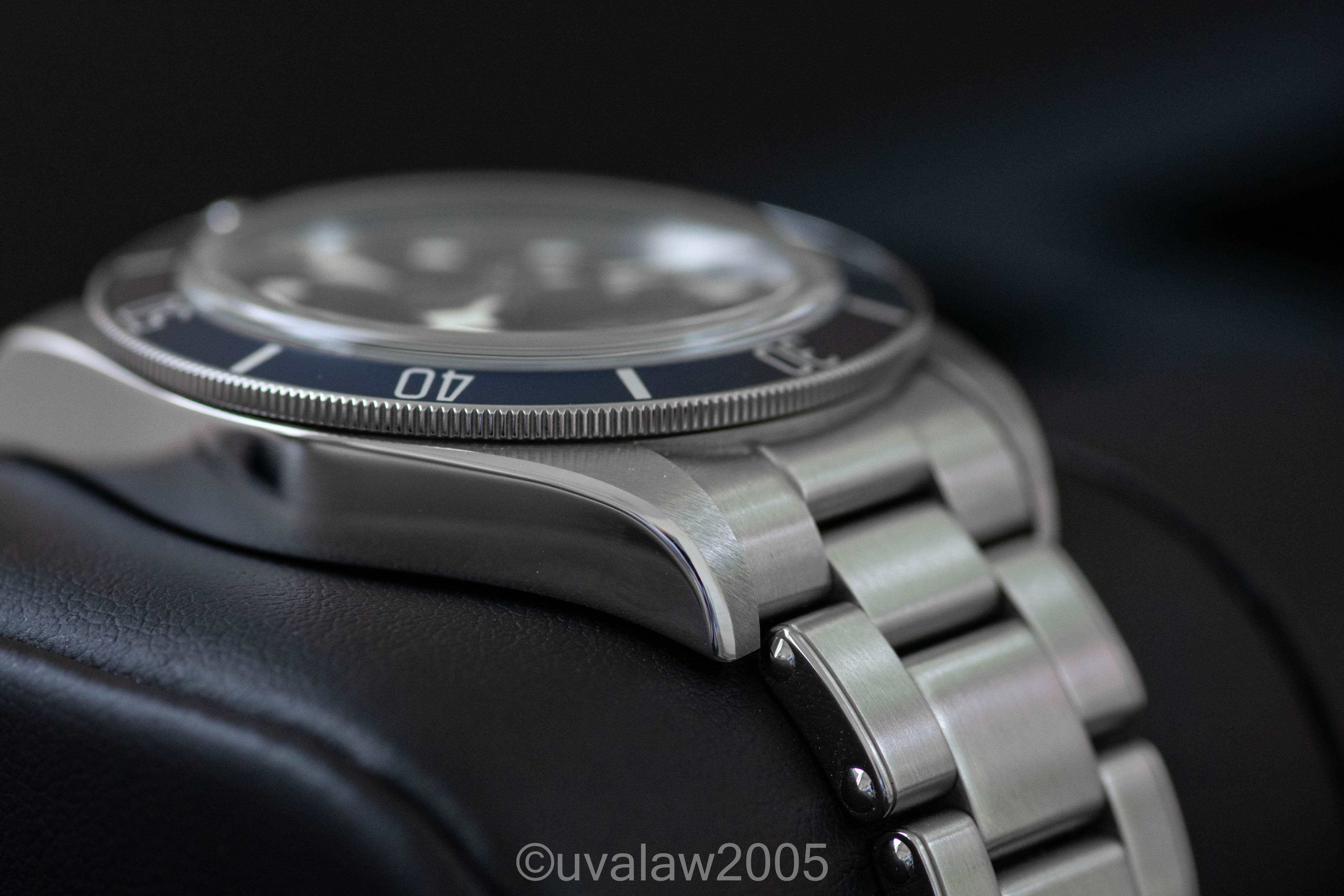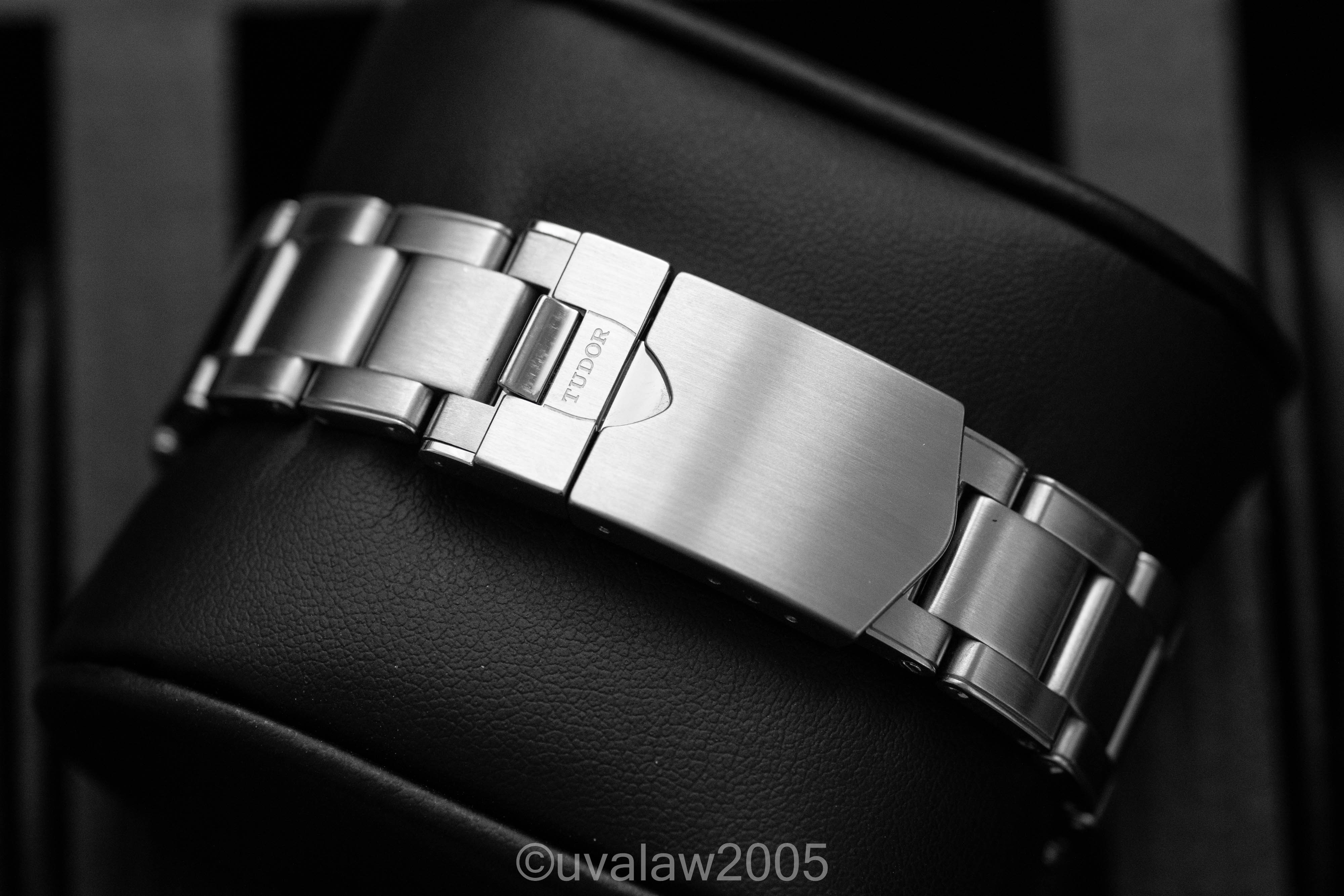 Bracelet is sized for a ~7 inch wrist (three additional links are included). There are some light strap change marks and signs of gentle wear to the clasp, a few links, and the caseback. There is a small piece of lint/debris under the edge of the crystal near the 56 minute mark. If it bothers you, I'm sure Tudor will remove it under warranty.