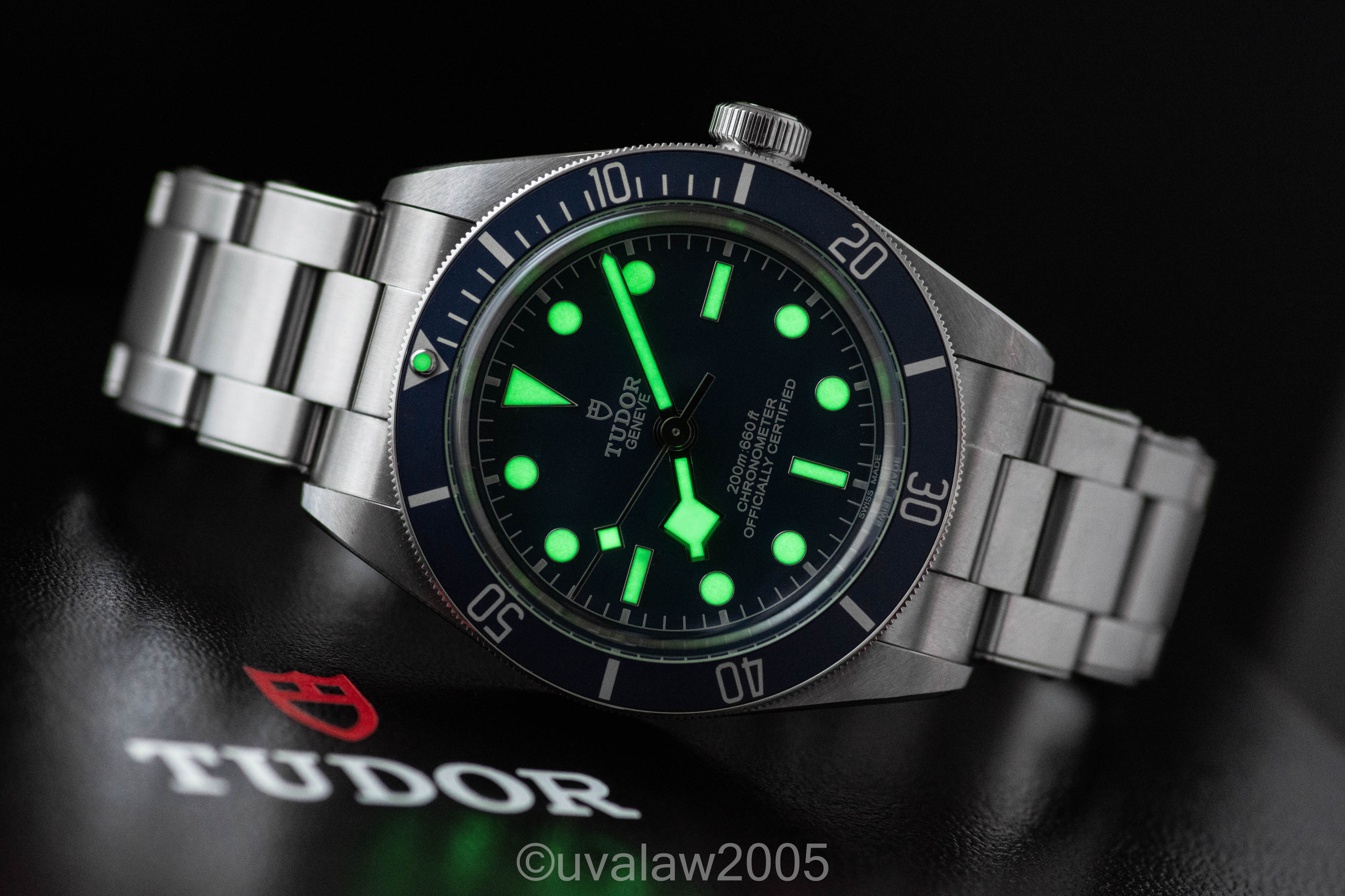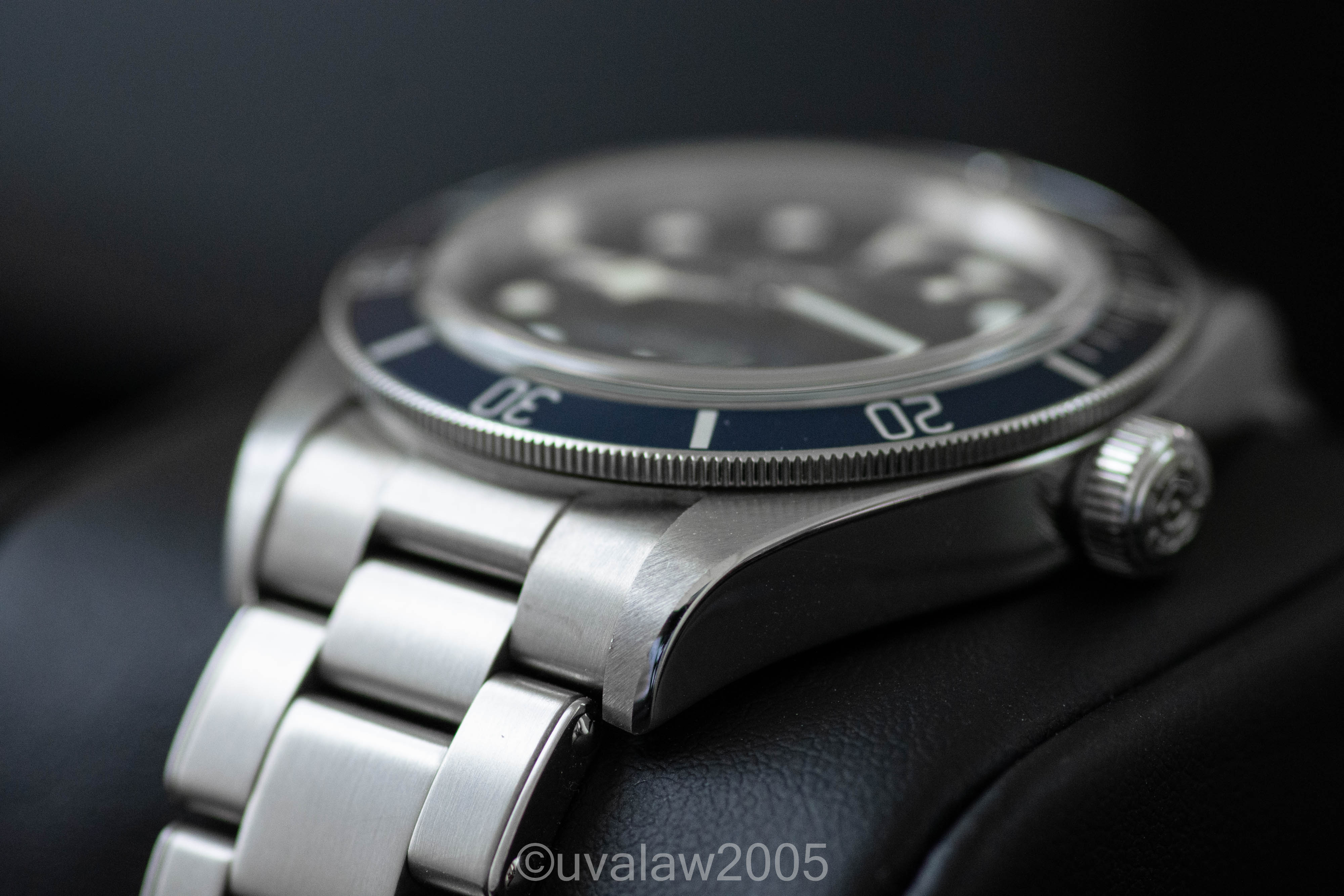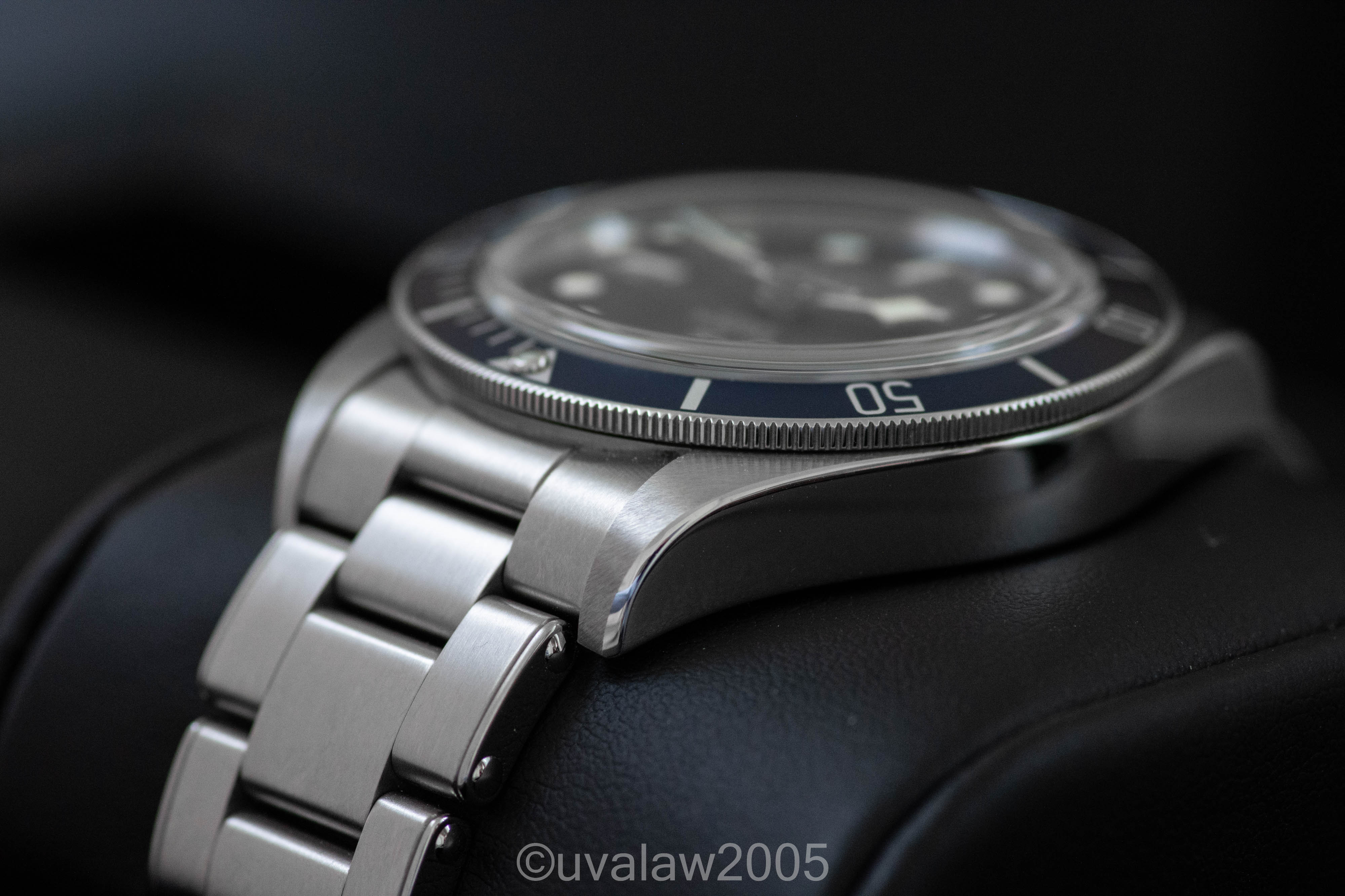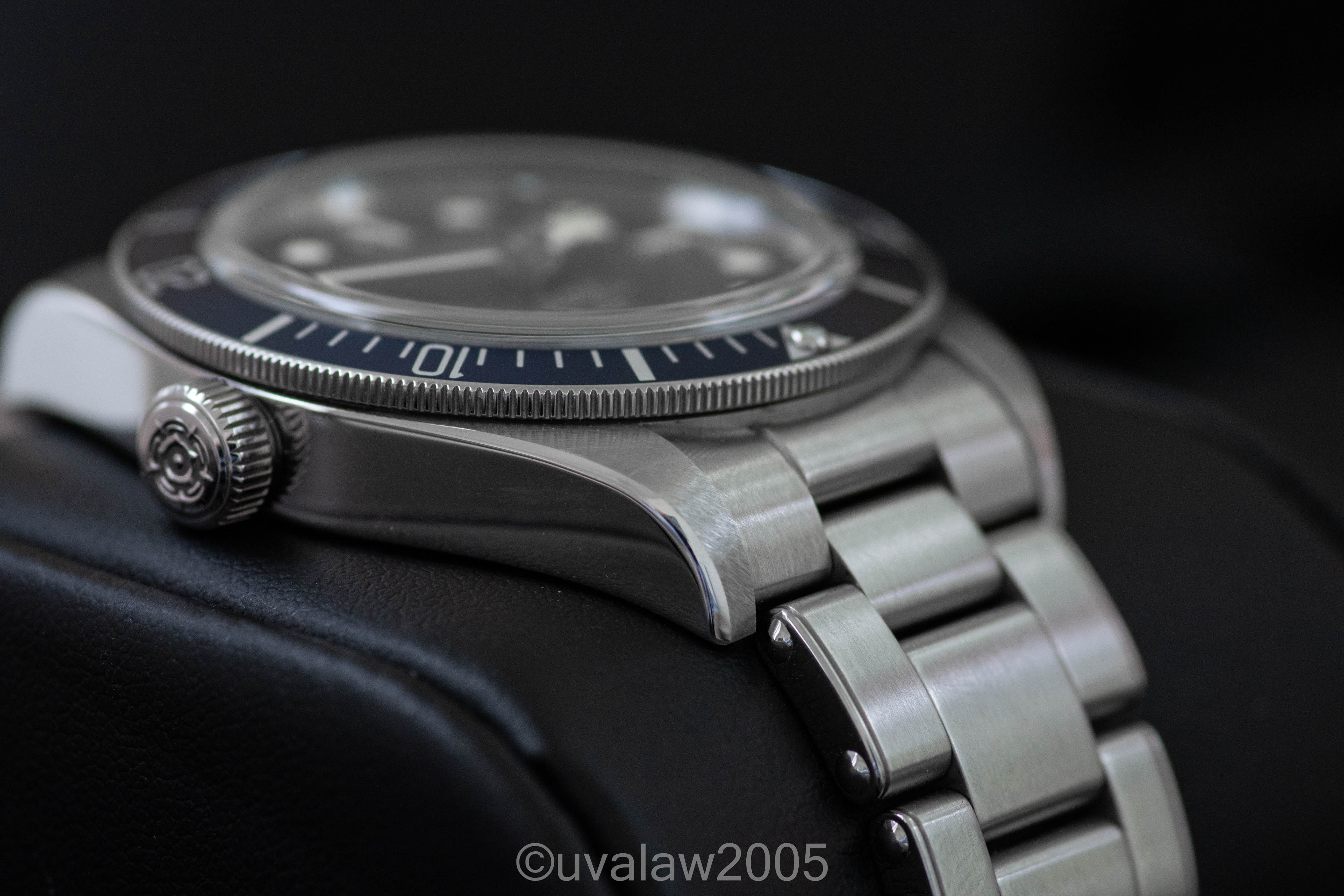 Bracelet is sized for a ~7 inch wrist (three additional links are included). There are some light strap change marks and signs of gentle wear to the clasp, a few links, and the caseback. There is a small piece of lint/debris under the edge of the crystal near the 56 minute mark. If it bothers you, I'm sure Tudor will remove it under warranty.