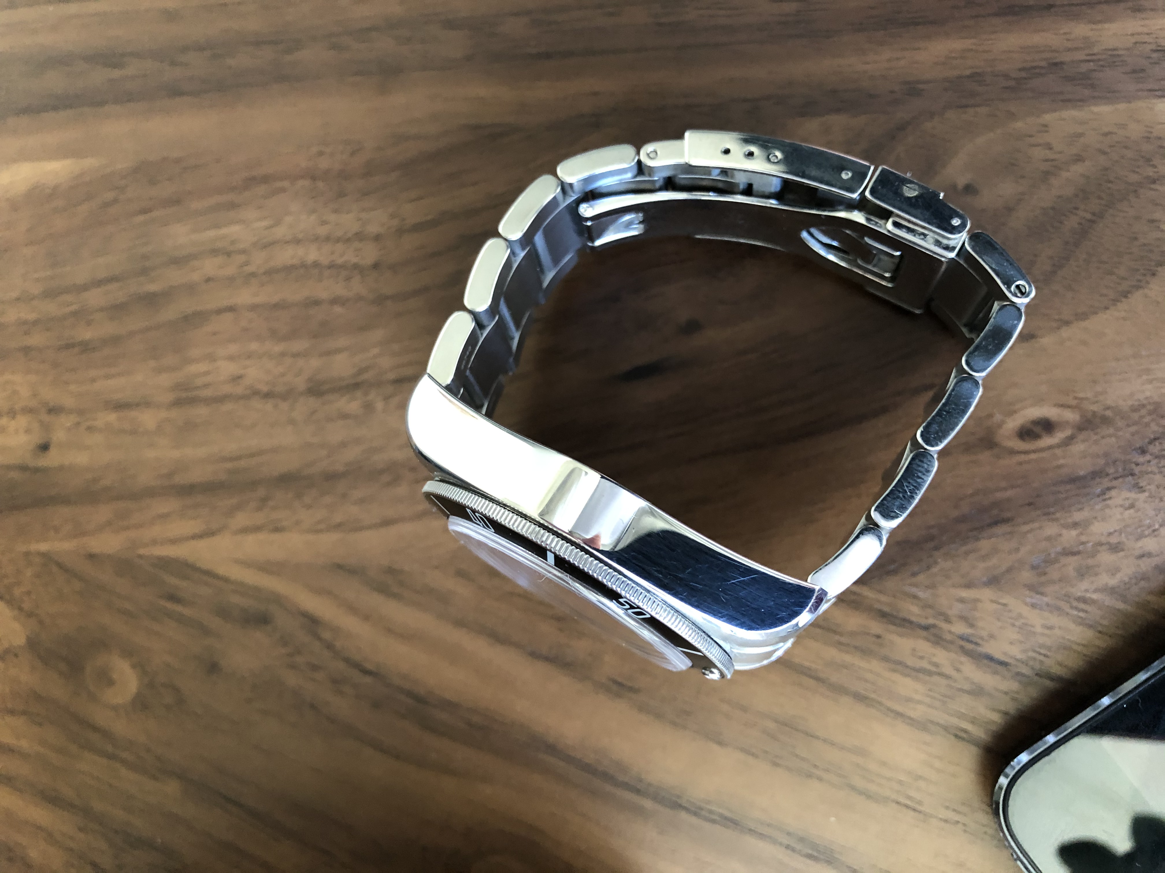 The case (41mm) is in good condition with no major blemishes, however there are some strap change marks under the lugs. In the spirit of transparency, on the polished sides, depending the lighting, you may see some slight marks.