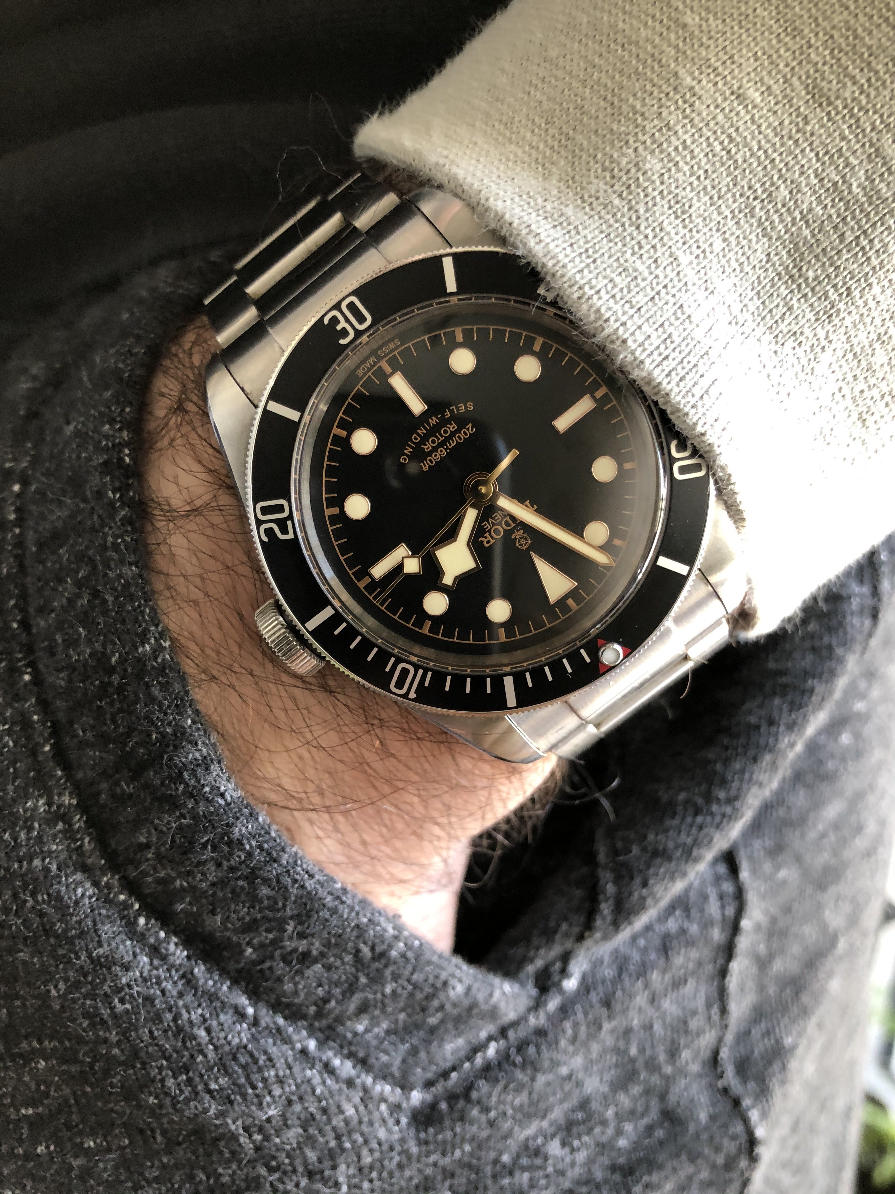 Up for sale is my Tudor Black Bay Black 79220N with rose dial and ETA movement. This reference was produced for a shorter period of time than it's brothers (burgundy and blue bezel version), about 6 months prior to Tudor revising the dial layout and inserting an in-house movement.