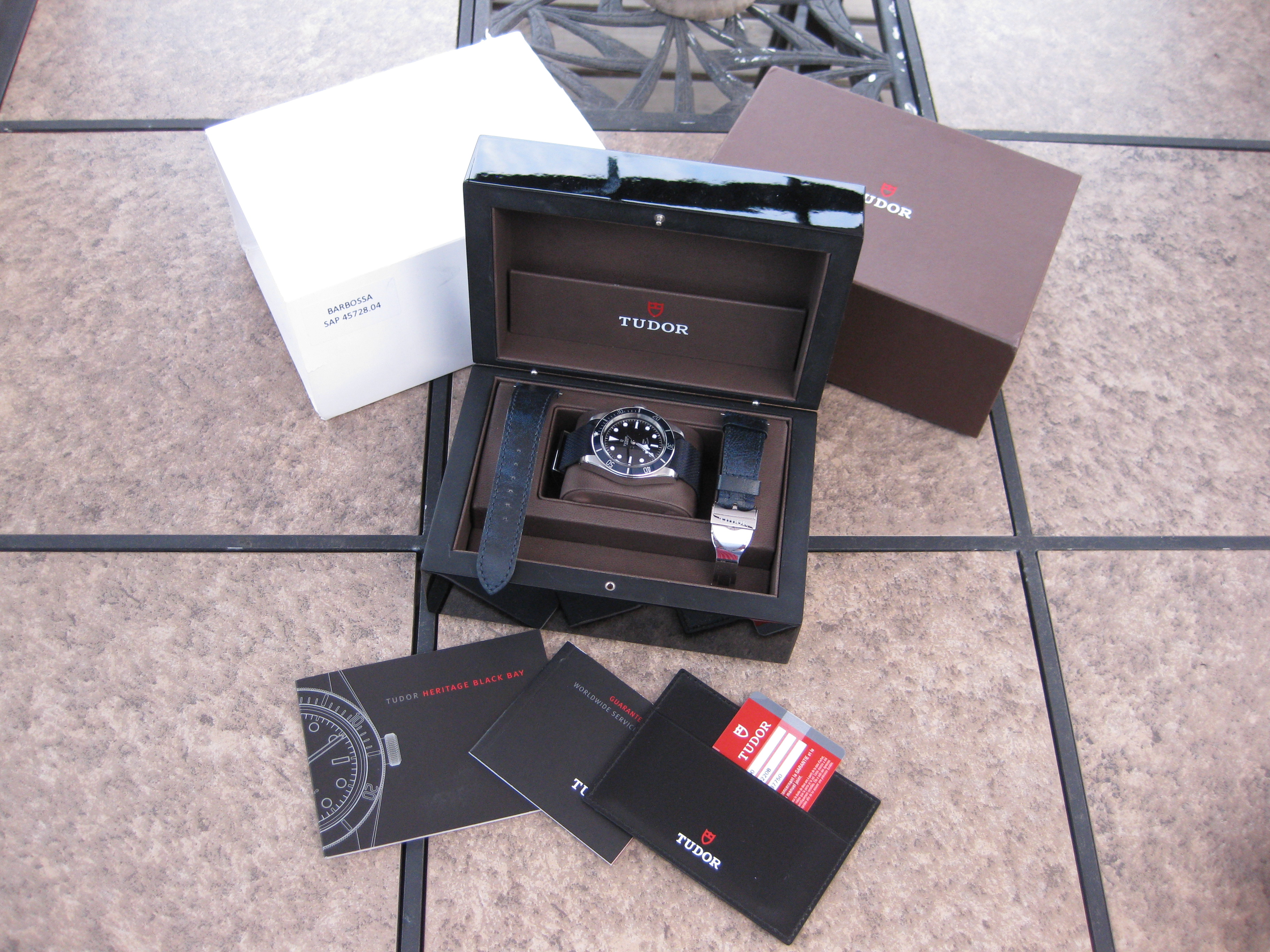 ·For sale is my Tudor Black Bay, in very lightly used condition. Watch was purchased new in 03/2015, and still has plenty of warranty left. No issues, sets, winds, and runs super smooth. It's complete with everything from the A.D. Case has a few very slight hairline swirls on the polished sides, really unnoticeable. The Tudor leather strap may have been worn twice, and is in perfect condition. Tudor nato strap is also in perfect shape. A very nice example of a Tudor Black Bay.