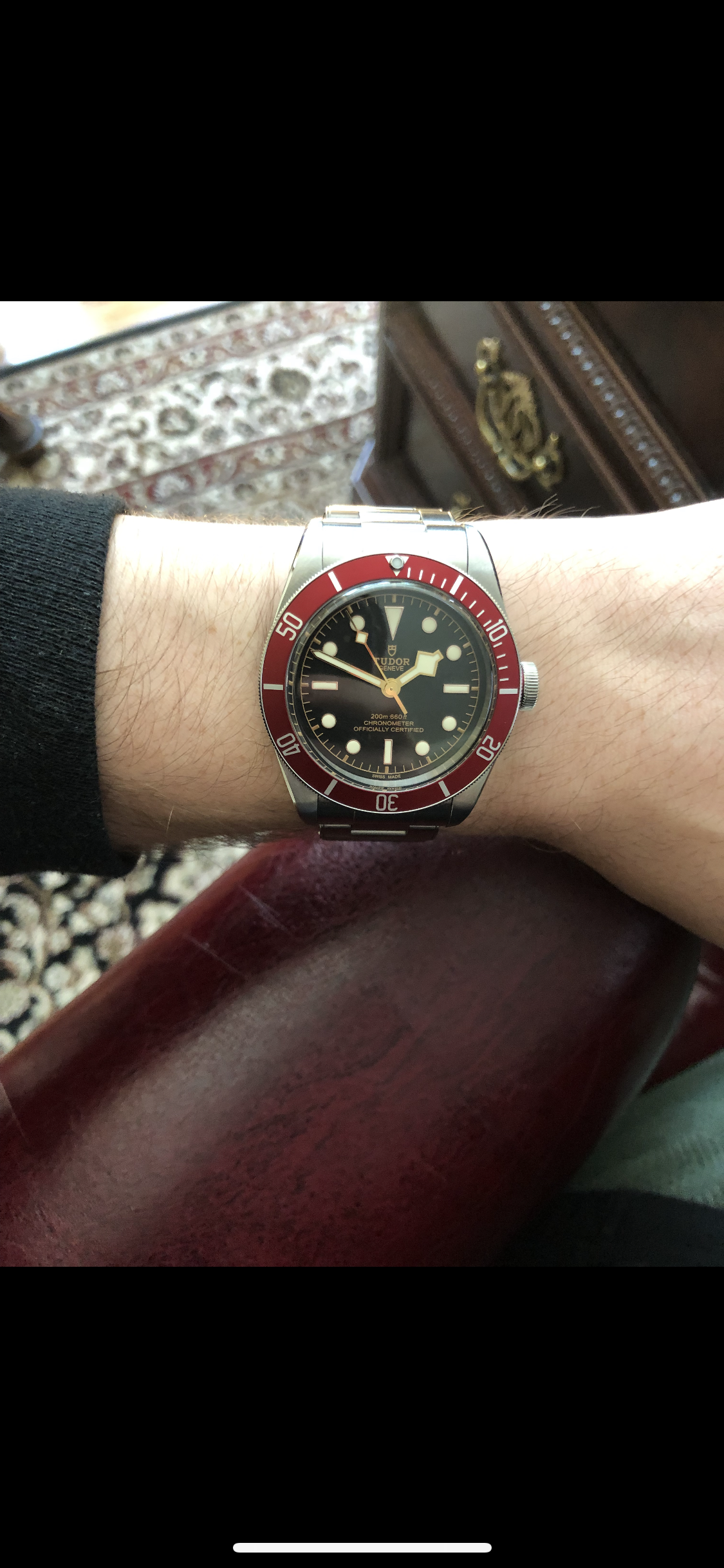 I am trying to sell my Tudor black bay burgundy 41 mm watch. It’s in good condition with just a few bracelet scratches from light wear. It also comes with the black Tudor nato strap, box, and a few extra links. How much do you think I could sell this for?