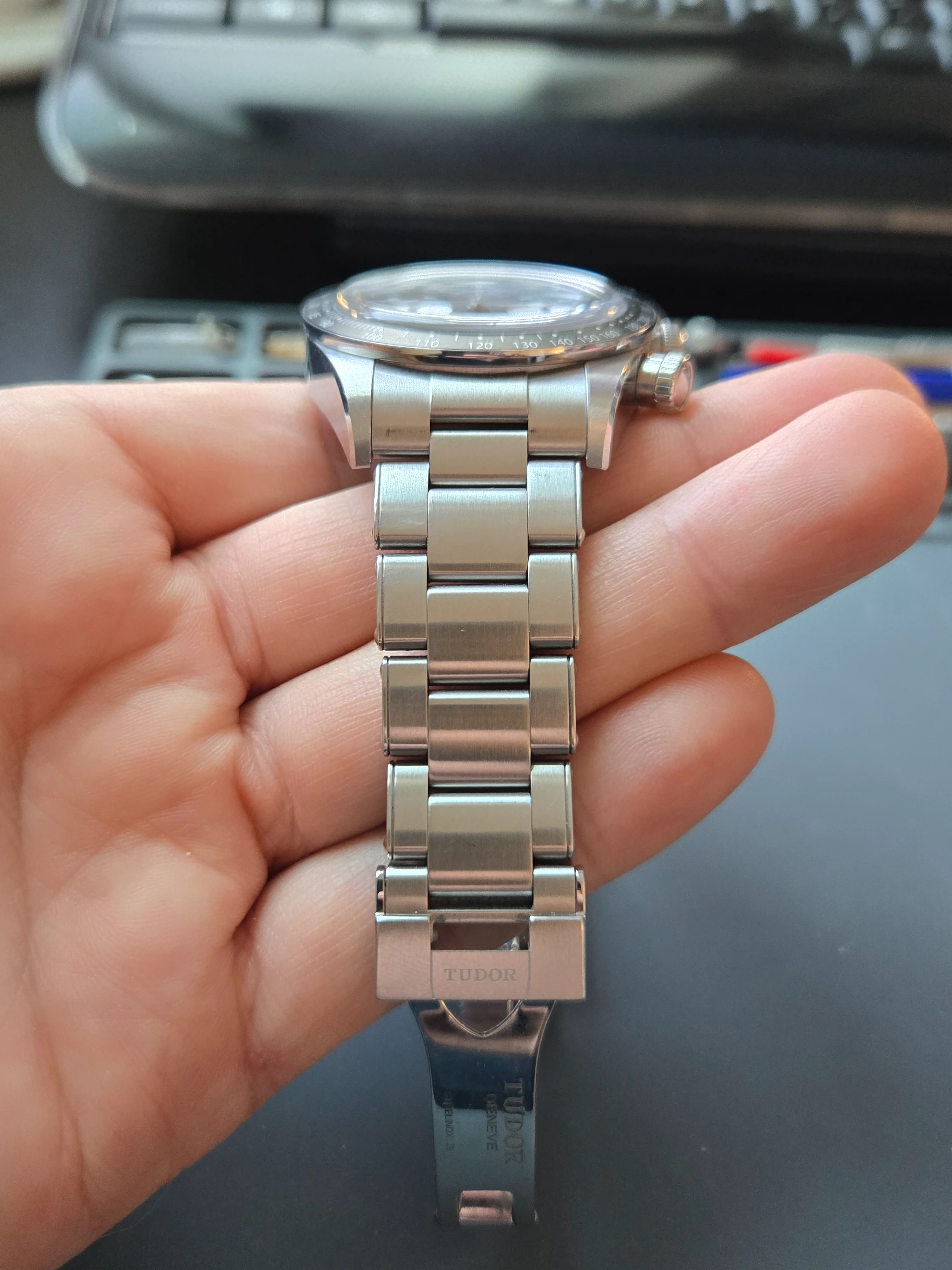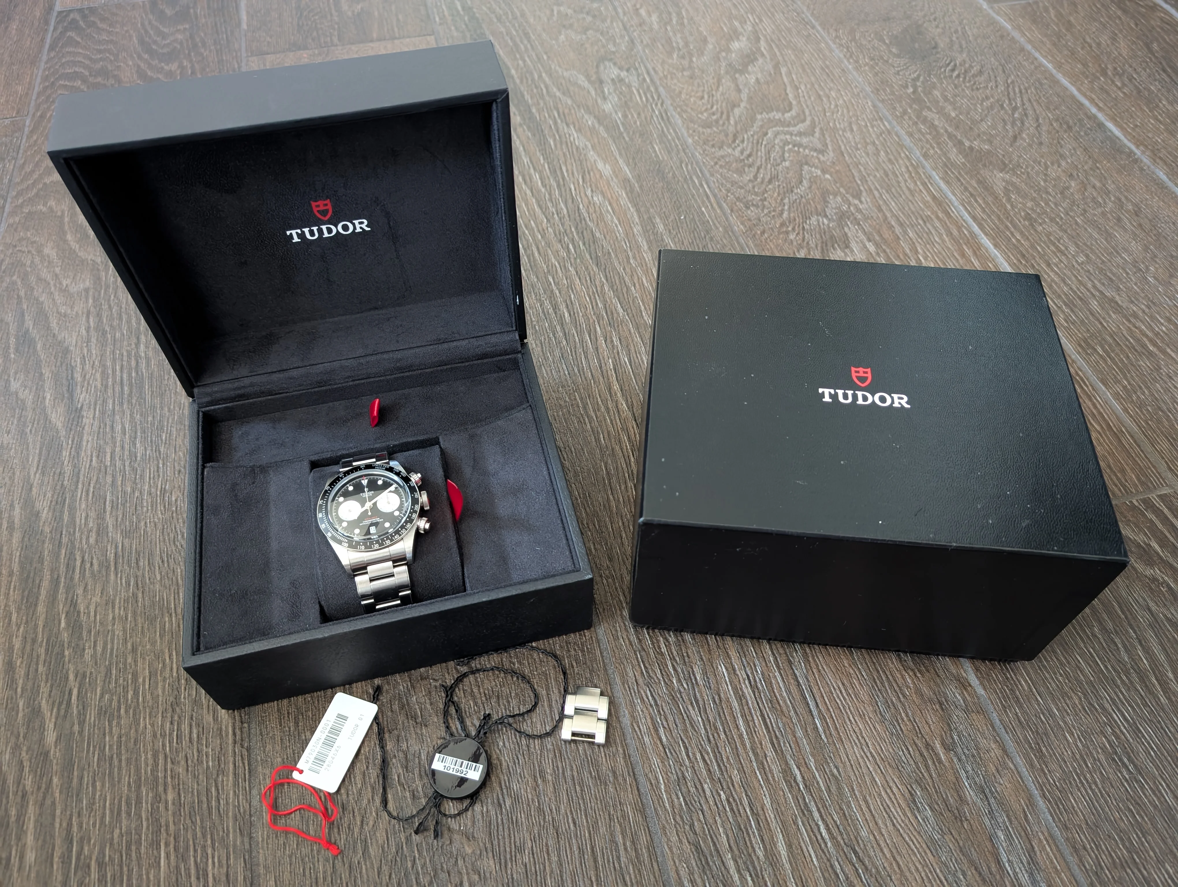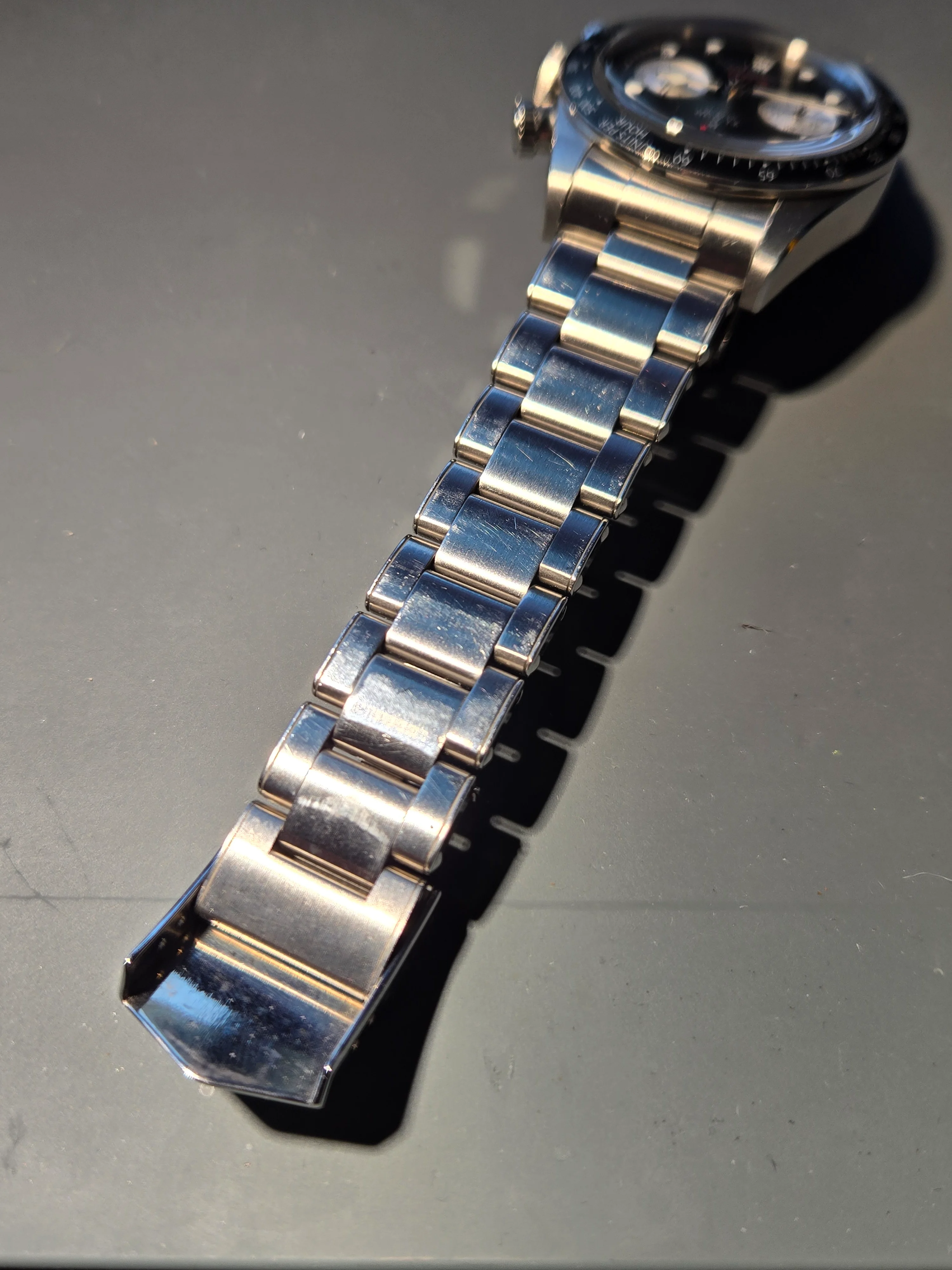 Fantastic looking watch in great condition, crystal, bezel and case clear of any scratches/marks with some slight wear on the underside of the bracelet due to wearing at my desk. Everything functions as it should & the watch keeps good time. Sale includes the box, hang tag & extra links as pictured but can't find the warranty card.
