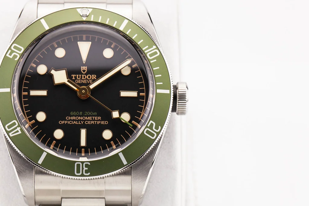 ·Up for sale is a mint condition Tudor Heritage Black Bay Harrods Edition Green Bezel / Black Dial 41mm, reference # 79230G. It comes complete with all boxes, papers, booklets, hang tag, textile strap, bezel guard and Tudor Warranty Card dated November 2024.