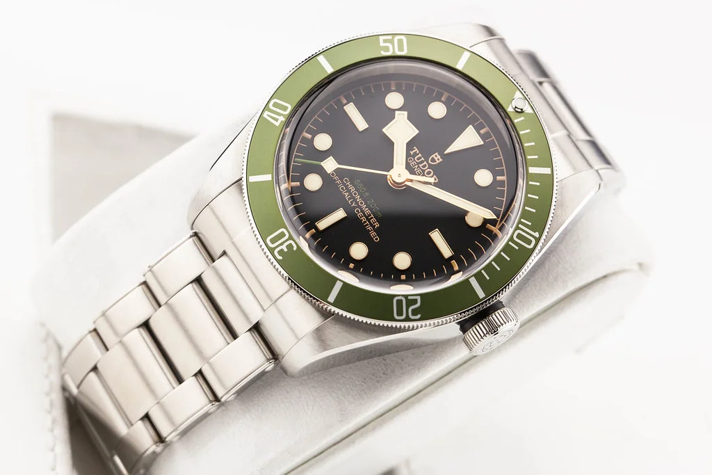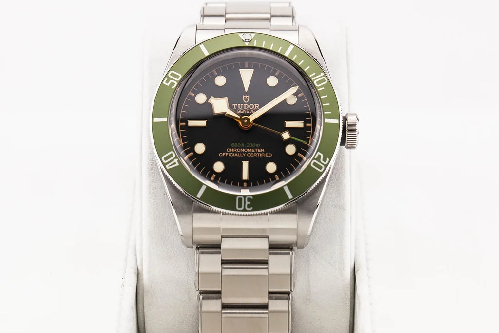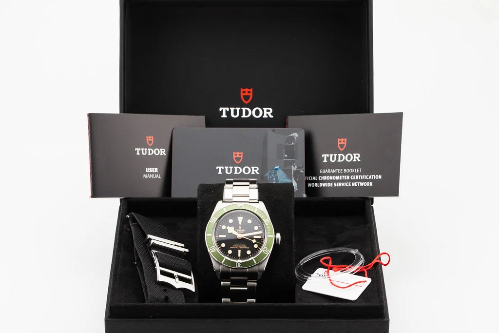 ·Up for sale is a mint condition Tudor Heritage Black Bay Harrods Edition Green Bezel / Black Dial 41mm, reference # 79230G. It comes complete with all boxes, papers, booklets, hang tag, textile strap, bezel guard and Tudor Warranty Card dated November 2024.