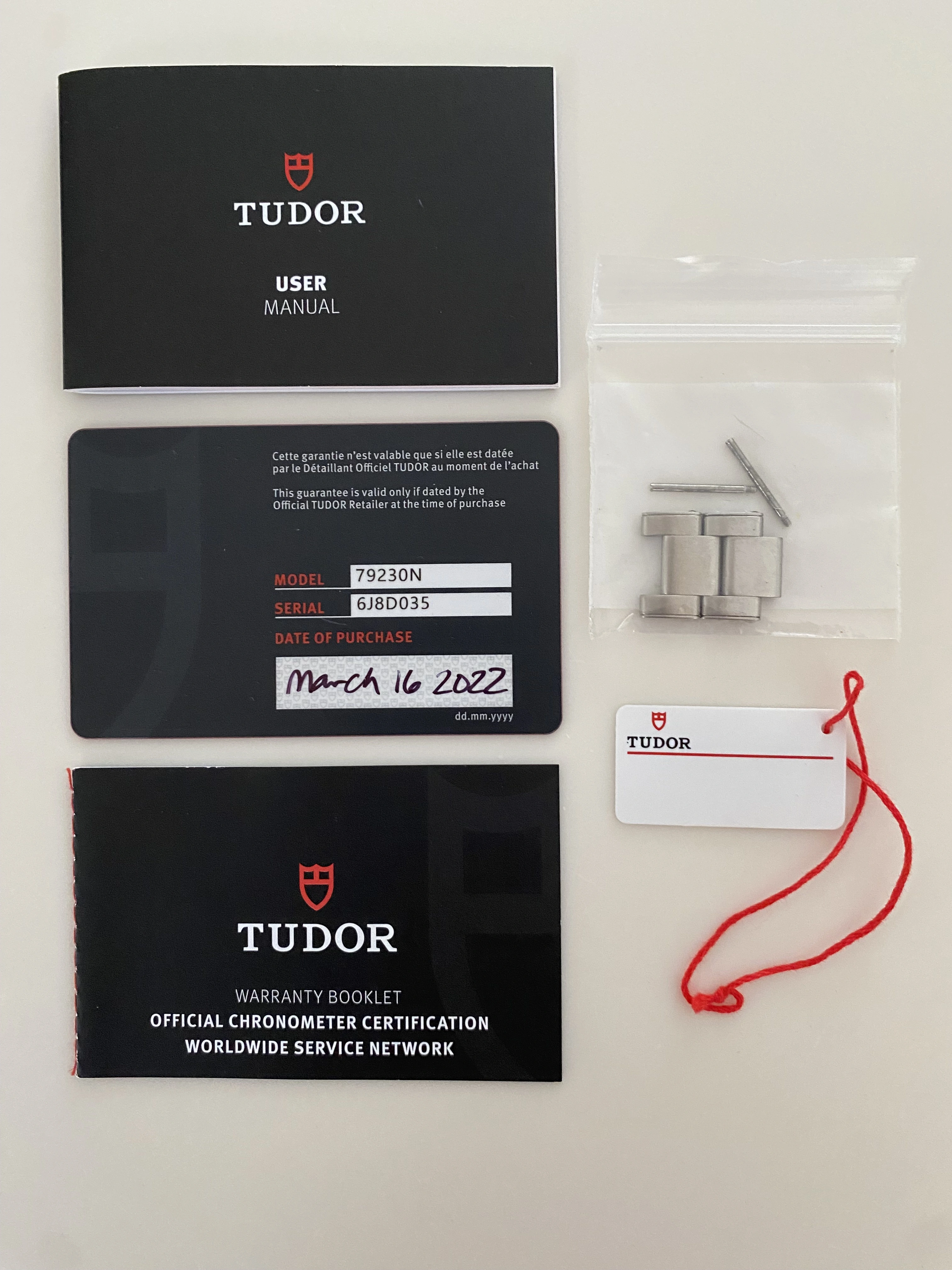 Includes outer box, inner box, all manuals, warranty card, extra link, spring bars, hangtag and even original bill of sale. Serious inquiries only, please.