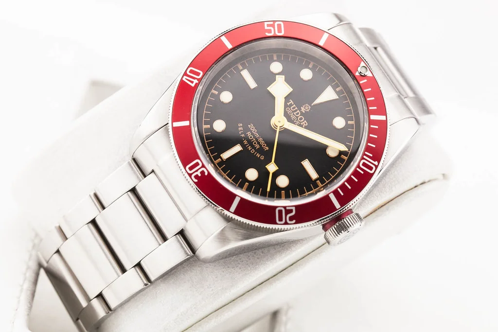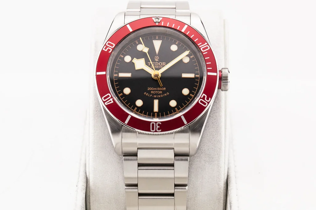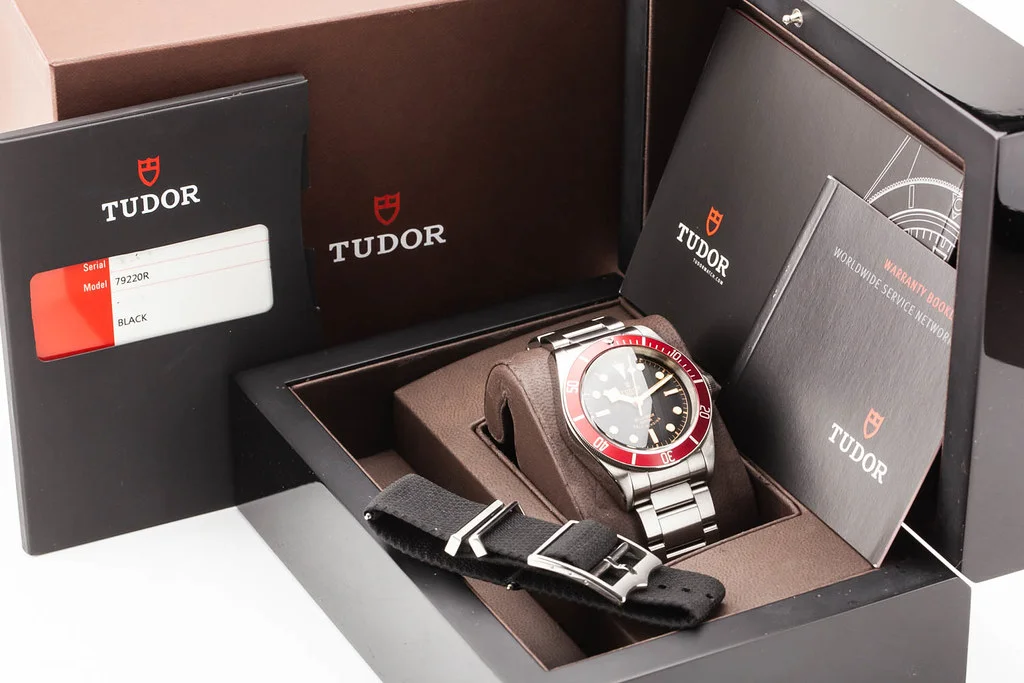 ·Up for sale is an excellent condition Tudor Heritage Black Bay 41mm Red Bezel / Black Dial on Bracelet, reference # 79220R. It comes with all boxes, papers, booklets, textile strap and Tudor Warranty Card dated November 2015.