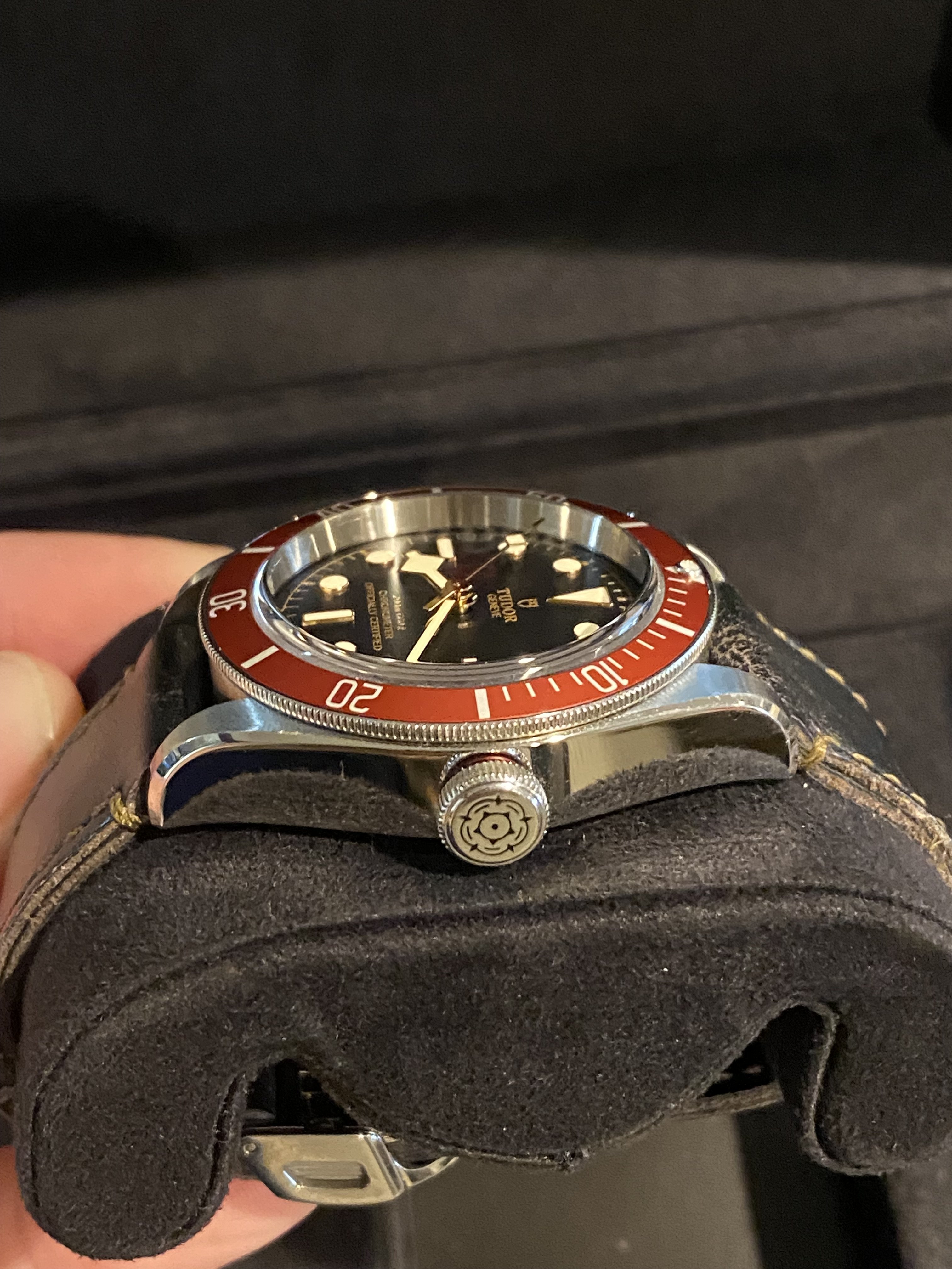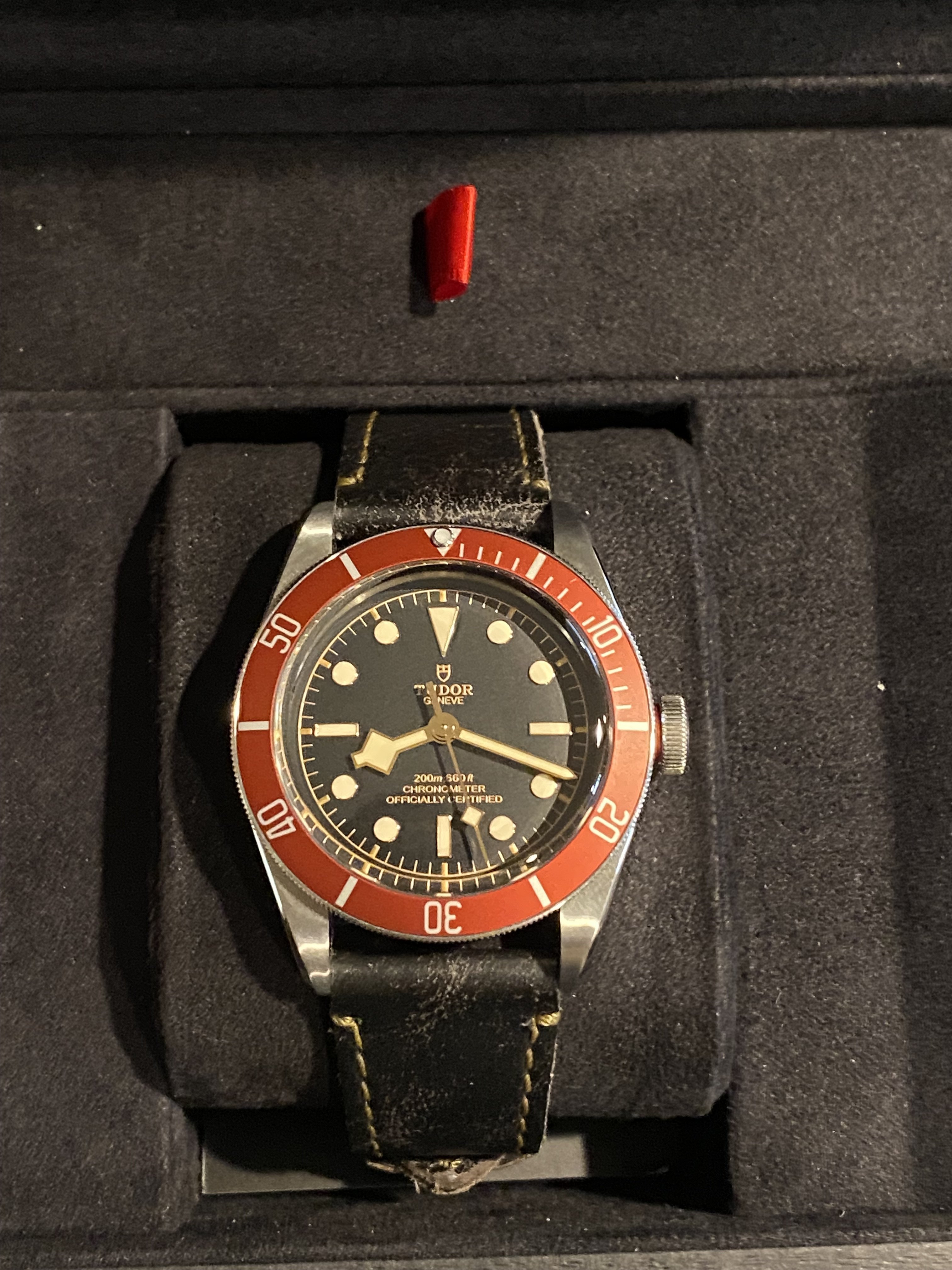 ·For sale is my Tudor Black Bay w/ Red Bezel. I purchased this watch only two years ago, and it has never needed service. This watch is outstandingly accurate, running around +2s/day. A great looking watch that will draw compliments throughout your day. Will be sold with original box as pictured (outer box also included for protection of display box). Asking $2950, shipped to Continental US. Shipping outside the US adds $150 to sale price. Photos and details below: