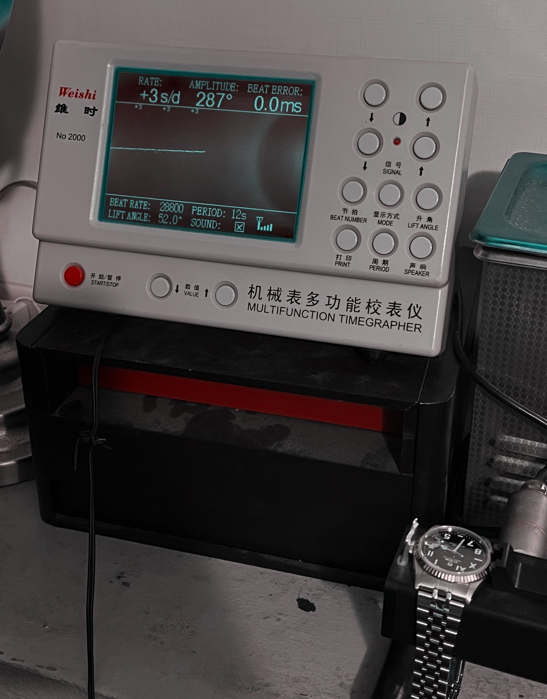 ·For sale ($3,750 OBRO) have my Tudor Date Day, Reference 76214 (H432XXX serial) with the rare California Dial. The watch comes as a full set as shown below, originally sold on January 2004 based on the original sales receipt. The watch was serviced by Tudor Service Center on July of 2022 so under warranty until July 2024. The watch is in very good conditions as shown; selling the watch as am in a watch consolidation effort and this beauty is getting almost no wrist time, so time for it to go to a new home! The movement is running strong, running at +3 SPD with an amplitude of 287 and 0.0 ms beat error based on the time grapher results as shown below. The California dial is pretty rare on 762XX Date Day models in general, even more rare on the 76214 model which has the 18K white gold fluted bezel. The dial lume is green and the hour markers glow, as shown on the pictures below.