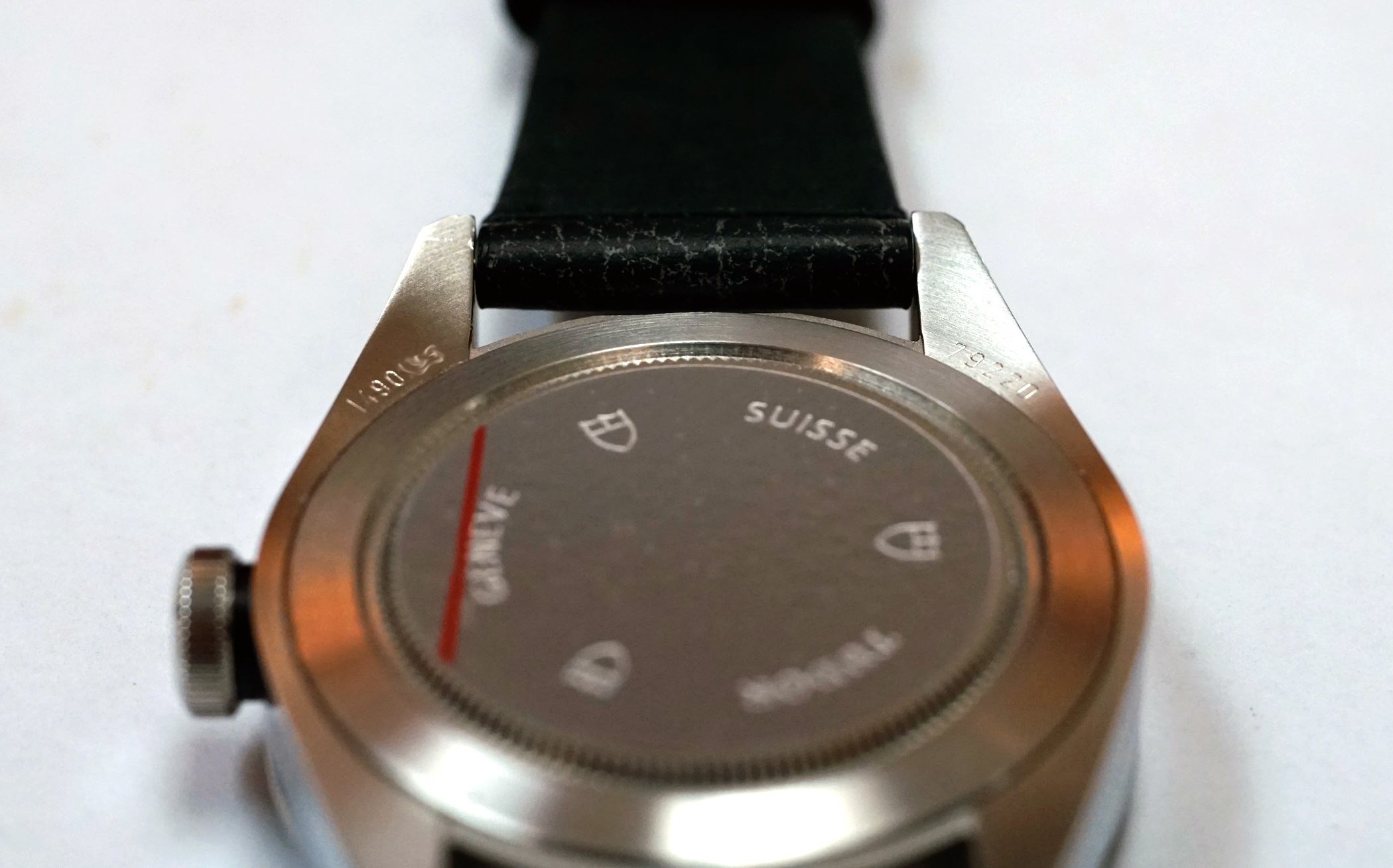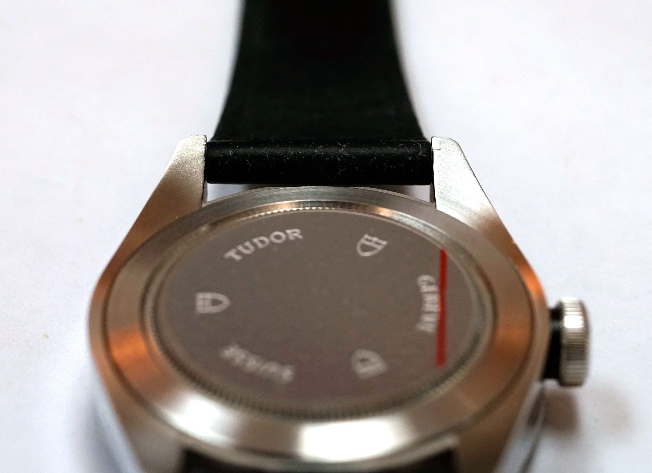 -Genuine Tudor Distressed Leather Strap and Clasp, can accommodate a wrist up to ~8-1/4"