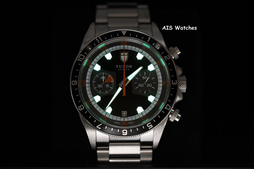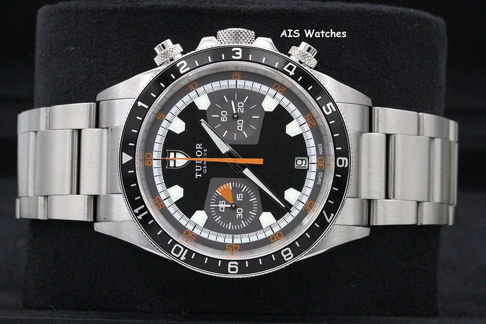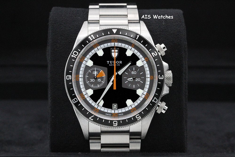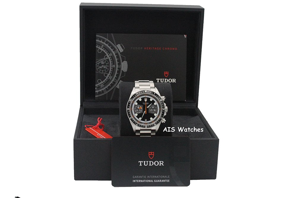 ** Tudor Heritage Chronograph 70330N Black Dial Stainless Steel Bracelet