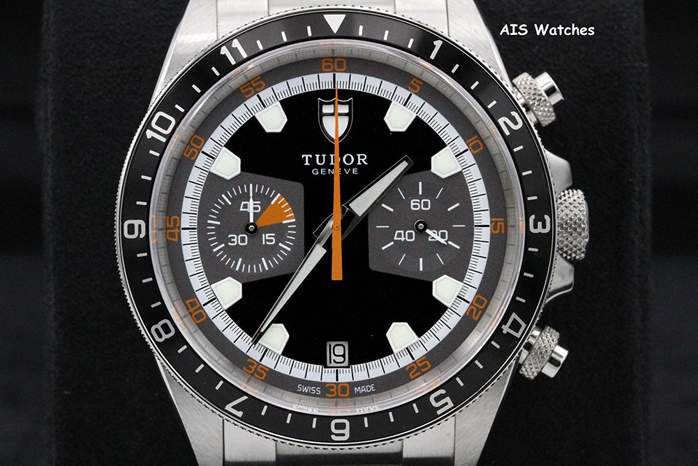 ** Tudor Heritage Chronograph 70330N Black Dial Stainless Steel Bracelet