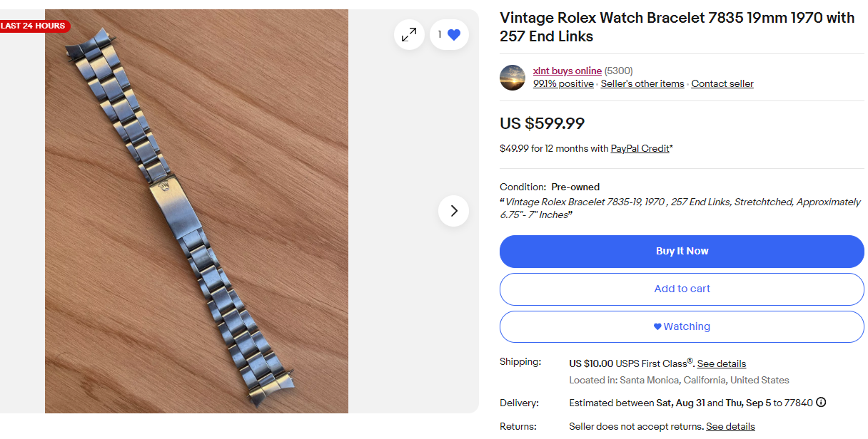 2) Do either of the listings linked below/found on eBay seem authentic? I realize there may be an age mismatch between the 7909 and these bracelet examples.