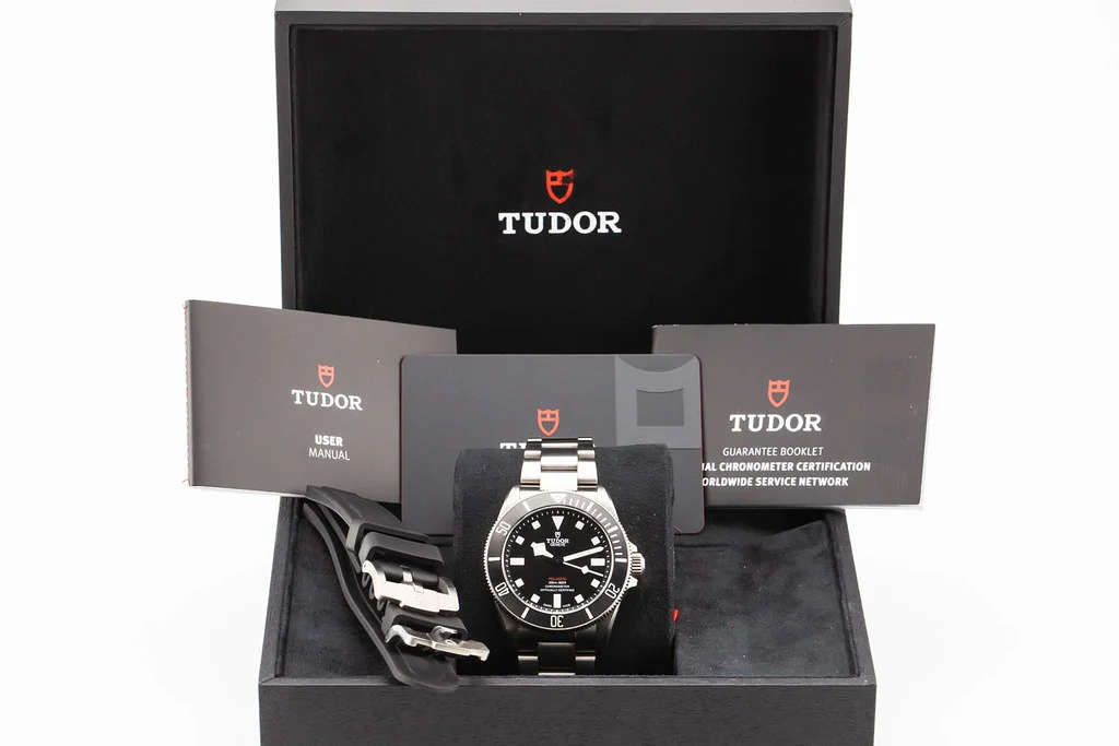 ·Up for sale is an excellent condition Tudor Pelagos 39 Black Dial on Titanium Bracelet, reference # 25407N. It comes with all boxes, papers, booklets, rubber straps and Tudor Warranty Card dated June 2023.