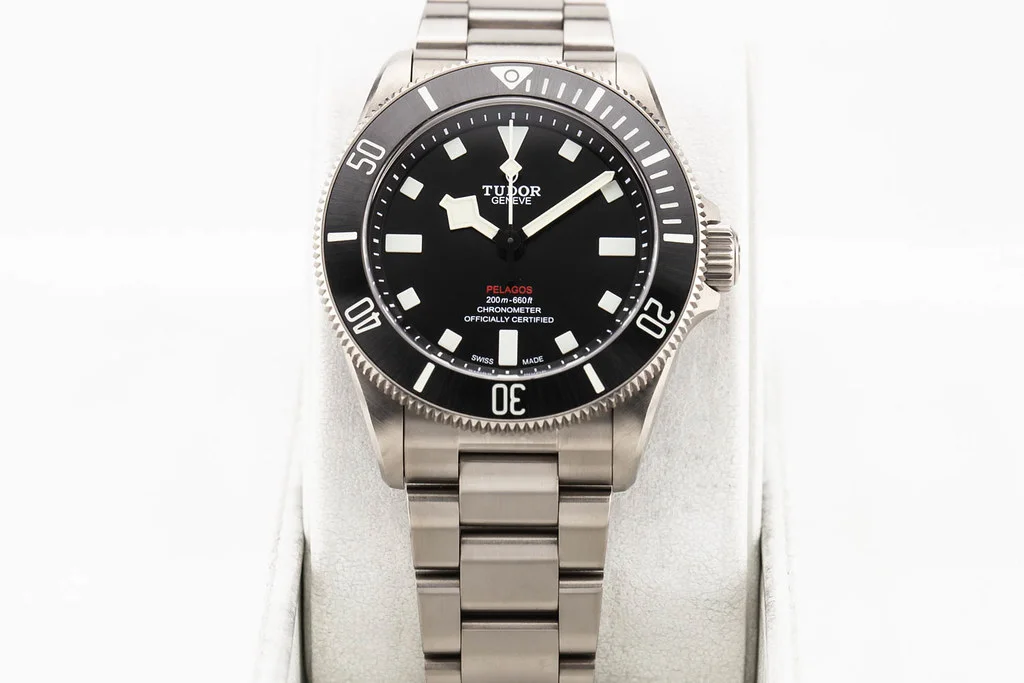 ·Up for sale is an excellent condition Tudor Pelagos 39 Black Dial on Titanium Bracelet, reference # 25407N. It comes complete with all boxes, papers, booklets, hang tag, rubber straps and Tudor Warranty Card dated September 2023.