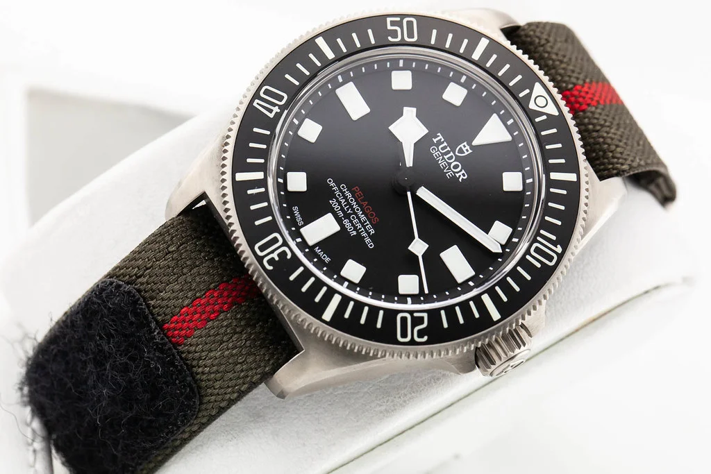 ·Up for sale is an excellent condition Tudor Pelagos FXD Black Dial with Fabric Strap, reference # 25717N. It comes complete with all boxes, papers, booklets, hang tag, strap, and Tudor Warranty Card dated March 2024.
