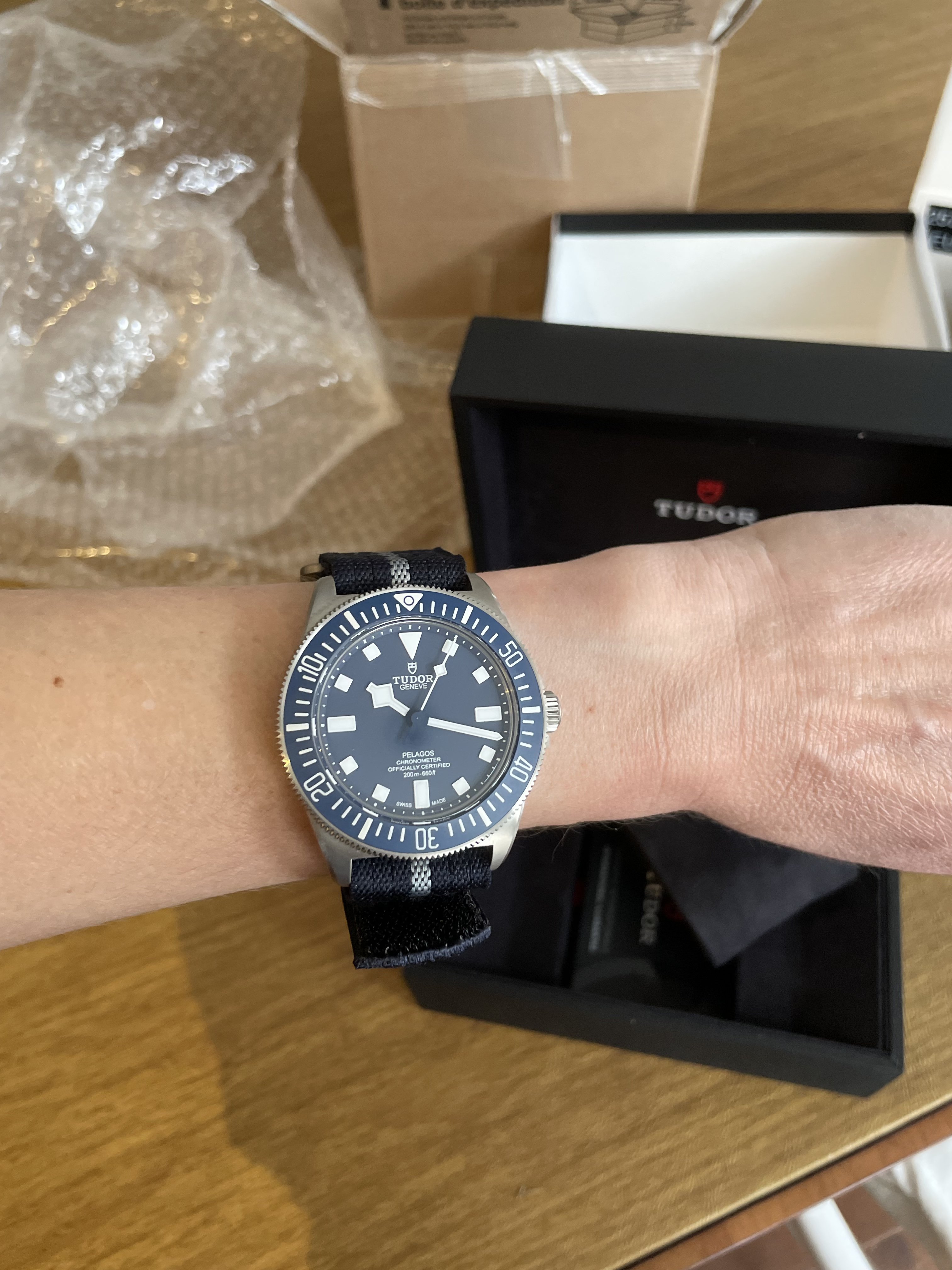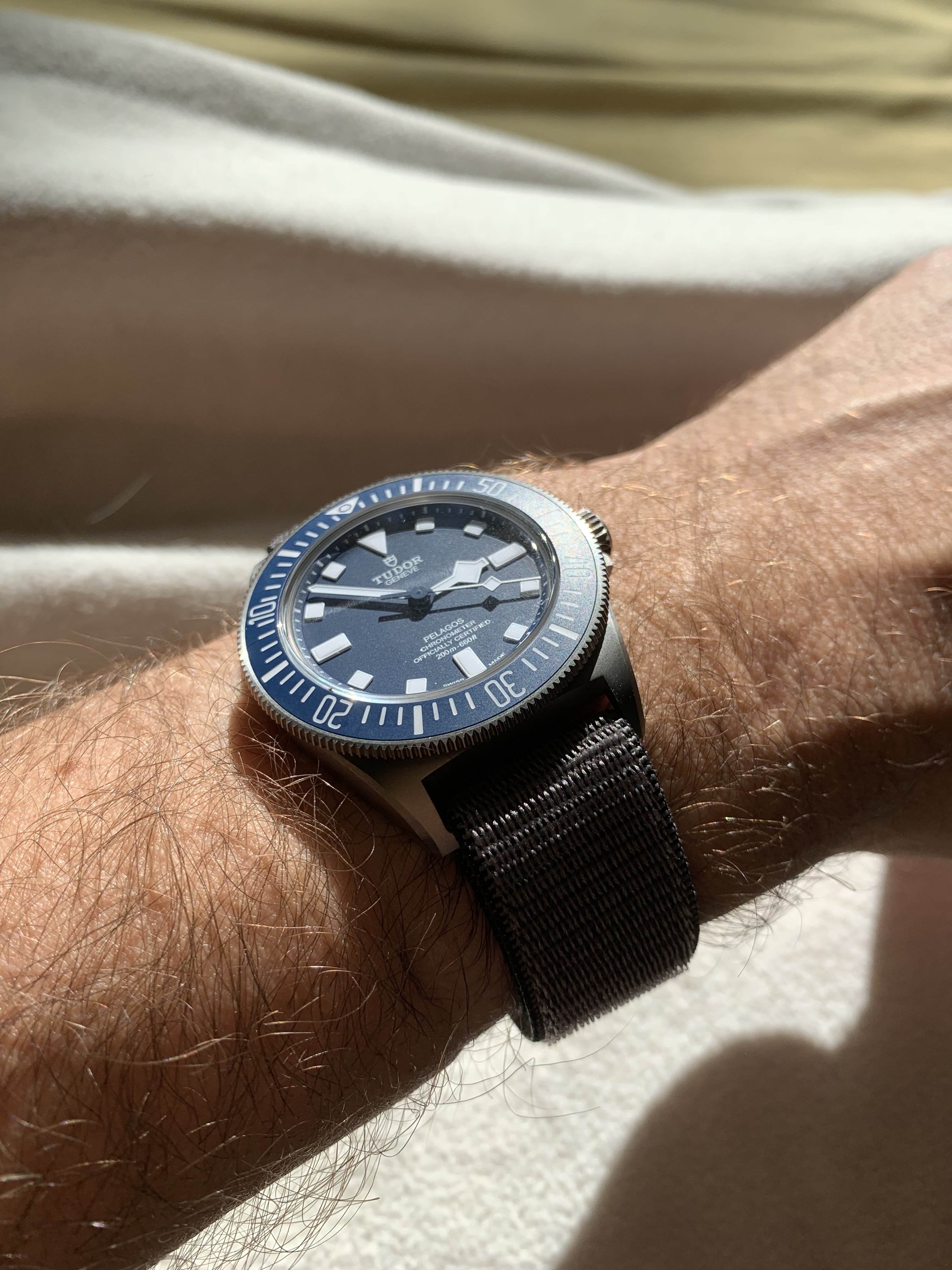 I also bought their Cyprus (olive seatbelt) nato but feeling a bit underwhelmed by it in the bright California light. This strap looks much better in diffused natural light imo.