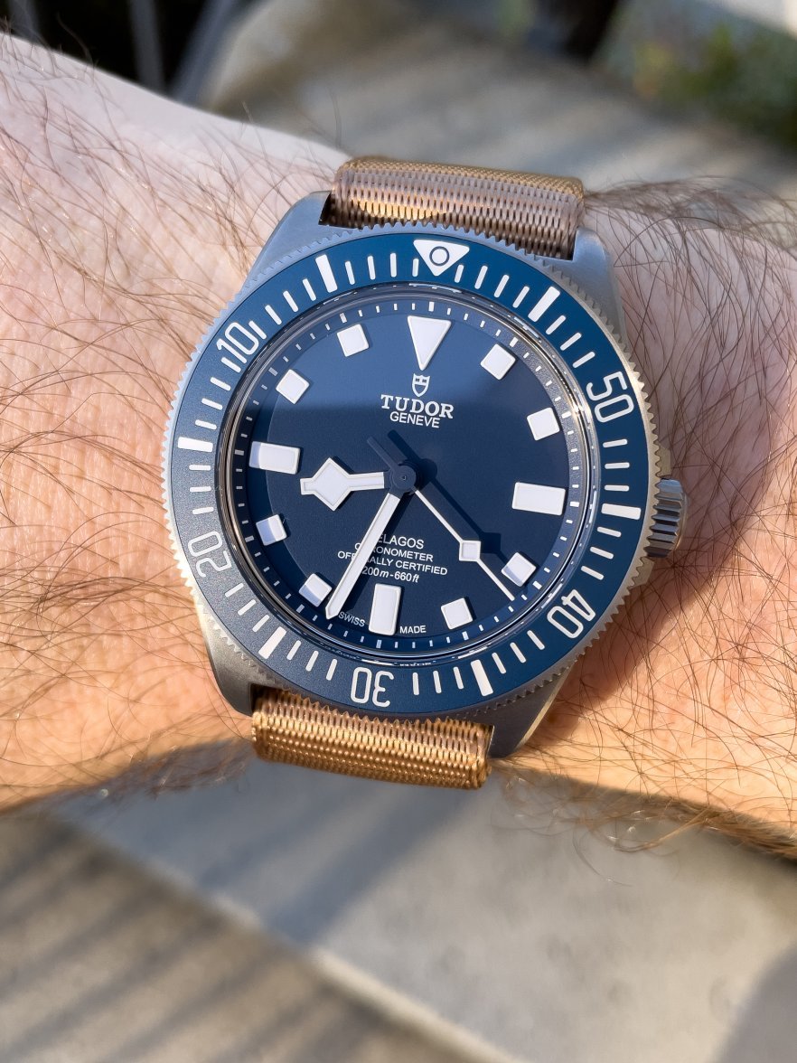 ·Oops, missed a picture of it on a tan NATO strap. It would probably look better with brushed steel hardware, but overall, I think this looks acceptable.