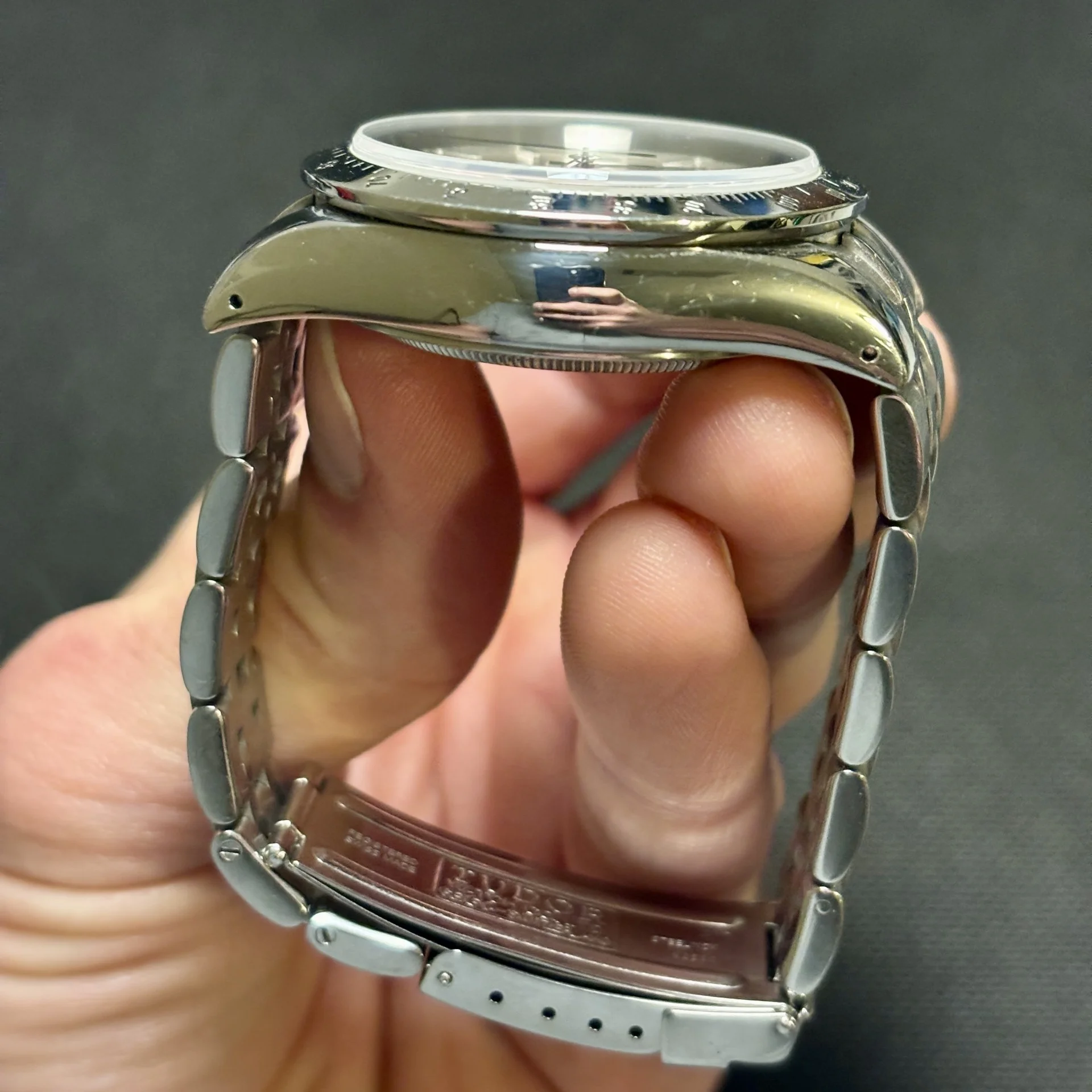 Other Info: Water resistance 100m, Flat sapphire crystal, Tudor 62590 jubilee bracelet w/ solid end links (not full links - 11 links - fits up to only 7’ wrist)