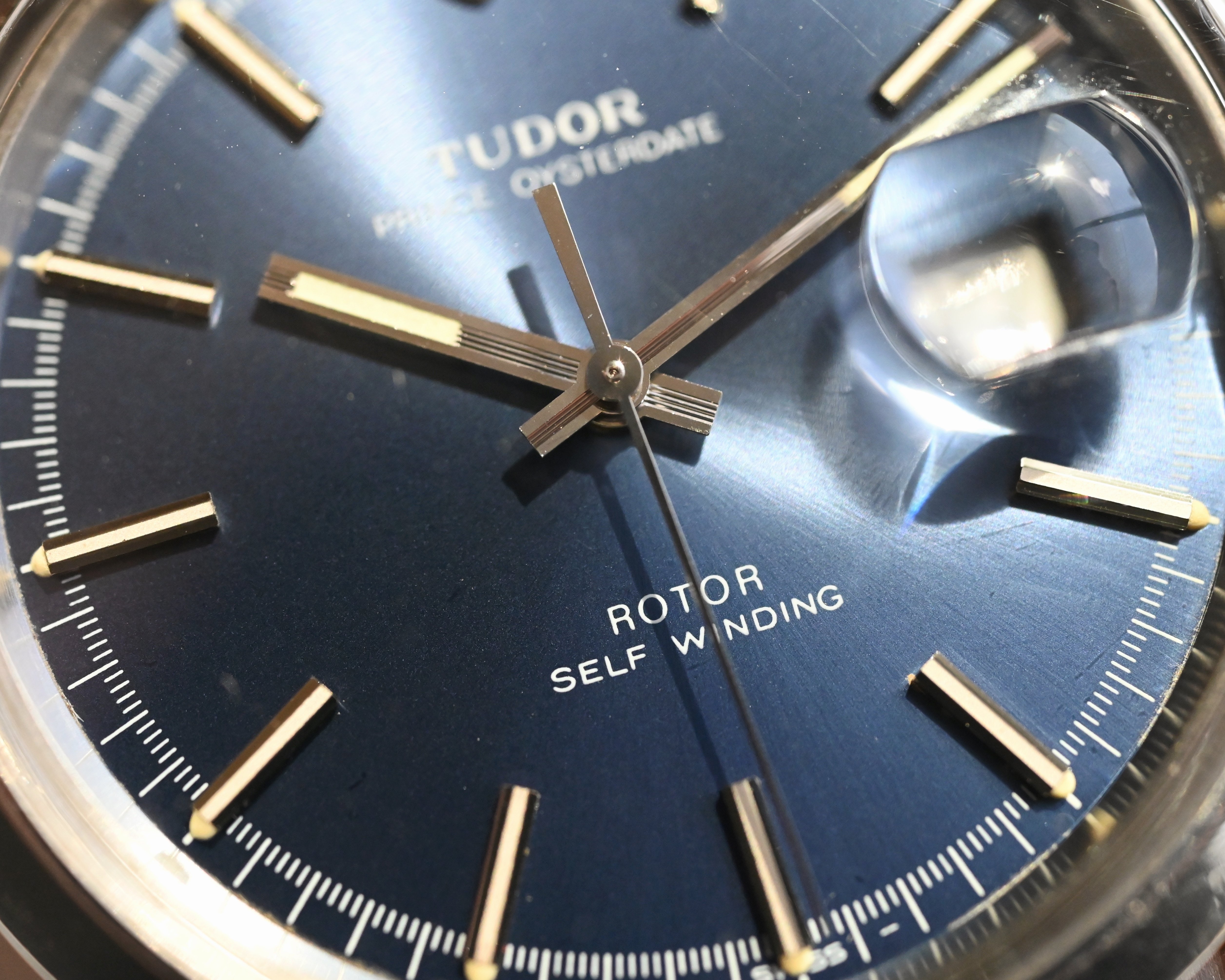 Dial: excellent sunburst blue dial with warm even, matching patina on hands and plots, all lume plots are present. The hands feature a really cool ridged detail setting it apart from anything Rolex has ever done.