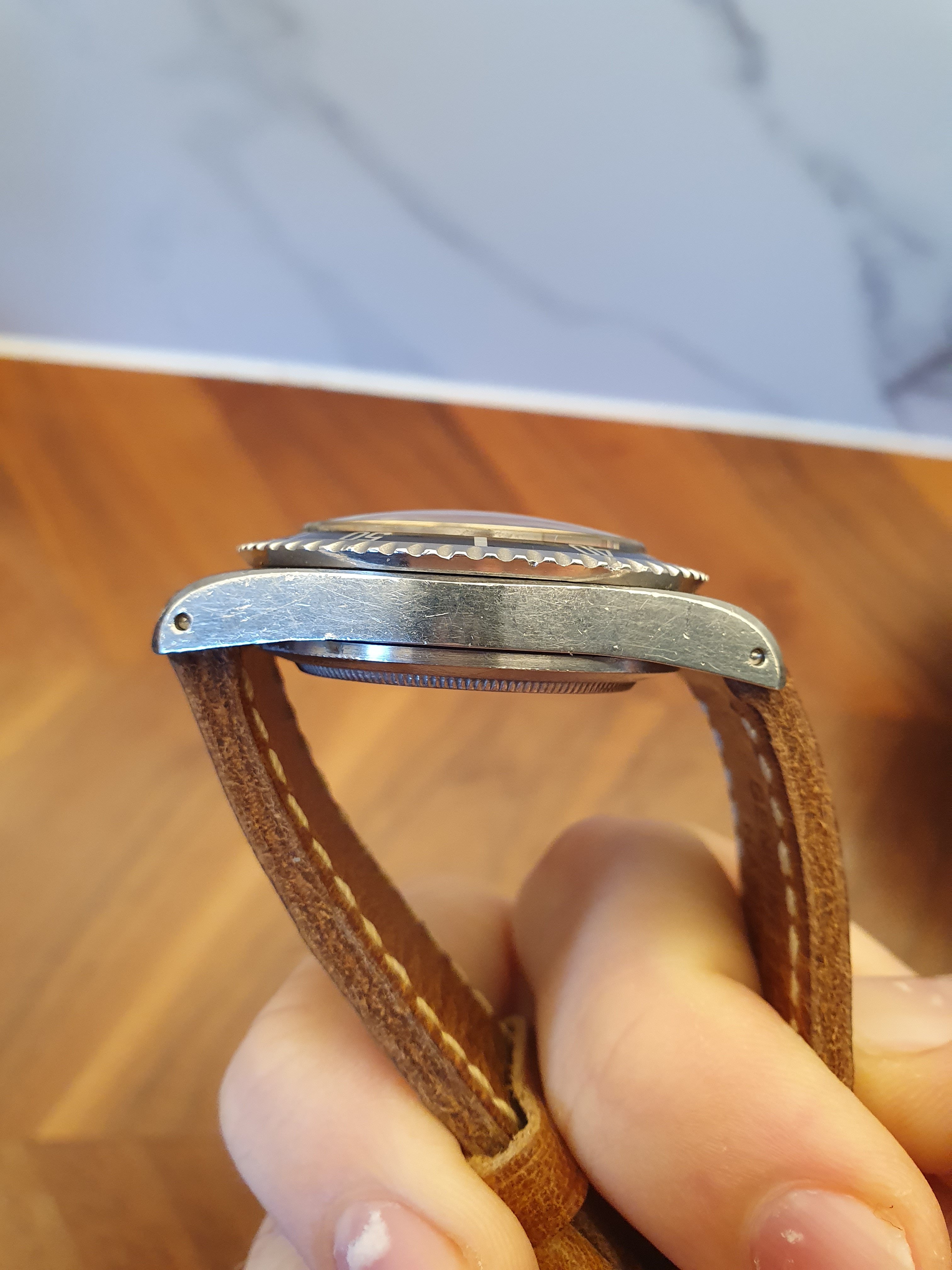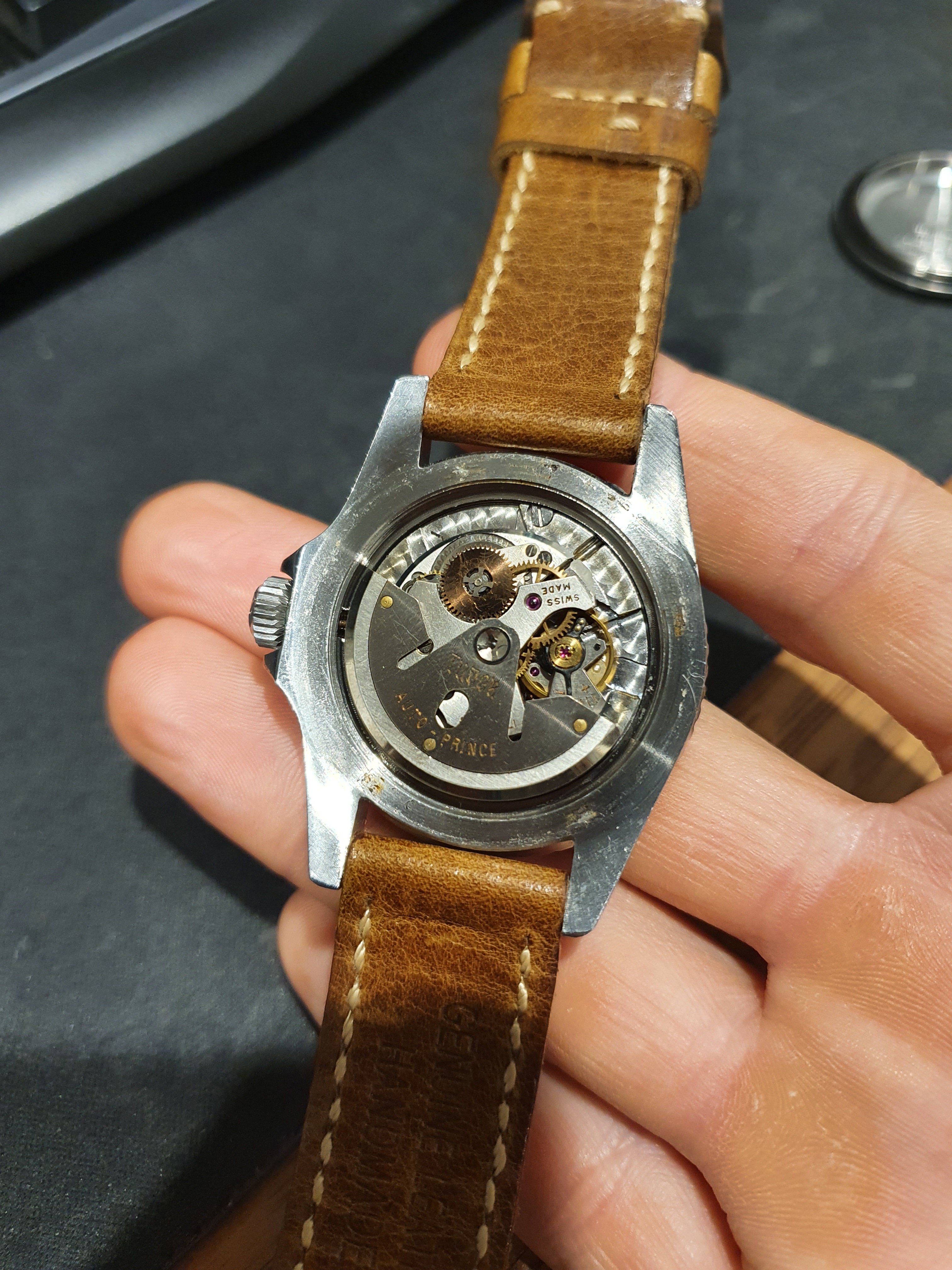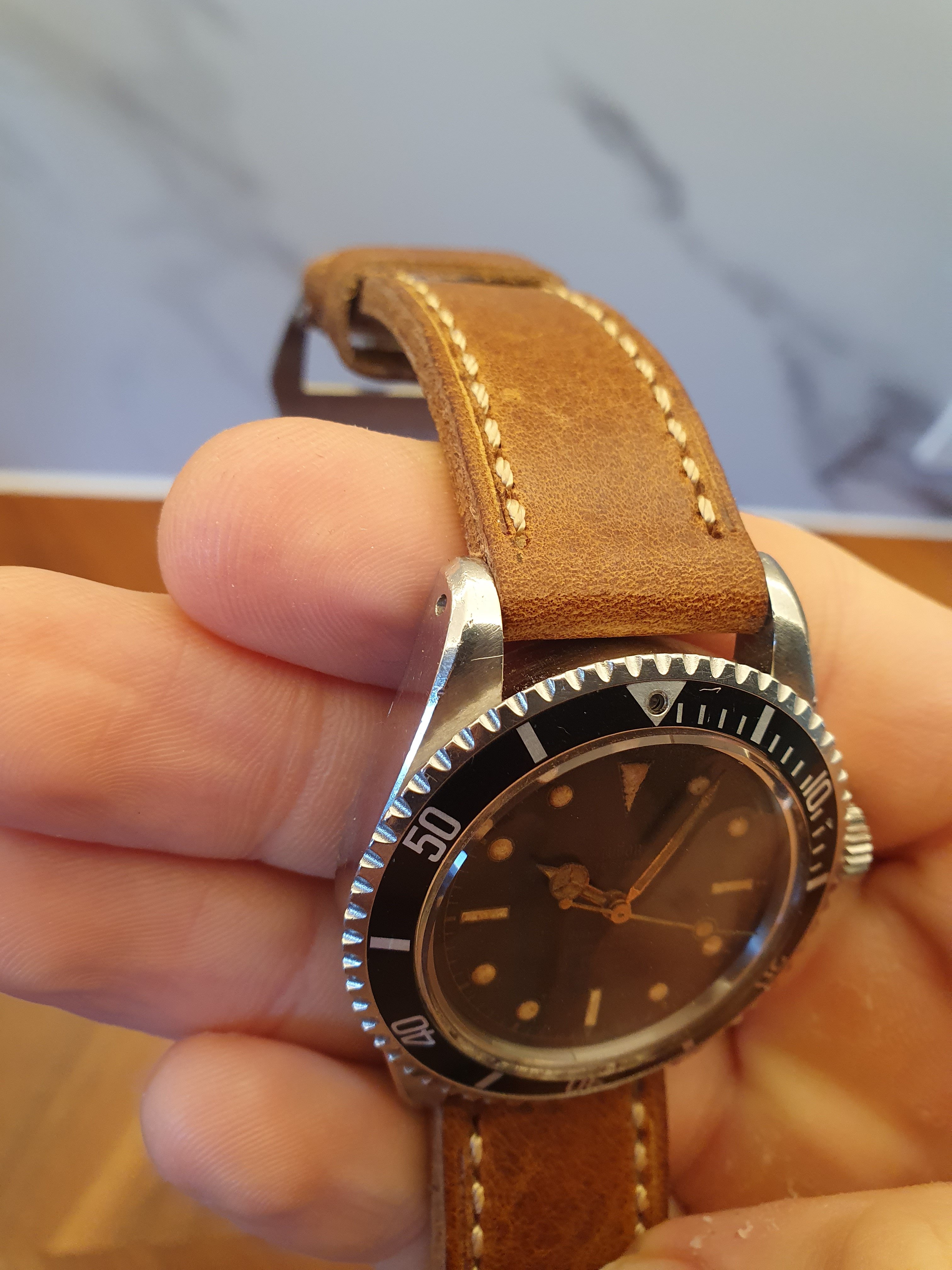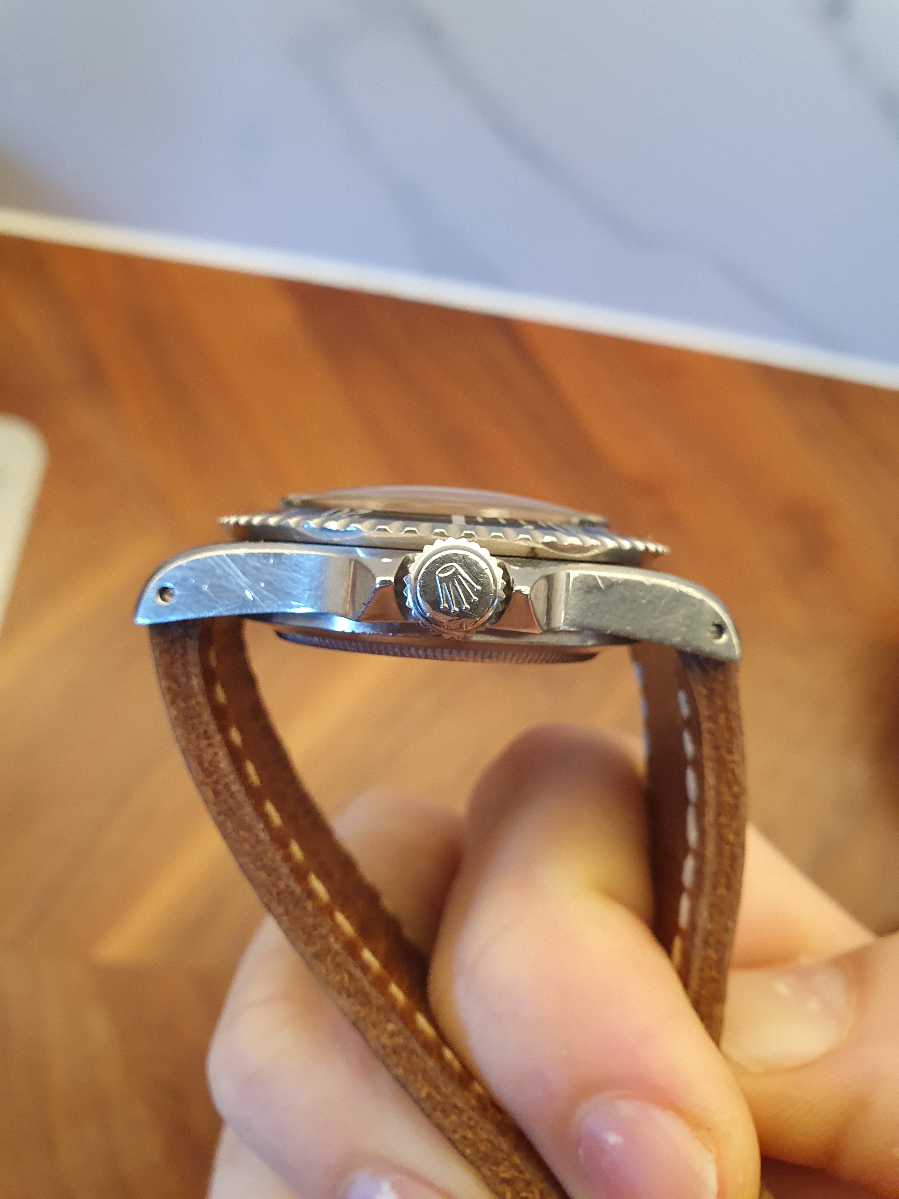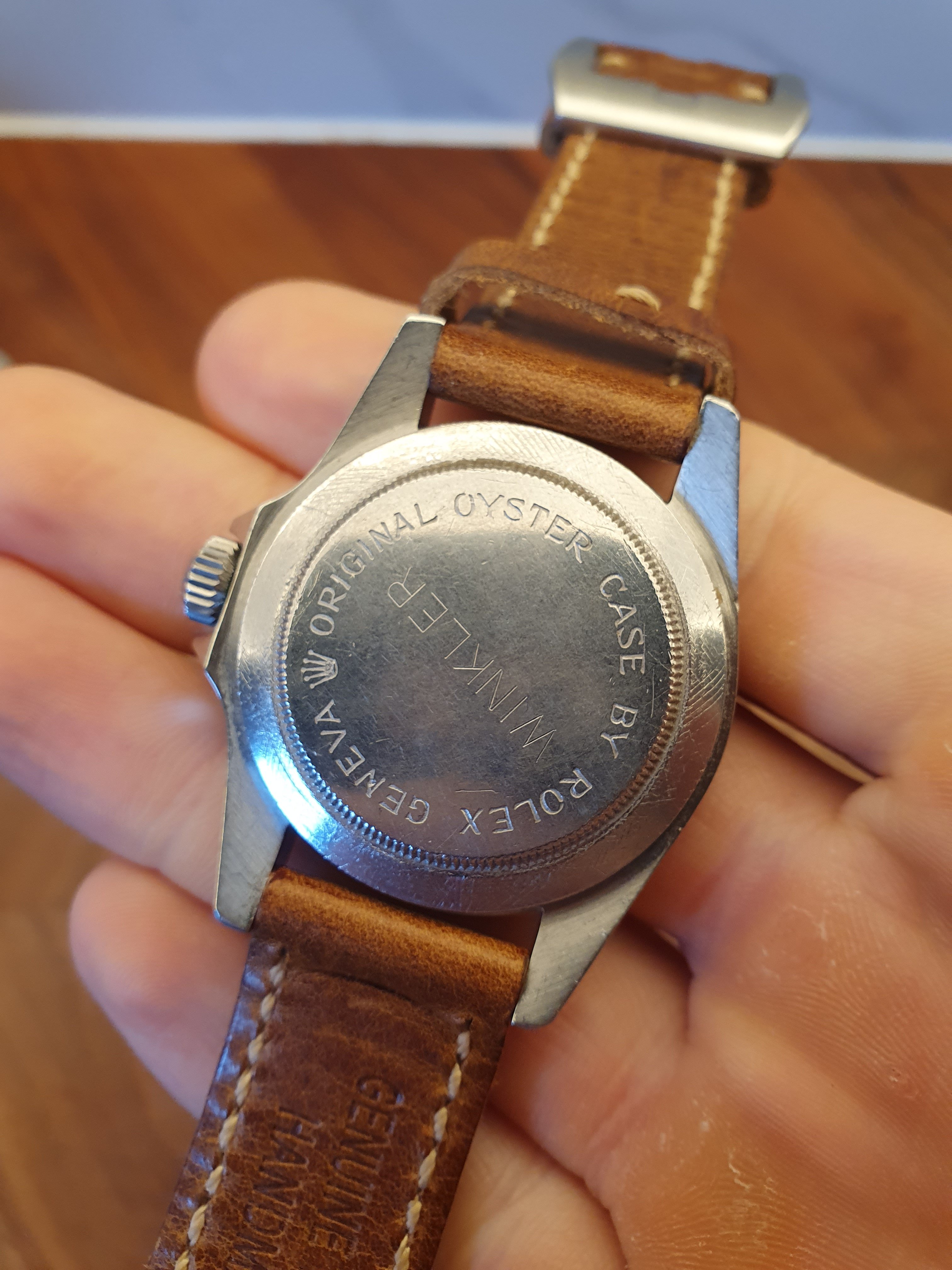 Watch is running well, and will come on the leather strap shown. The crystal is a genuine rolex replacement T19.