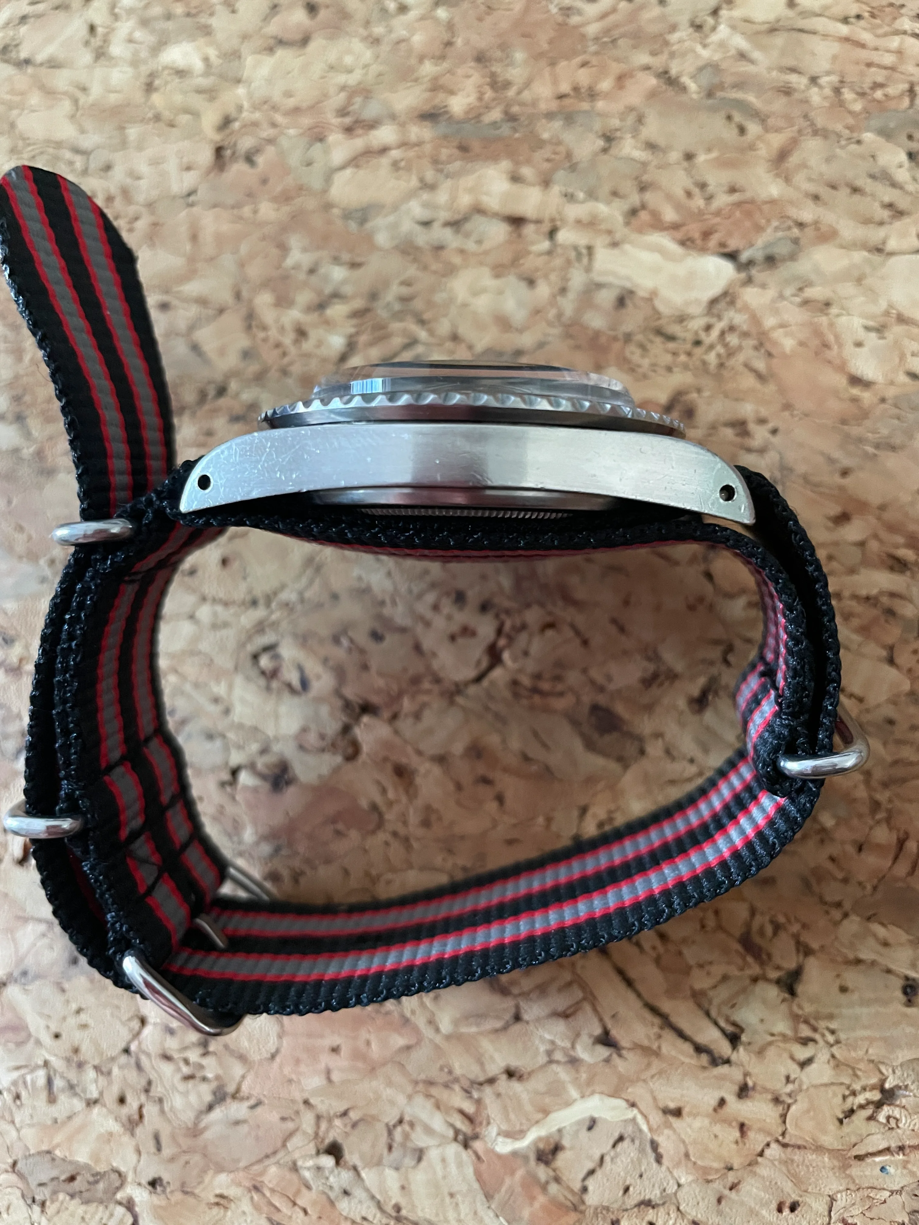 39mm stainless steel case with a matte black dial and Mercedes hands. Original tritium lume on dial and hands. Comes on the NATO strap seen in the picture. Powered by the ETA 2824-2 automatic movement running and keeping time but service history unknown.