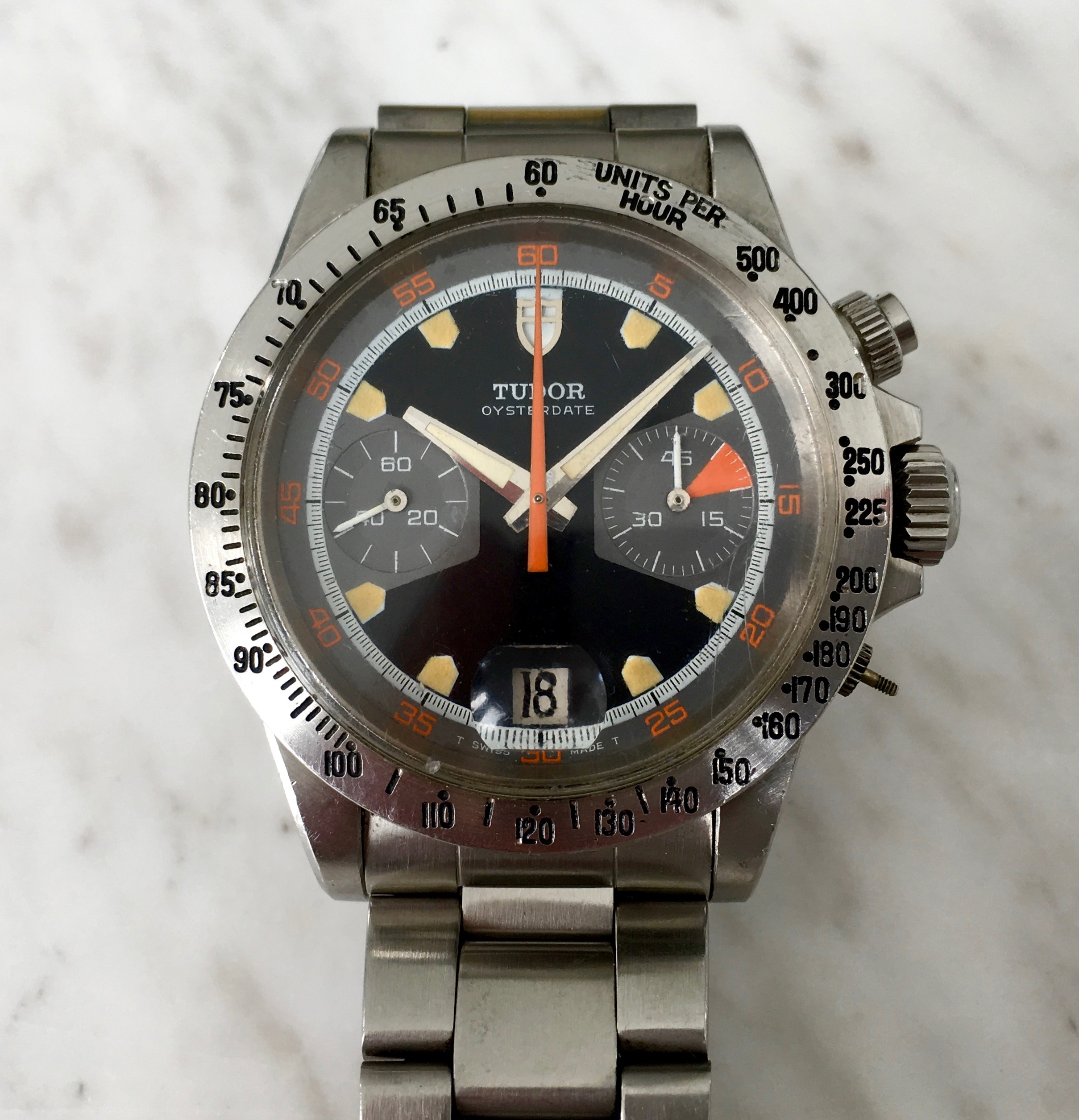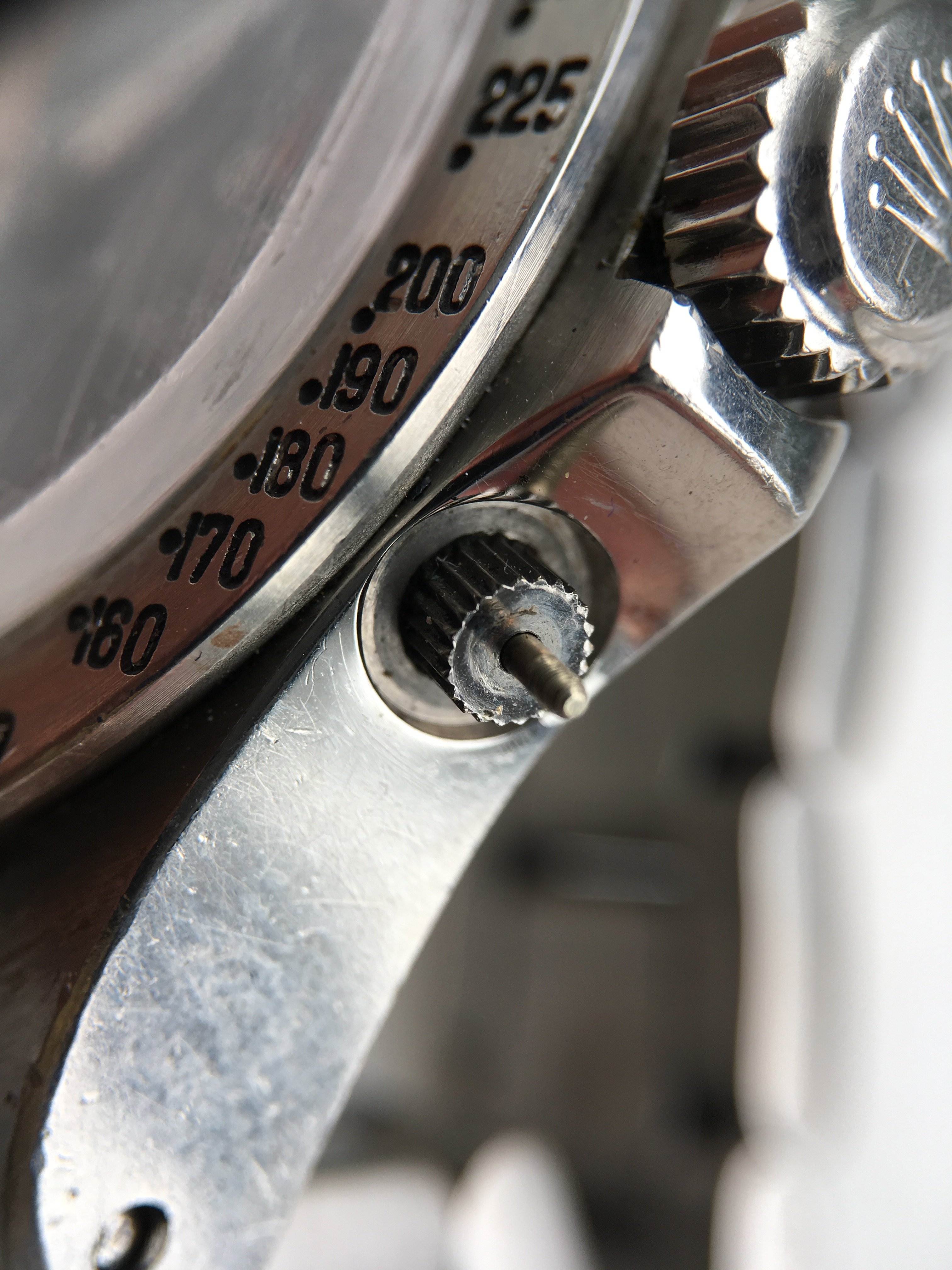 ·More details on Tudor 7032/0 black dial Home Plate. This watch took me on many journeys but none so amazing as the uphill learning curve in watch collecting. When I took the watch out of my sock drawer in 2020, I fully anticipated wearing it after I got it serviced. I had absolutely no watch knowledge at all and imagined i could find a spare part and screw it on myself. My first step was to try and find a matching photo on line that might lead to information. Then I needed to understand how watches are identified, what a "calibre" was, terms like "pusher", "dial", "chronometer", "tachymeter". Next I had a difficult time finding a watch maker even though I live near a large "world-class" city. I had presumed it was a "long-gone" profession. That turned out to be fairly accurate. With watch in hand I visited several, even pawnshops. Everyone said they couldn't replace the pusher I was missing, and the part would be virtually impossible to source. Never one to give up easily, I badgered one guy who gave me a contact in Kelowna, British Columbia. Meeting him was a tremendous experience and he was sensitive enough to leave the watch alone (others advised me not to touch it, leave it as original as possible) and just focus on the replacement pusher. Seals were shot so those had to be changed. For those who love detail I will show you what the watch looked like after nearly 50 years without the pusher...lost in a pocket I believe, when I took the watch off after an evening out. Next post, what to do next?