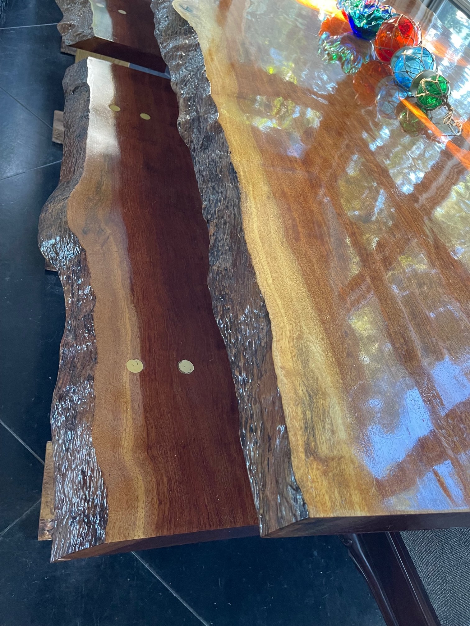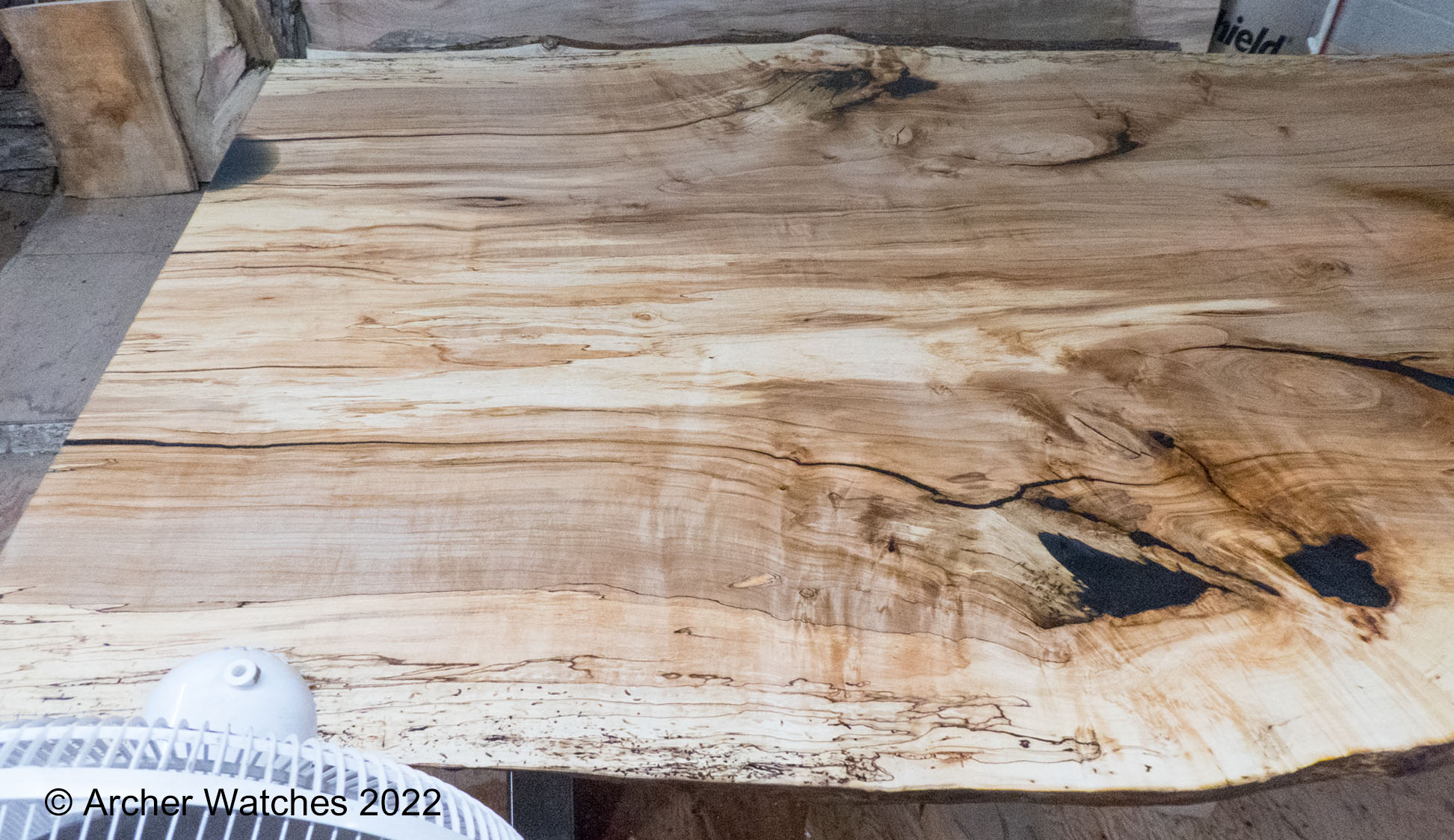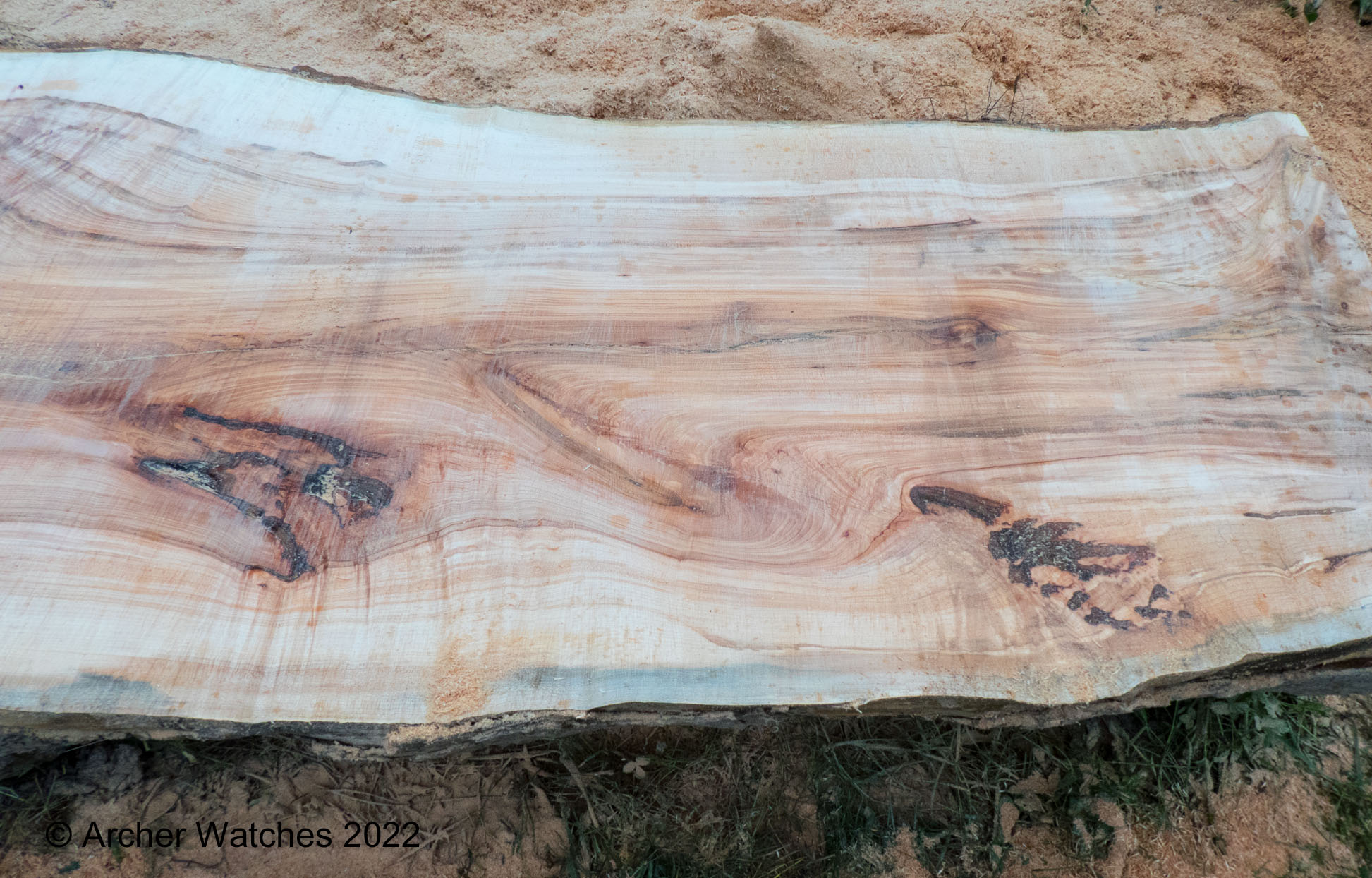 Our trunk was too large for the sawmill they have that uses a bandsaw, so to saw this up they used a chainsaw sawmill. This is an attachment to a chainsaw fitted with a longer bar, that allows you to cut slabs from a piece of wood like this. It works very well, but the loss of wood is greater with this method because the chainsaw is thicker than the bandsaw is (more wood lost to chips), and this is more labour intensive. Here are some photos I took during the process: