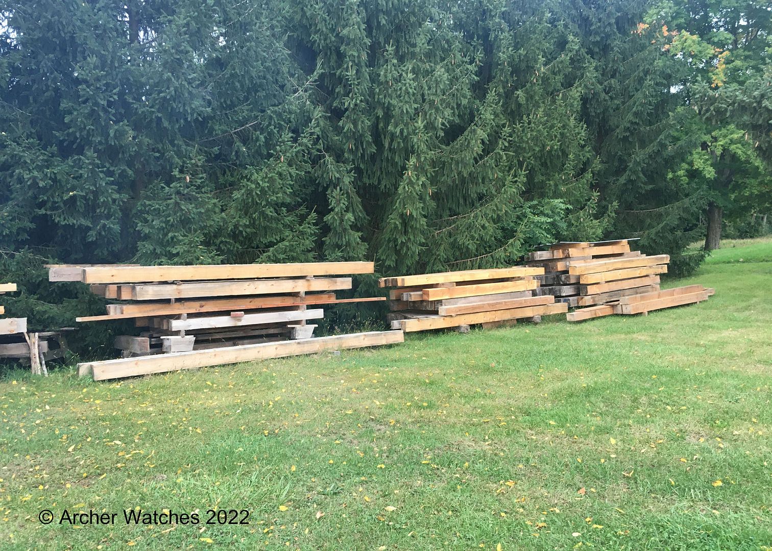 In talking to the guys, they said that they have hit all kinds of debris inside trees like this. Bullets are pretty common from hunting, but they have hit pipes, bricks, chunks of concrete, etc. They even find fence posts and wire - ironic then that this is one of the trees on their property...