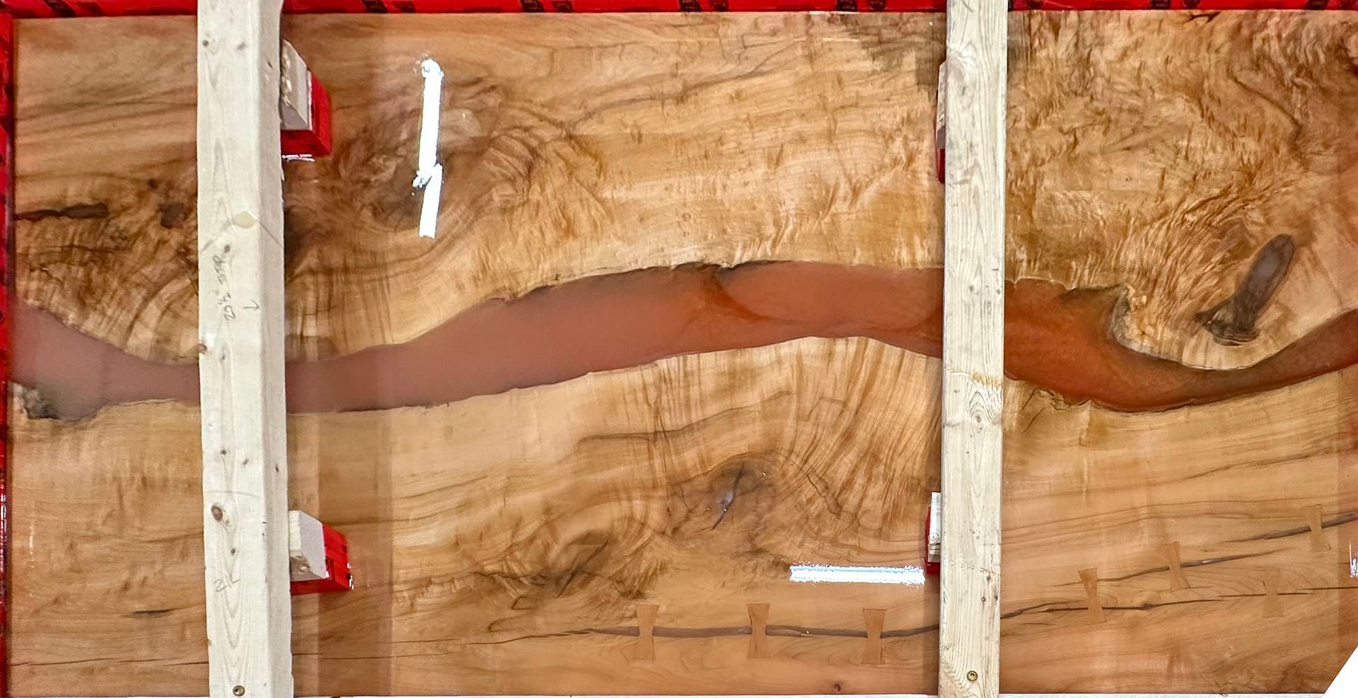 In addition to the table, we are having one wall hanging made, plus a number of floating shelves. That still left a lot of wood to be used, but luckily for us when the people doing the work posted the progress on their Facebook page, they were contacted by a woodworker who is looking for material for a large sliding barn door style door for a customer (78 inches by 102 inches, so a very large and heavy door). If the deal goes through it will help offset some of the costs for us, as they will need 3 of our slabs - the door will be in used Nova Scotia, so about 2,000 kms from here.