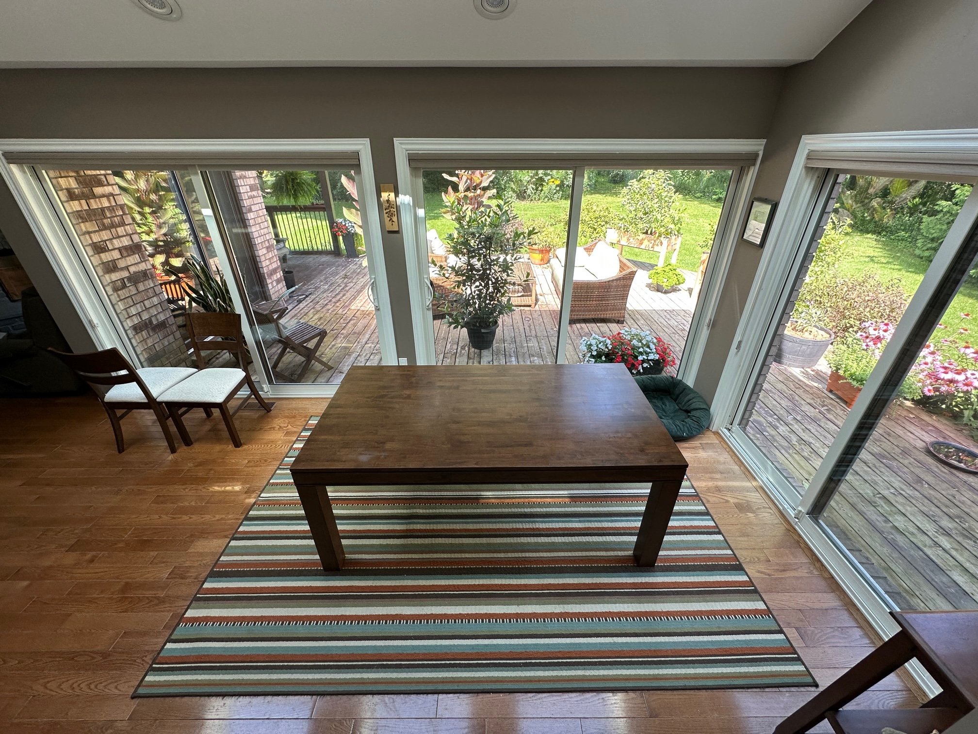 We love it. It fits the space really well - and even the old chairs look okay with it: