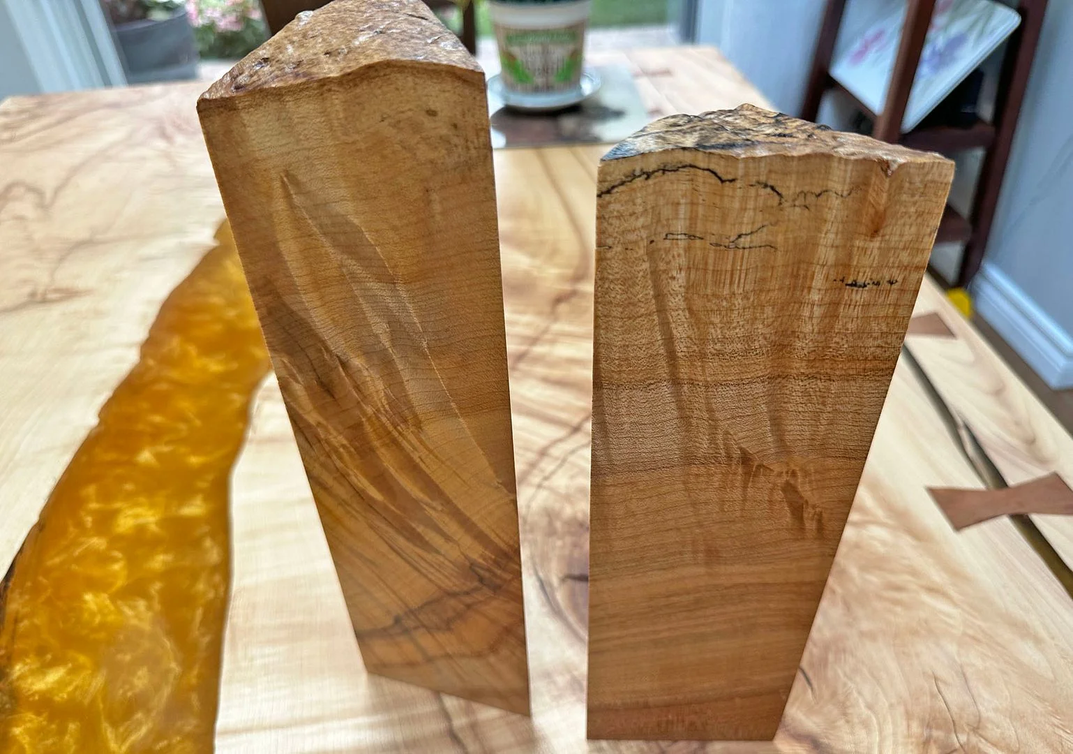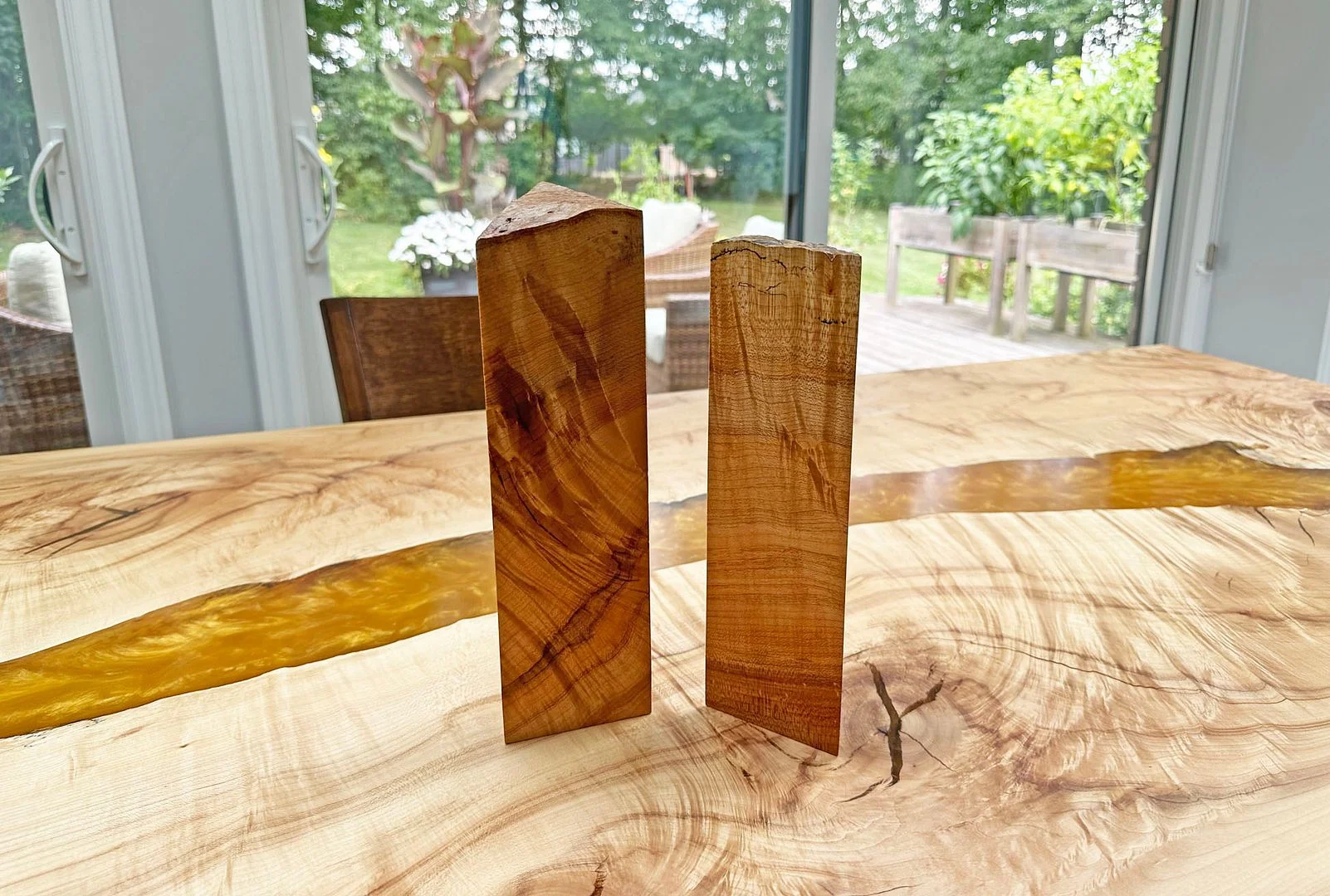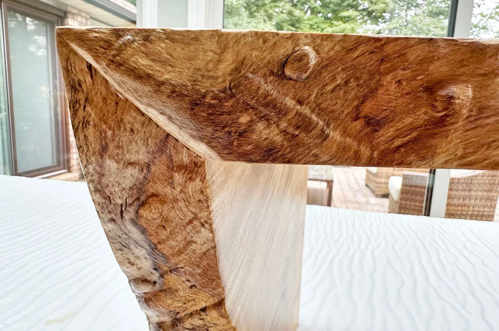 So the people doing all this work for us obviously know us well, because when they made that little table and cut those mitres, they looked at the pieces that they cut off and said "Those are too nice for the scrap pile" so they sanded and finished them for us: