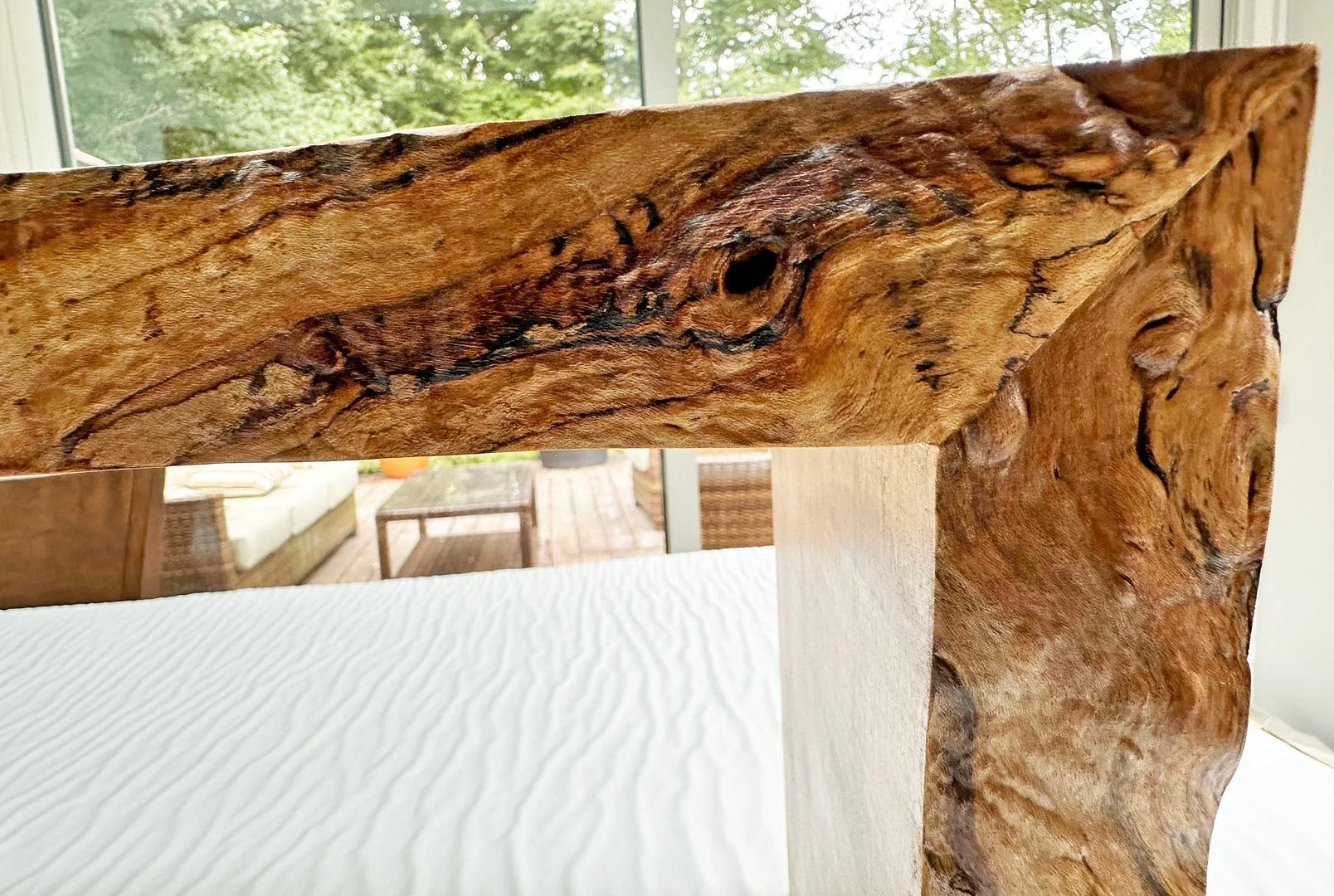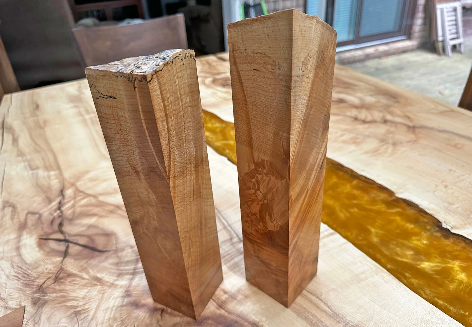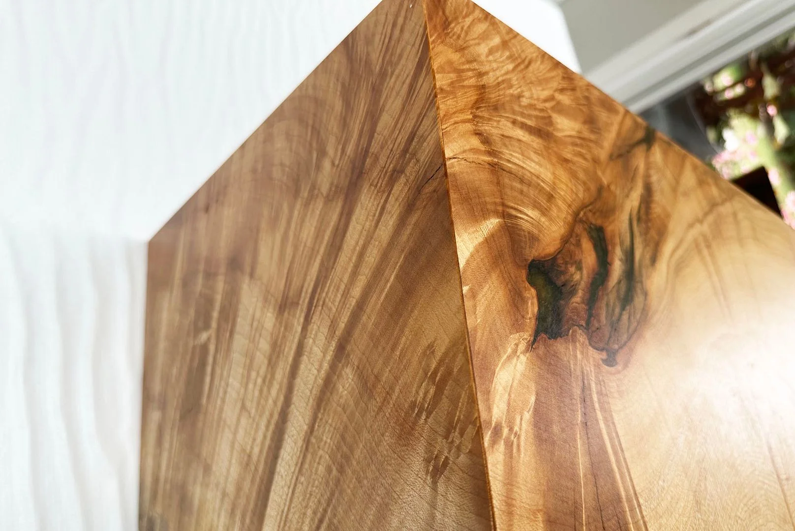 So the people doing all this work for us obviously know us well, because when they made that little table and cut those mitres, they looked at the pieces that they cut off and said "Those are too nice for the scrap pile" so they sanded and finished them for us: