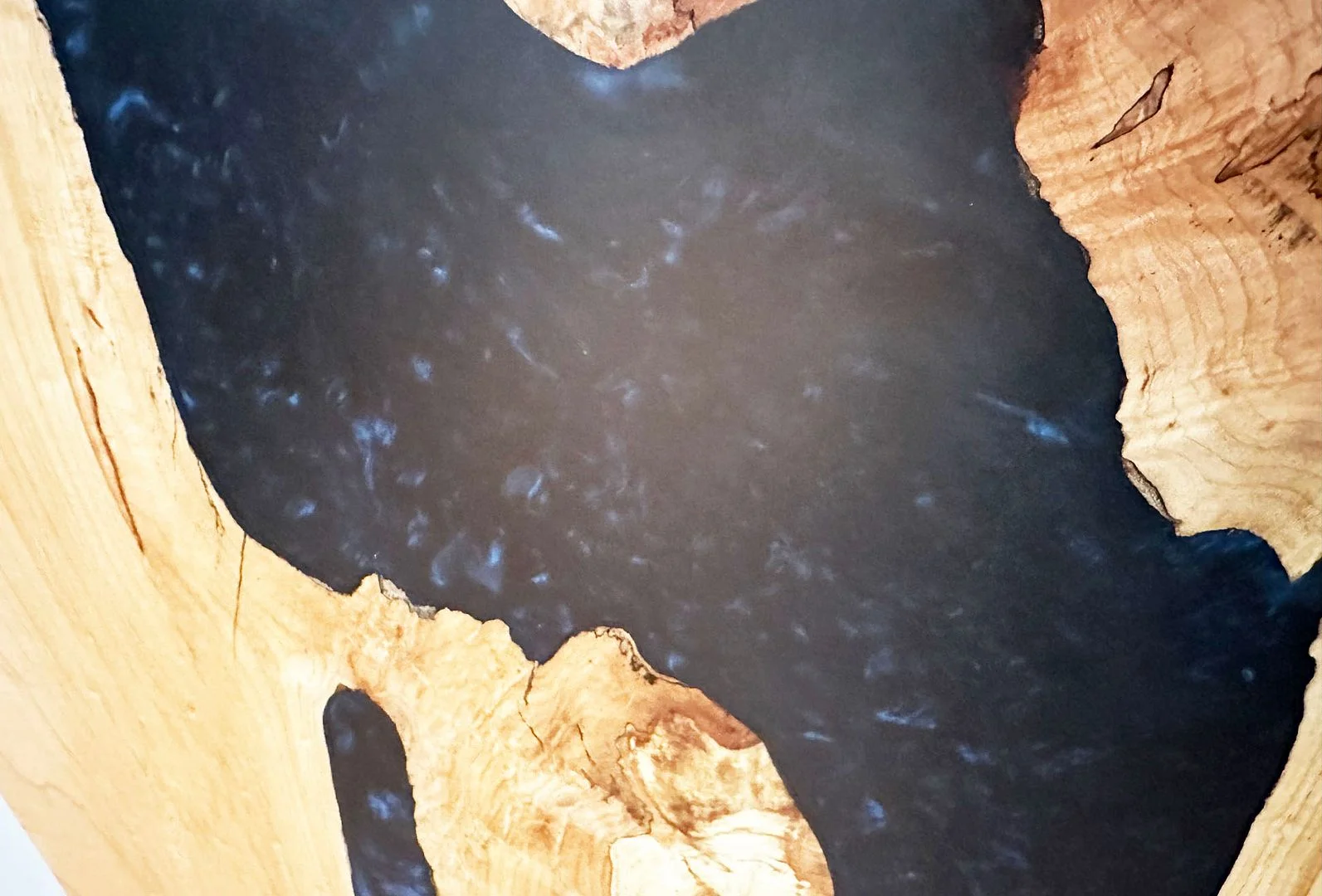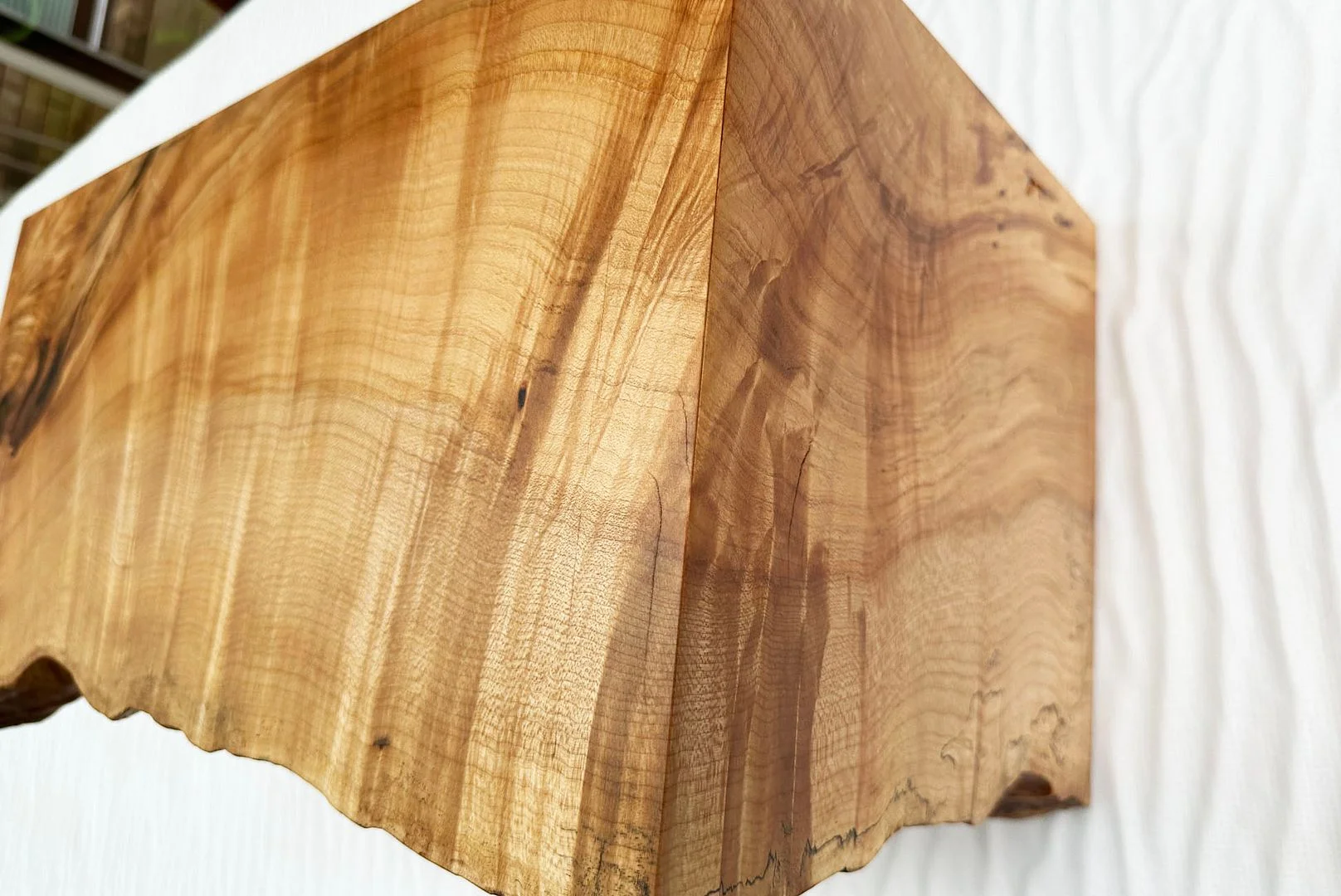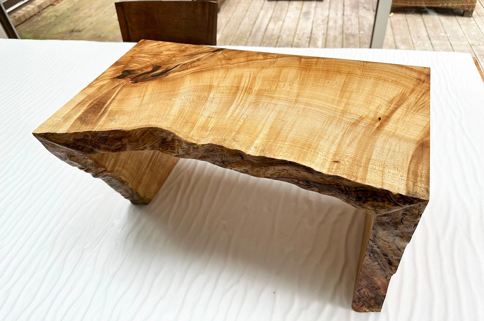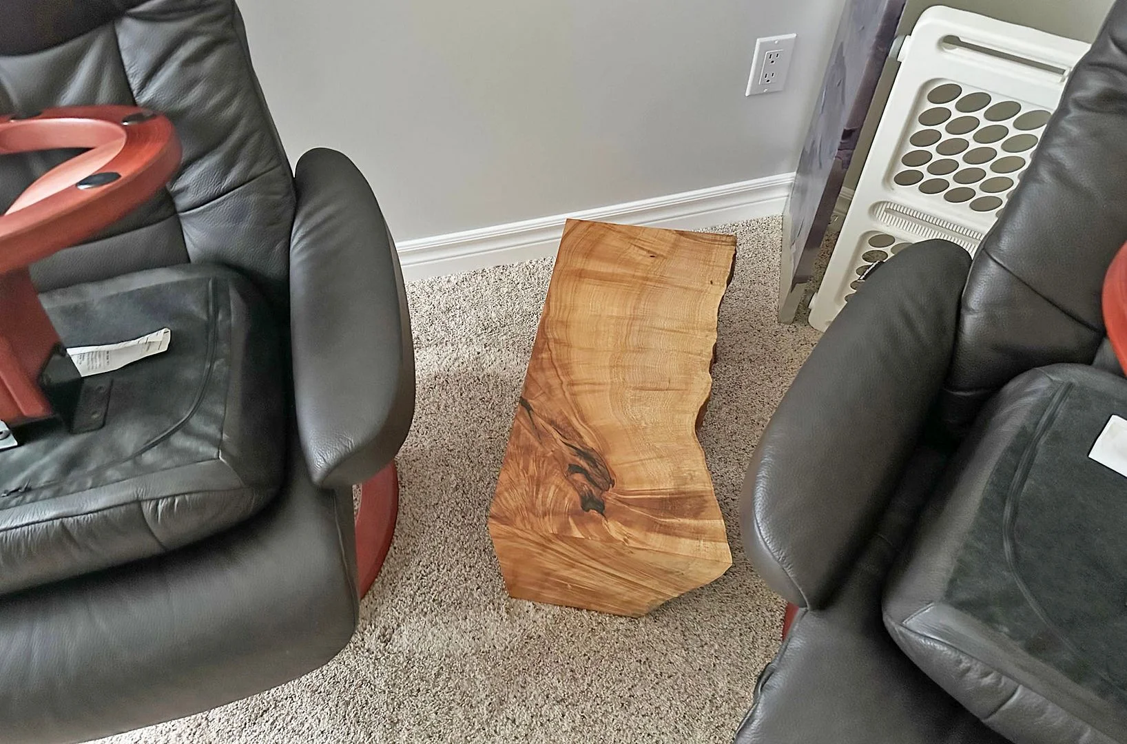We wanted a small table of sorts for our listening room - something that can fit between our chairs, and we can set a glass of wine on while we listen to music. We had a little mini waterfall edge table made: