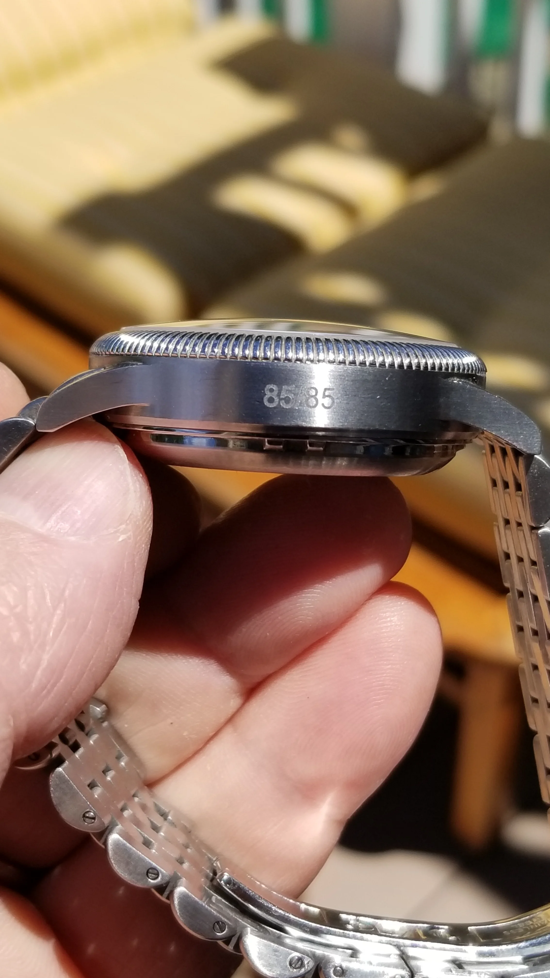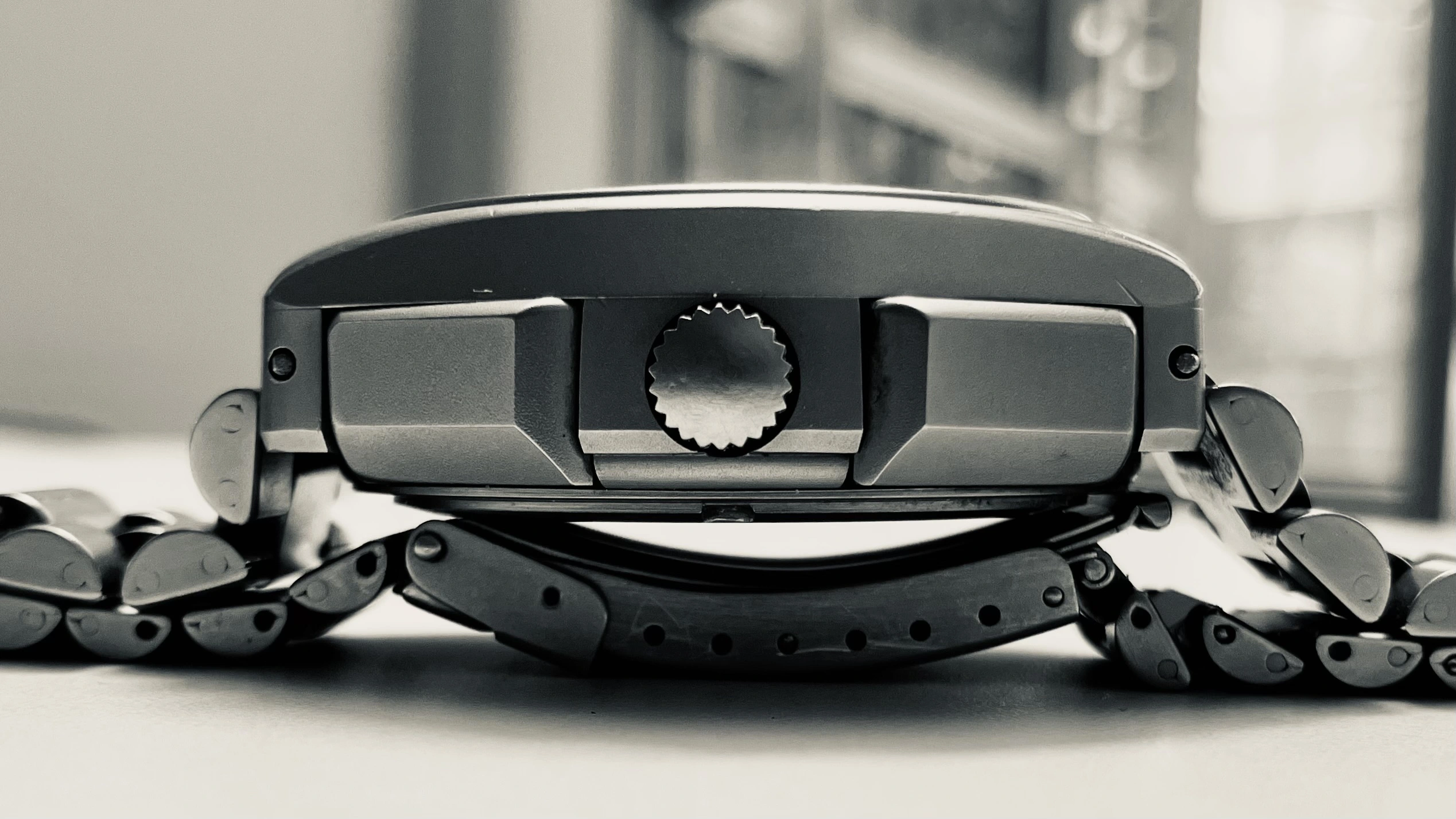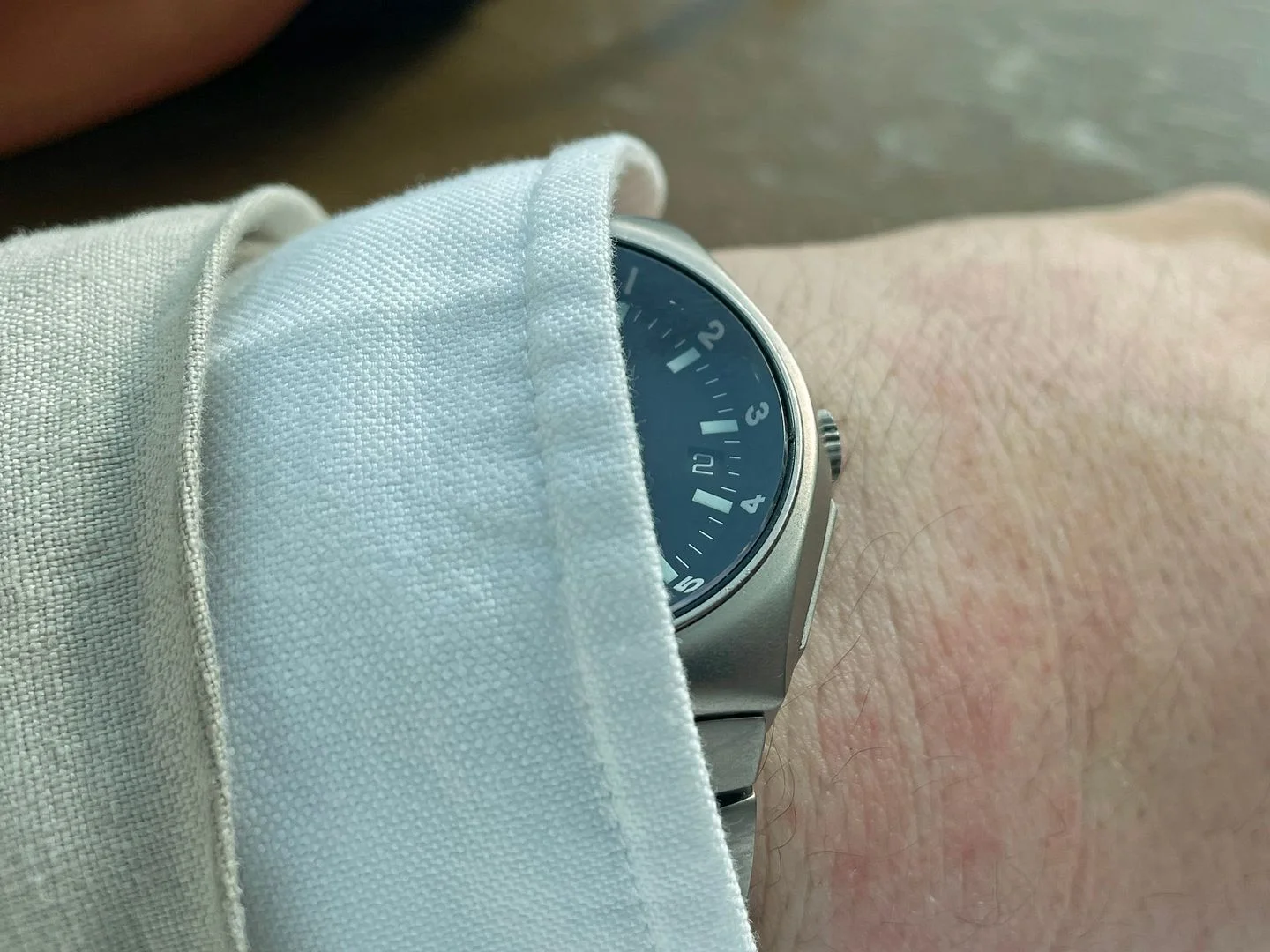While the watch was technically mine, I was unwilling to have it shipped to me. In this post-Brexit world, I would rather fetch things myself than rely upon any forwarder. So I decided to organize a little day-trip. First drive to Paris Charles de Gaulle airport where I would catch a flight to Manchester, then take a train to Bolton, and another one to Darwen and presto: I can meet the seller face-to-face, allowing him to hand-deliver my watch. That's exactly what I did this past Wednesday, and it was a very enjoyable experience. Not only did I finally get the watch I had been fancying for two decades, but I also had a nice 2 and a half hour chat with Ian, the Watches of Lancashire shop owner. He did show me a few of his other treasures, and we spent a nice moment sharing our common passion. On my way back to France, I couldn't help having this silly grin on my face each time I was looking at my new watch, and as you may imagine I did that a lot.