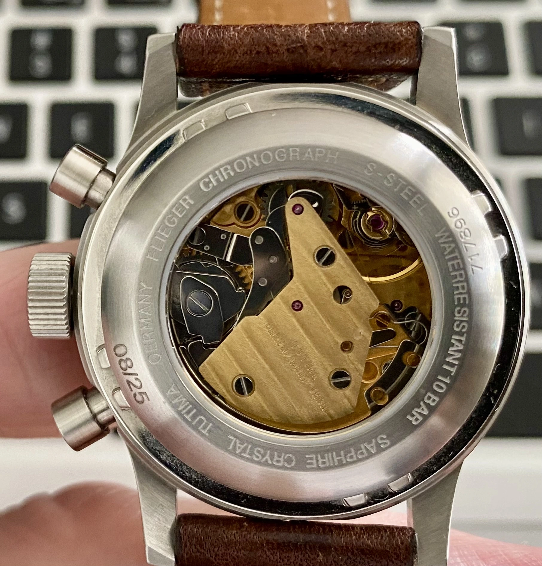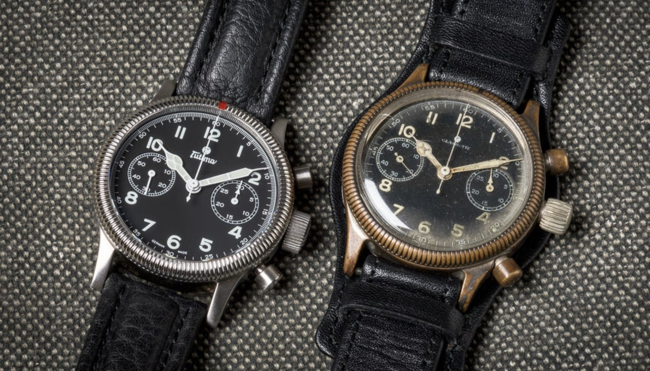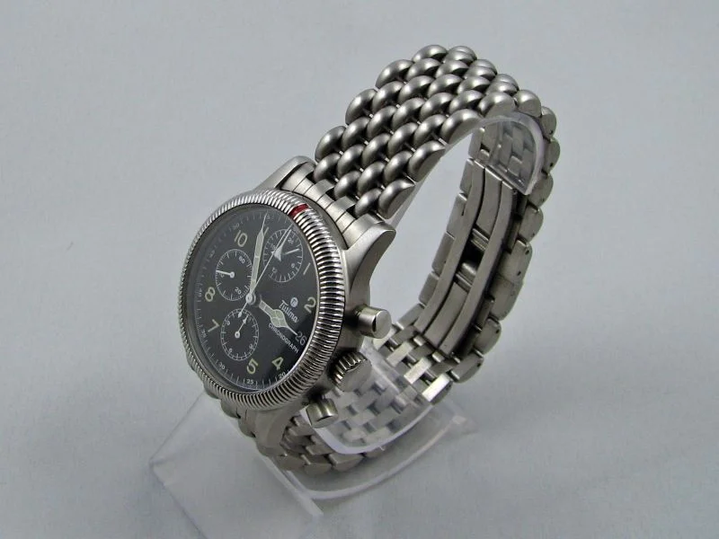 That thing was built like a tank, and this stainless steel version felt like it weighed almost as much as one too. But it was so great that I immediately considered it as my "stranded on a desert island" watch, something so solid and dependable that it could take the abuse. It also got me interested in the history of the brand. Their history with German military pilots actually dated back to WW2 when they supplied the Luftwaffe with their first chronographs, just ahead of competing brand Hanhart. I also learned that they had an actual range of variants of their Military Chronograph, with many available in titanium. On top of that, they had reissued their old Flieger chronograph, first as a manual wind watch aesthetically very similar to the original WW2 model, but also as an automatic available in two flavors: with a 7750 in the Flieger F2, and with a Lemania 5100 in the Flieger F3. I knew I had to eventually get myself one of the latter.