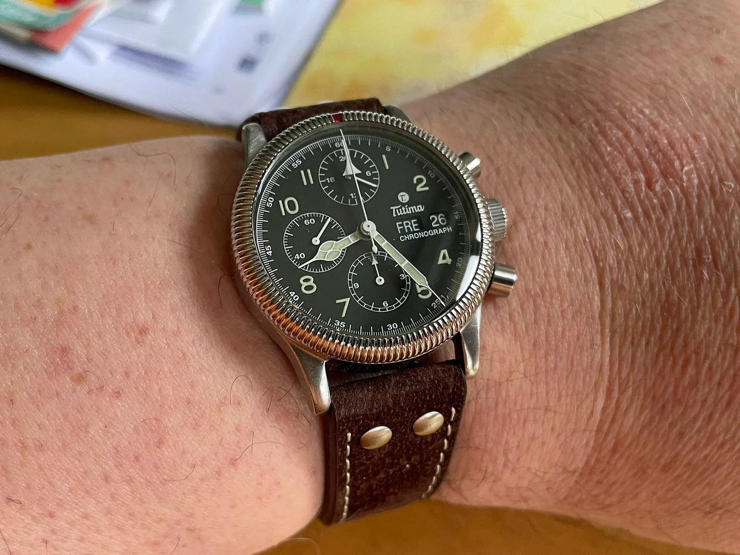 It is years later, when the watch bug bit me hard, that I finally started broadening my horizons. I had developed a passion for a specific watch movement and therefore started collecting Lemania 5100 chronographs. At one point I had 26 of them in my collection, and it is this way that I stumbled upon one of Tutima's most iconic models, their Military Chronograph. This watch had been selected in 1985 as the official issued watch for Luftwaffe pilots, so this was the real deal in my book. So I naturally procured myself one.