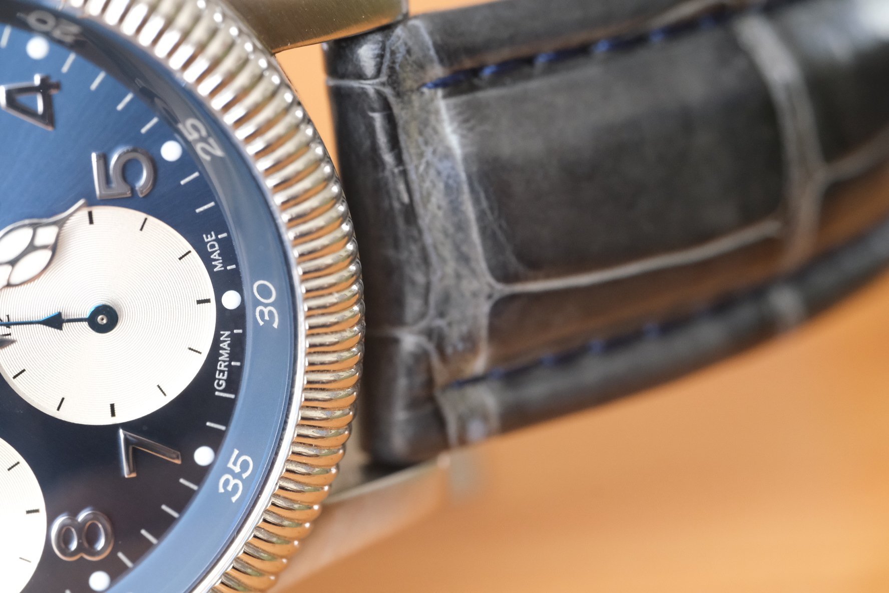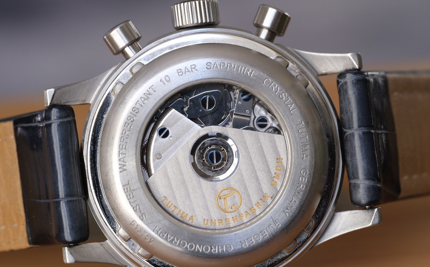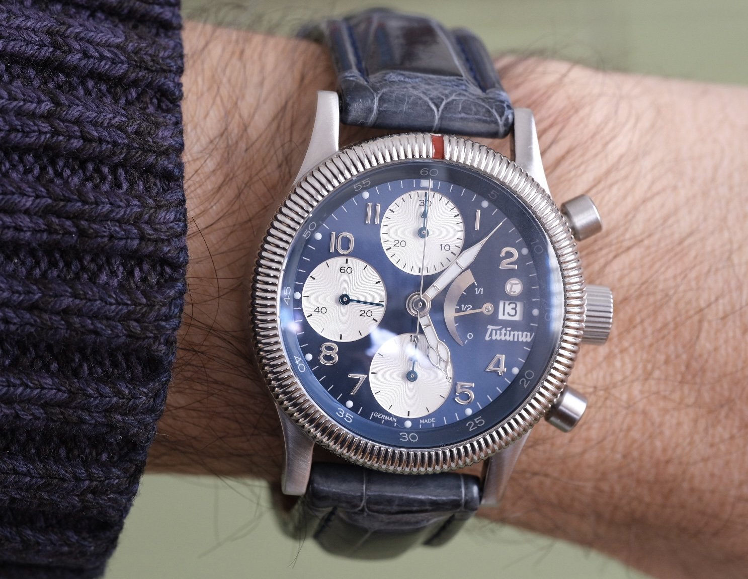 STRAP: Comes on a very cool blue alligator strap that compliments that dial perfectly, complete with original Tutima deployant clasp - both with very minimal wear.
