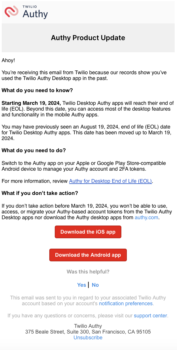 Just a heads up for anyone using Authy for 2FA on ΩForums and other sites.