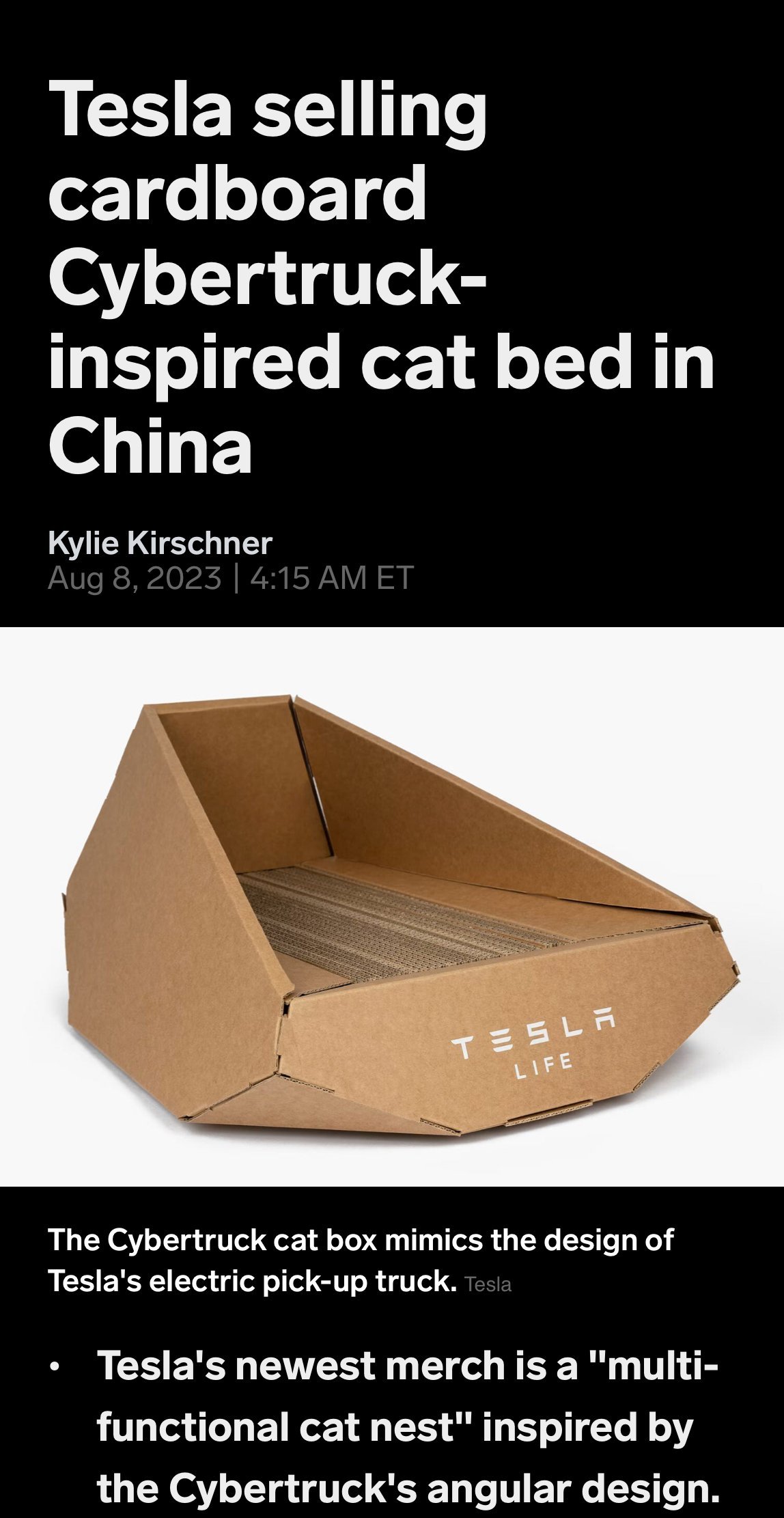 Posts 5,983 Likes 20,560 pdxleaf ·Aug 8, 2023 Walrus Ain’t no time to hate, barely time to wait. Elon has redeemed himself in my eye with this state of the art invention Nice design. But I can't imagine buying a box for my cat.
