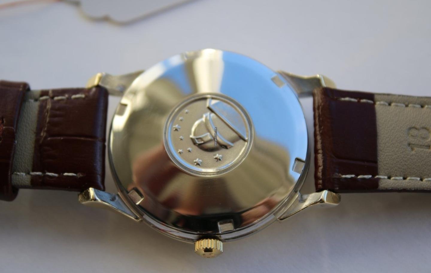 The second watch, Constellation 168005, 1966(I think, two dates given other 1963) calibre 564, serviced. Again reviewing similar watches looks genuine slight patina on the dial, text appears to be correct as does the star, hands onyx , no lume on the dail. Did read generally no markers with onyx on the hour markers but that could be me confused. Date window appears faceted. More confident this time that the crown is correct, but let you be the judge. Does not appear to be over polished gold cap Price on Chrono(yes generally tend to be over priced, ) is €1150.