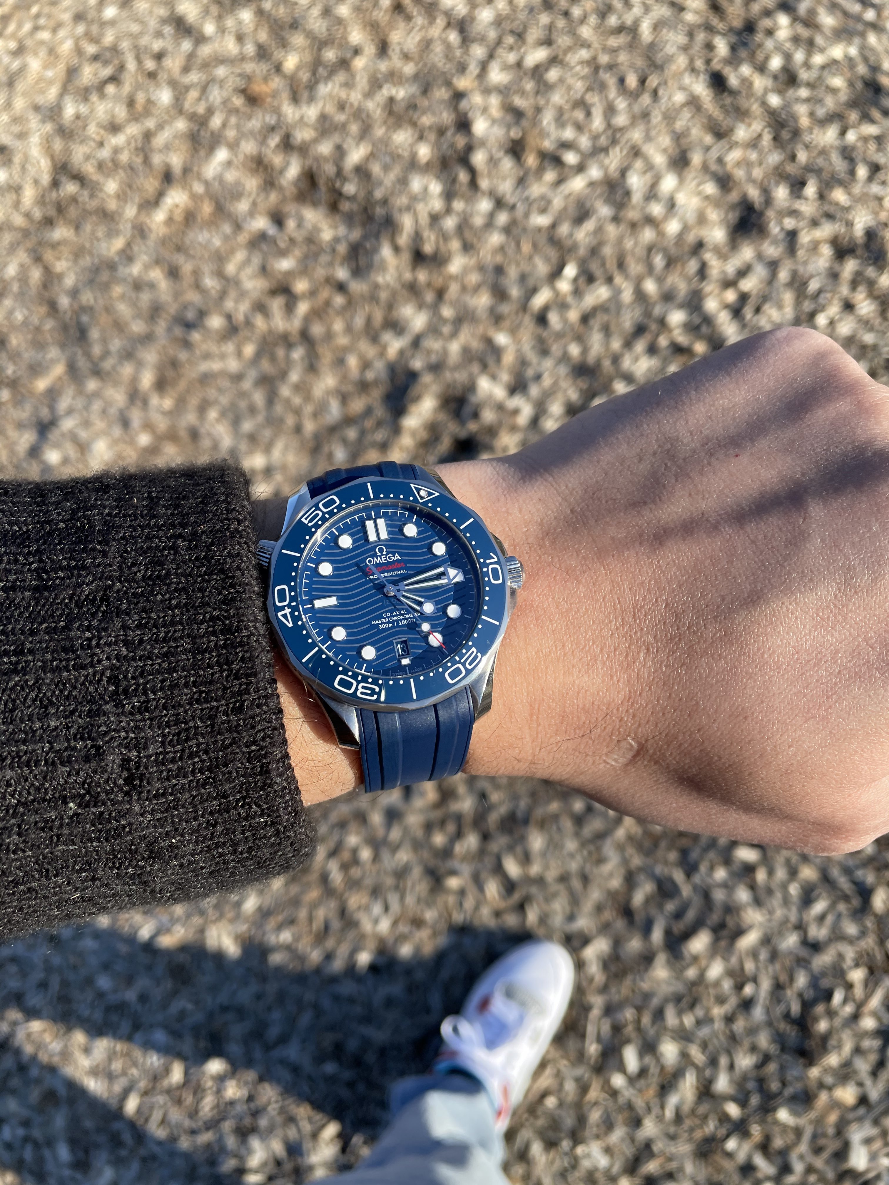 So I received my OEM Omega blue rubber strap today. Looks and feels amazing, unfortunately it is too large! My wrists are under 6.5 inches and I’m on the last hole and it’s a little too loose to my liking. Granted it’s winter here and will probably tighten up a little in the summer but I don’t like that I’m on the last hole.