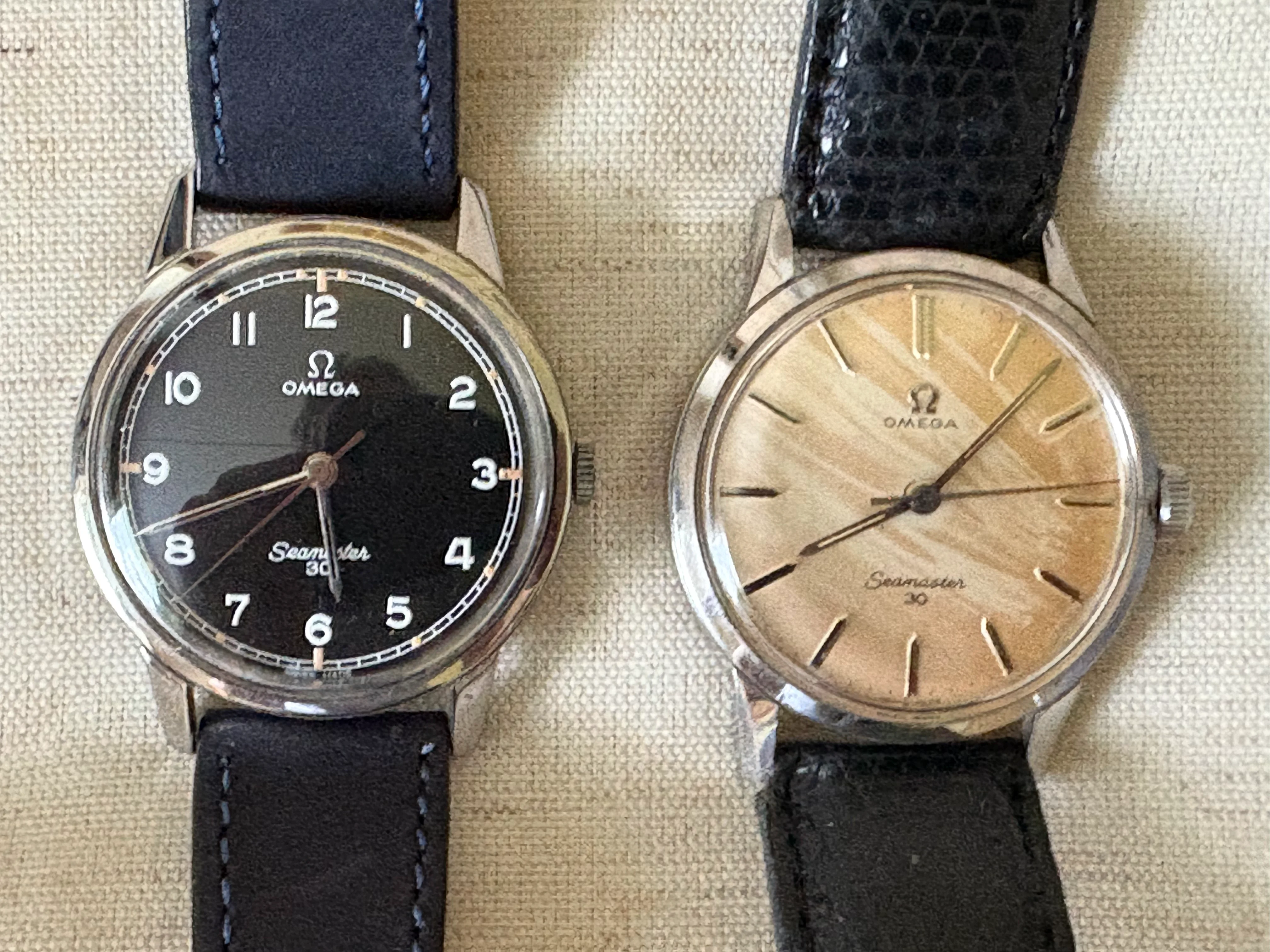 I found these two Omega Seamaster 30s (cal.286 / ref 153.007) from an auction in Finland and against my better judgement (and also having already exceeded my watch budget for the summer) ended up getting them anyways in a 'needs service' condition. Neither of them has Omega logo on the crown.