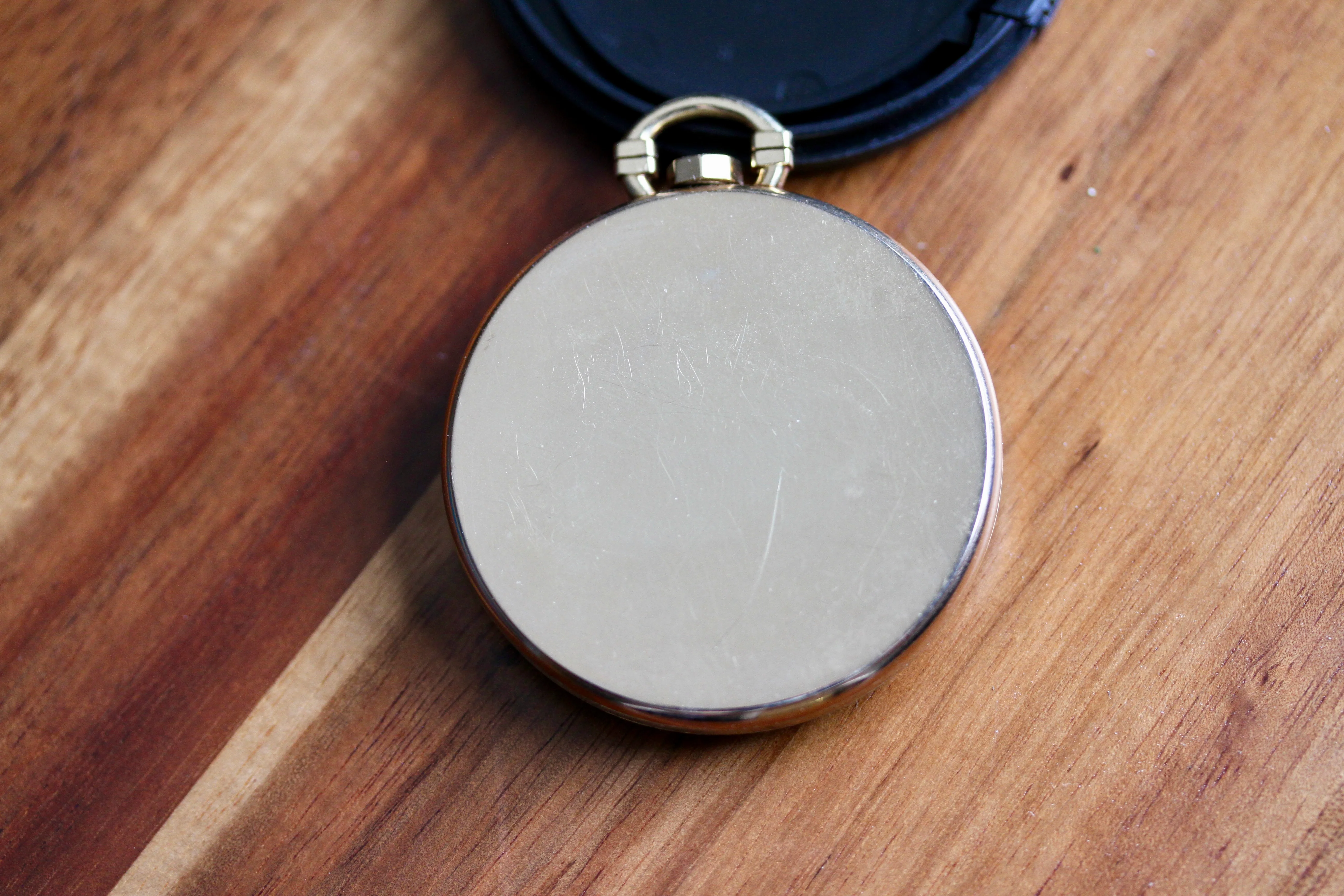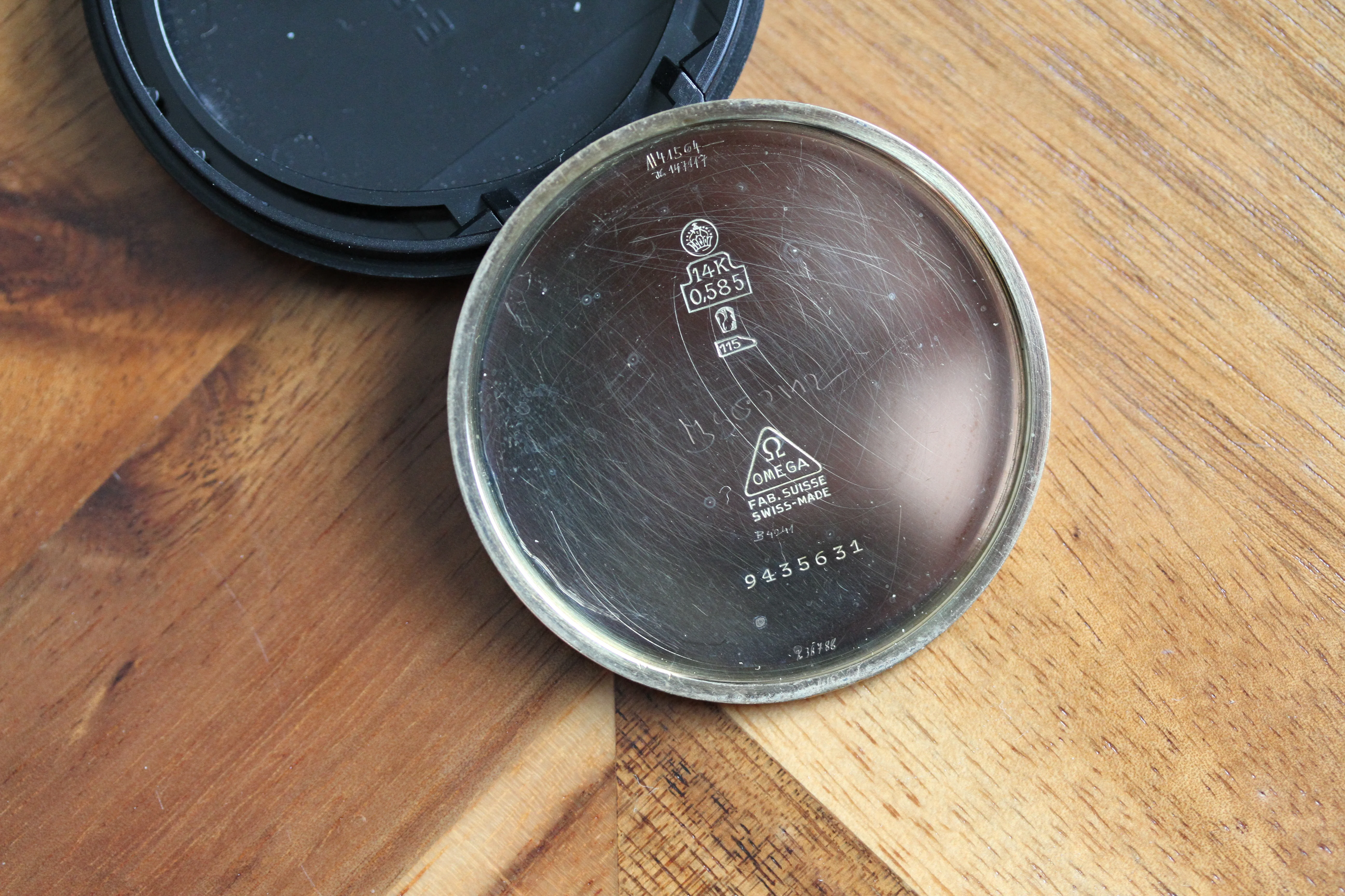The movement is the slim and clean 37.5 L17P in working order. Service history is unknown. The case is 45mm in diameter, excluding crown and bow.